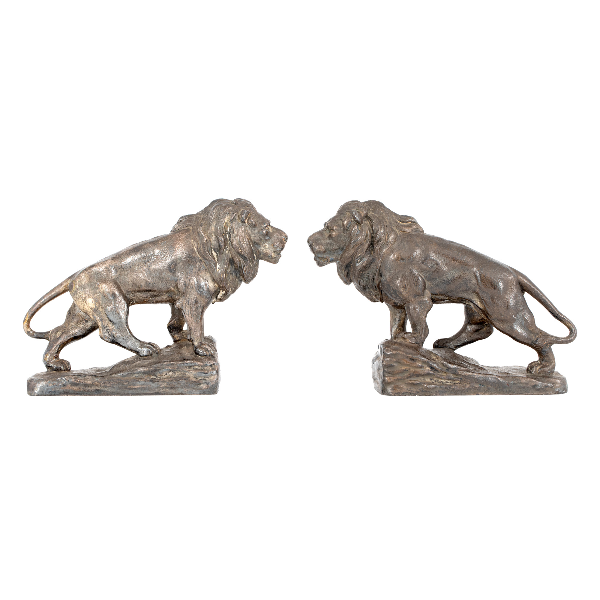 6. Pereche de suporturi pentru cărți, din bronz, lei cabrați