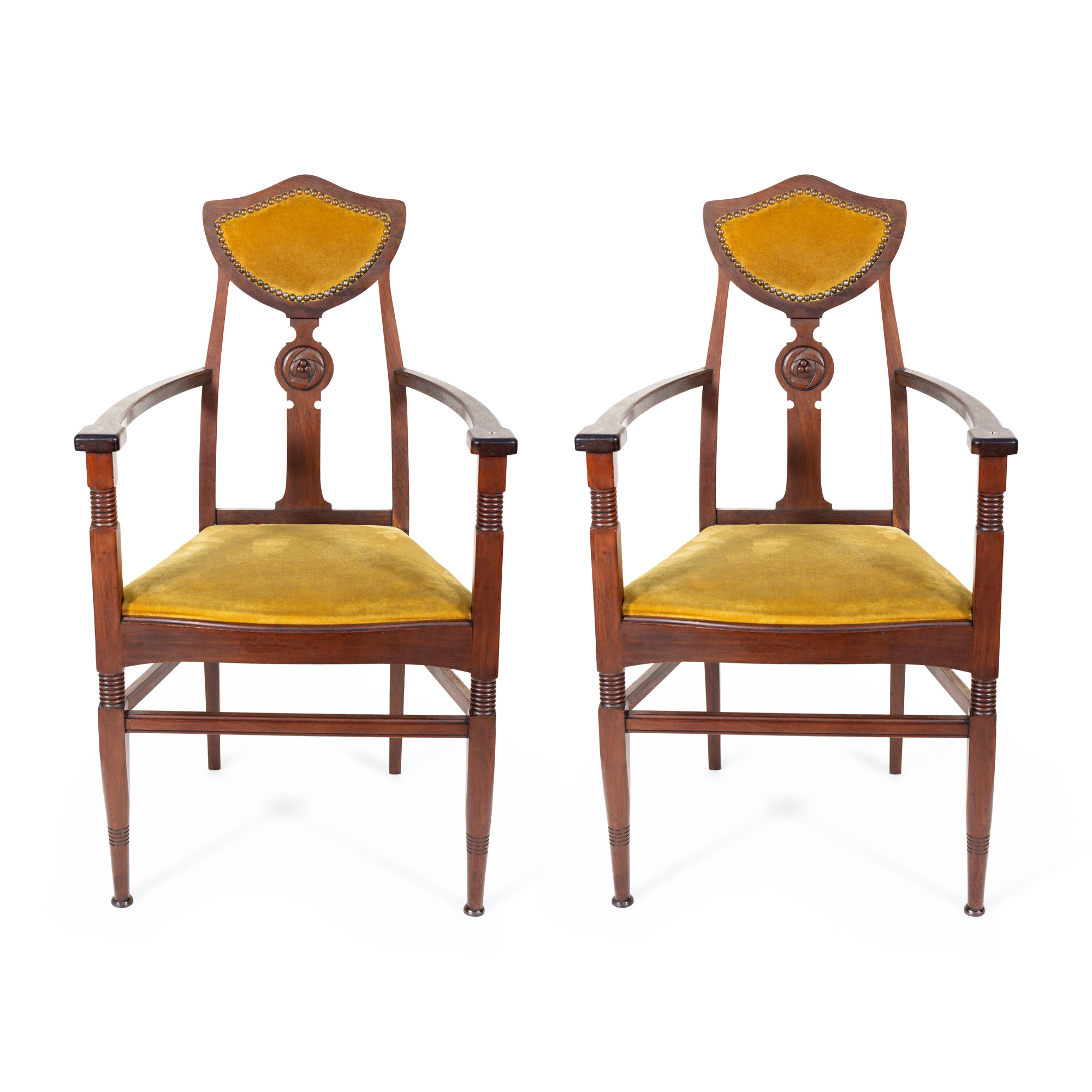28. Pereche de scaune Arts & Crafts, din lemn sculptat, cca. 1900