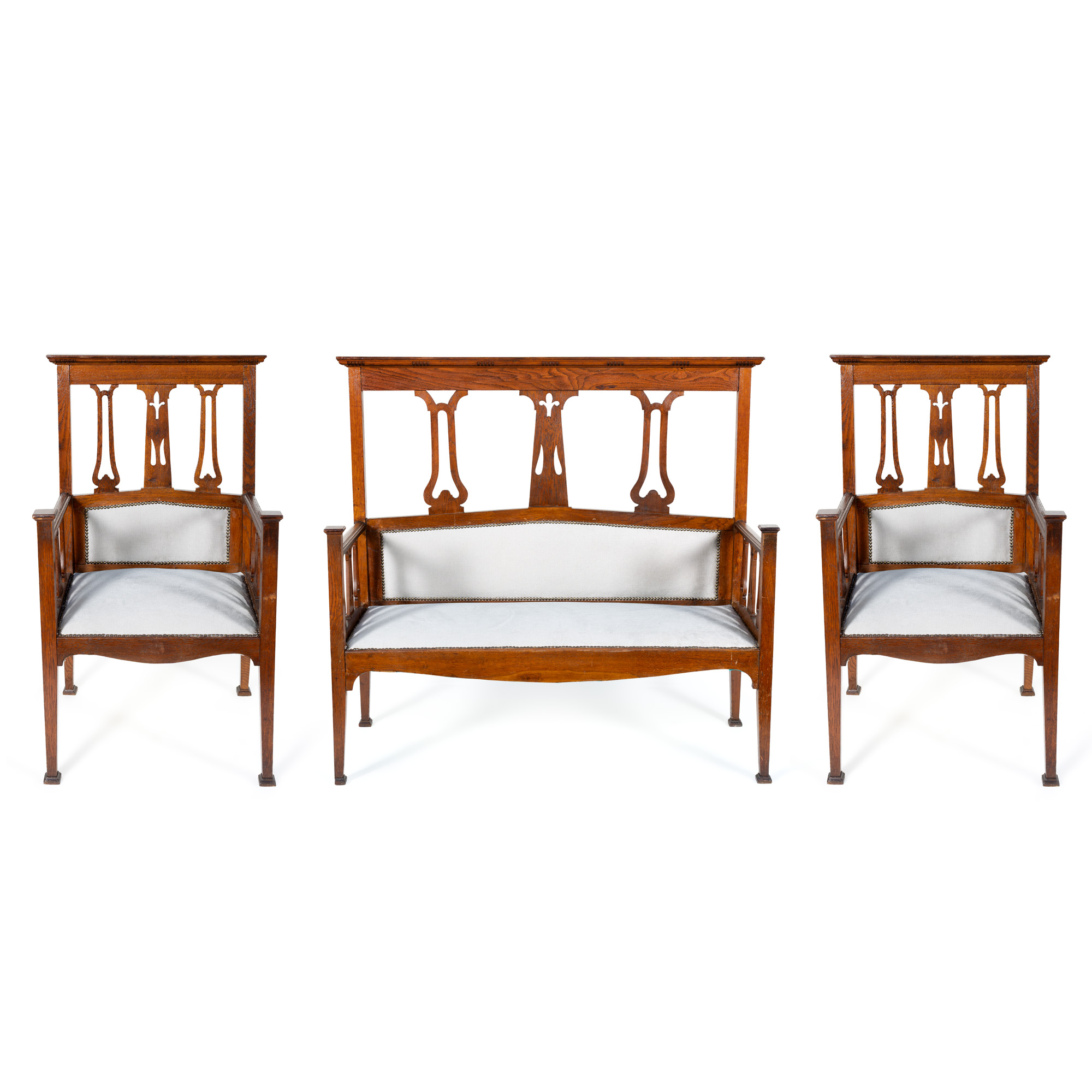 30. Garnitură de salon Arts and Crafts, formată din banchetă și două fotolii, cca. 1900