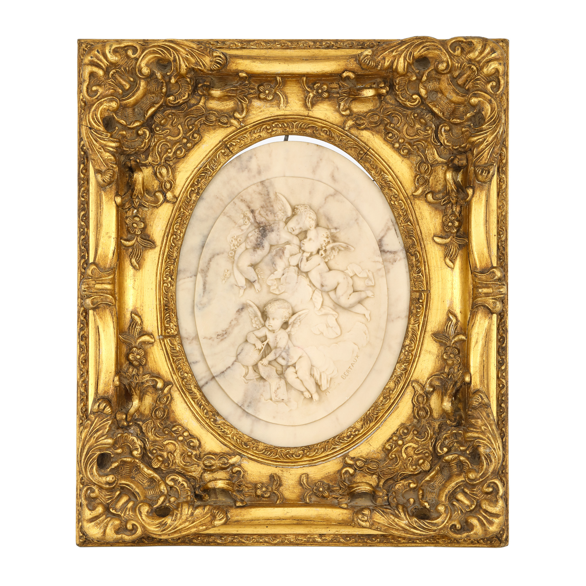 36. Placă decorativă din marmură, ilustrând o alegorie cu putti, semnată Hélène Bertaux (alias Madame Léon Bertaux), cca. 1895