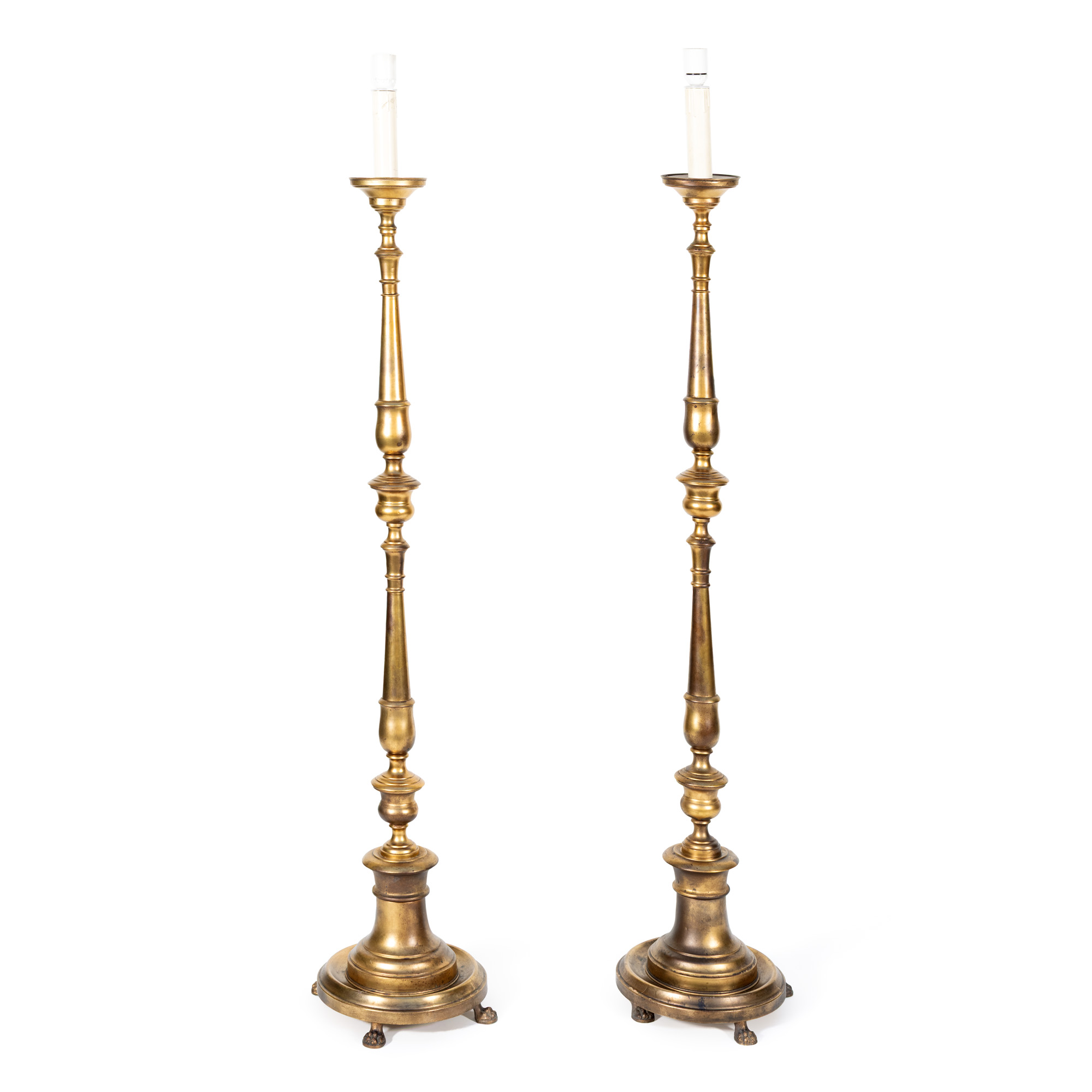7. Pereche de sfeșnice de podea, din alamă, sfârșitul sec. XIX