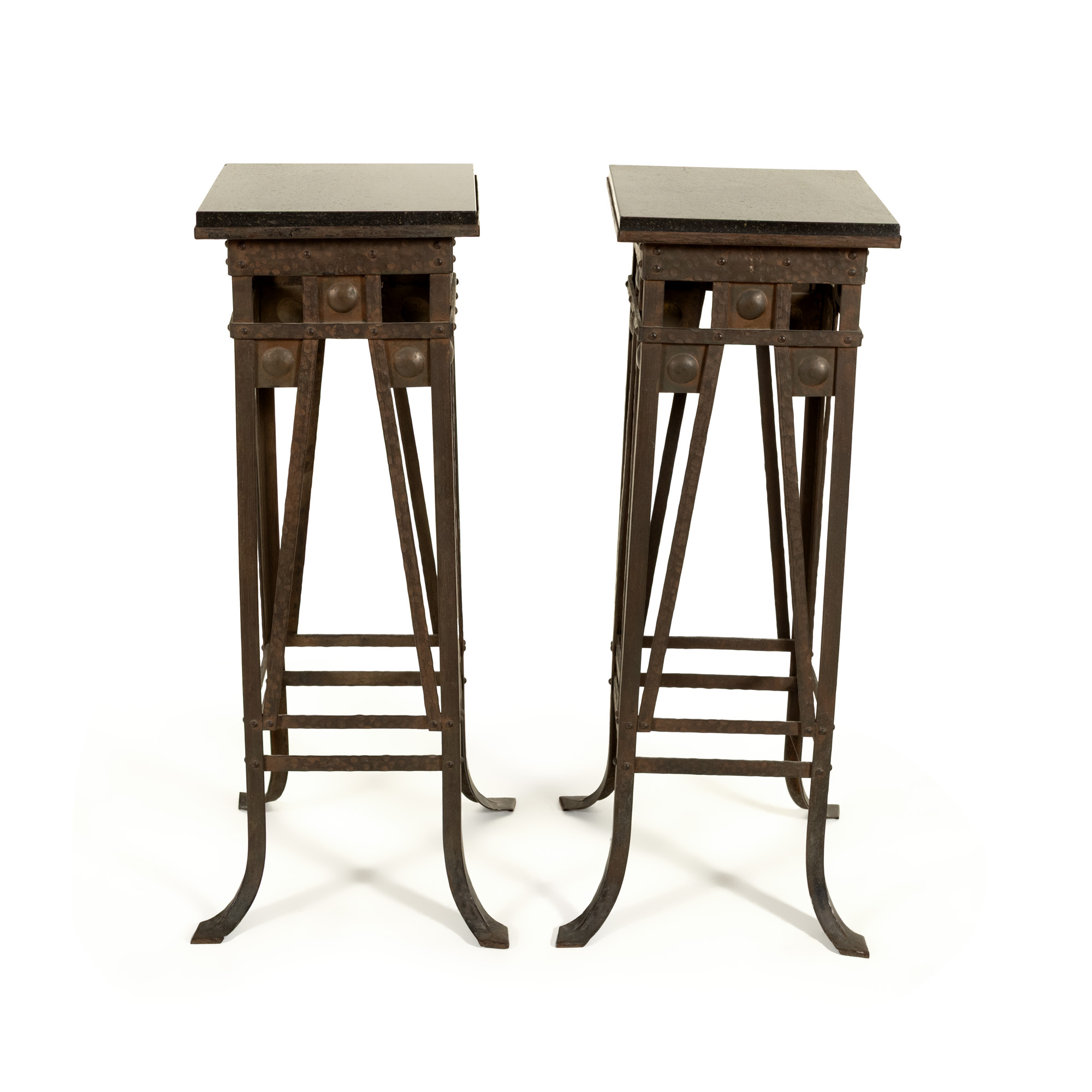 5. Pereche de piedestale Art Deco, din fier forjat și marmură, cca. 1920