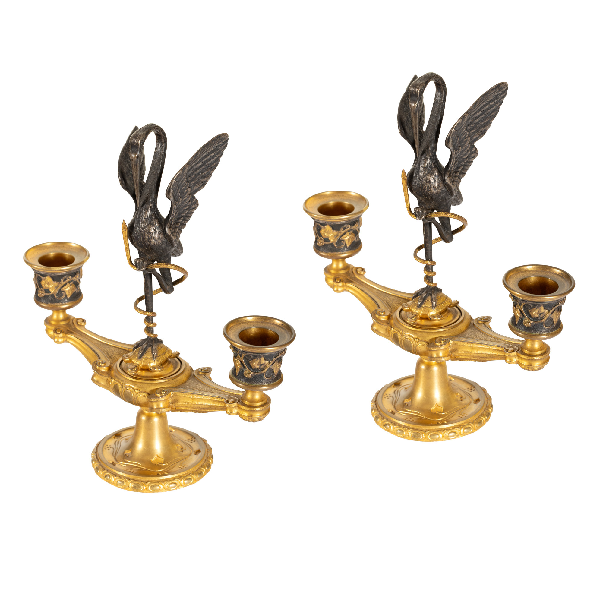 34. Pereche de sfeșnice August Maximilien Delafontaine, în stil Napoleon III, din bronz doré, mijlocul sec. XIX
