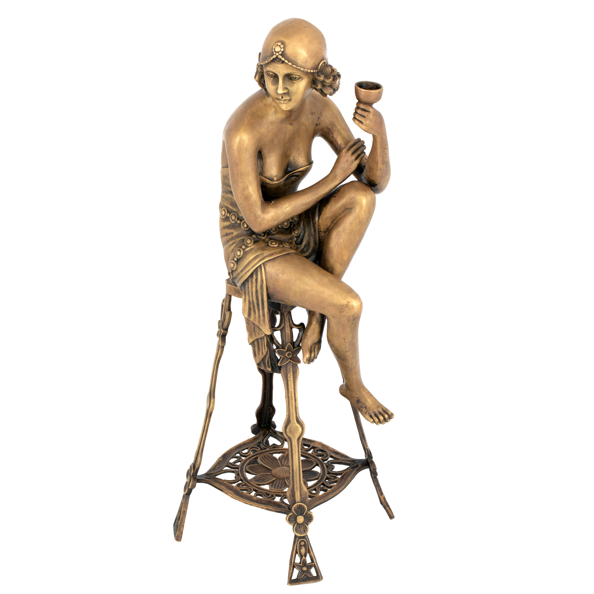 4. "Champagne Lady" - statuetă în stil Art Deco, din bronz, semnată J.E. Mir