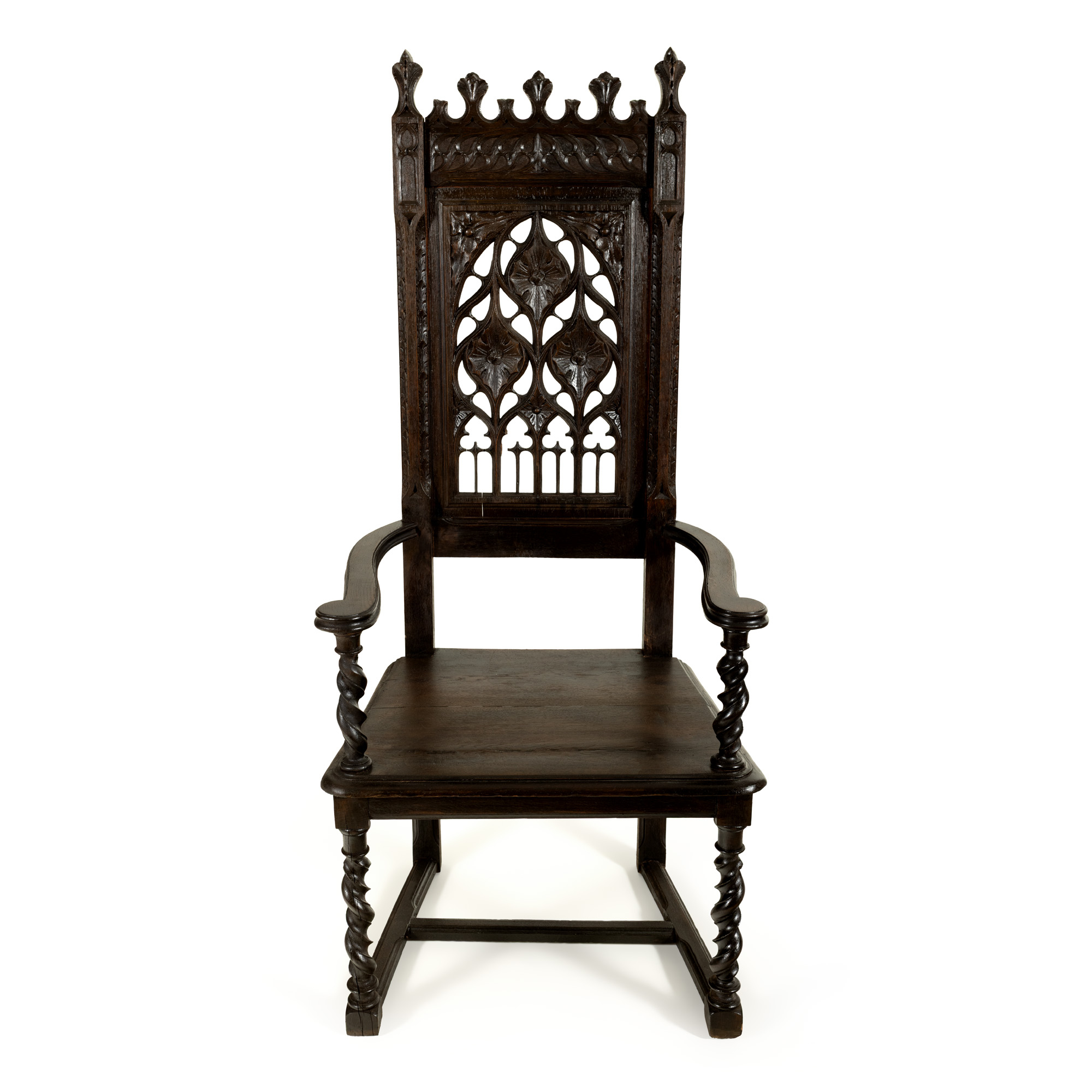 27. Jilț Neo-Gotic, lemn ebenizat, ornat cu panou sculptat cu roze, picioare frontale torsate, sec. XIX