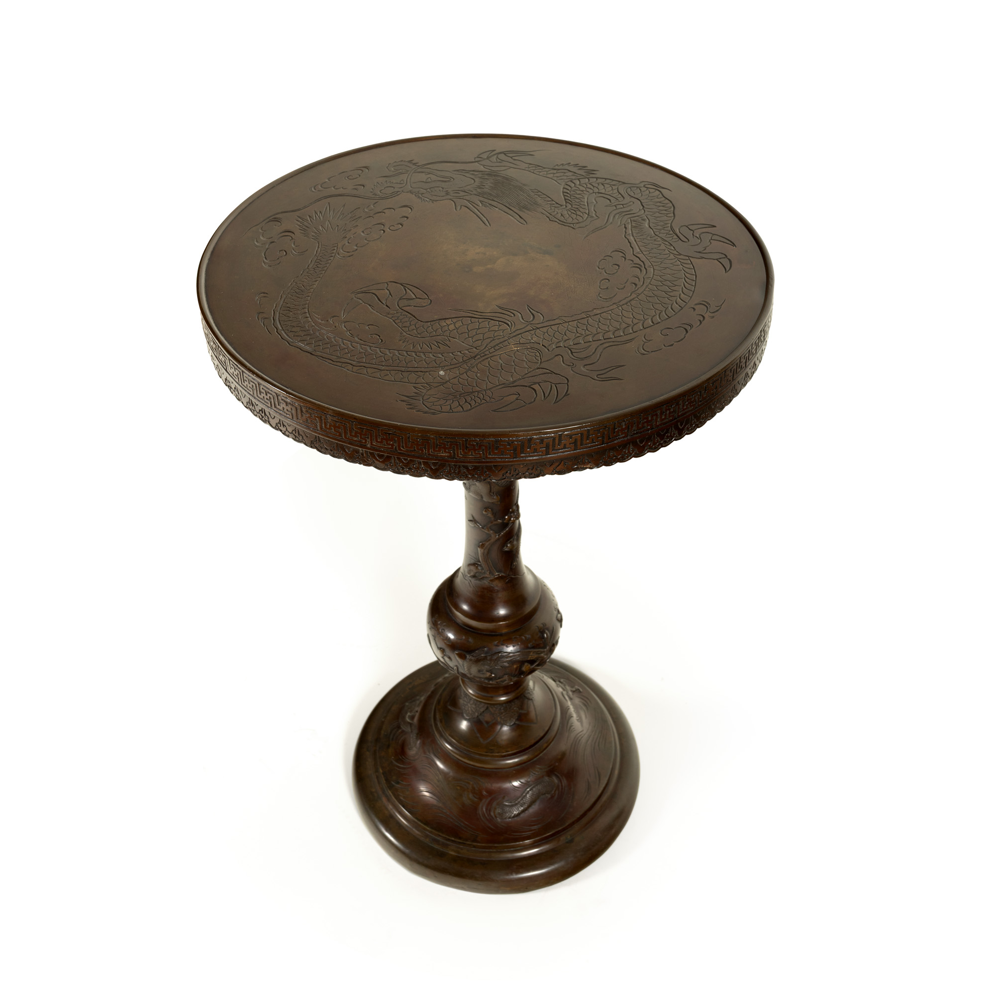 12. Măsuță de bronz, gravată cu dragon și motive japonizante, începutul sec. XX