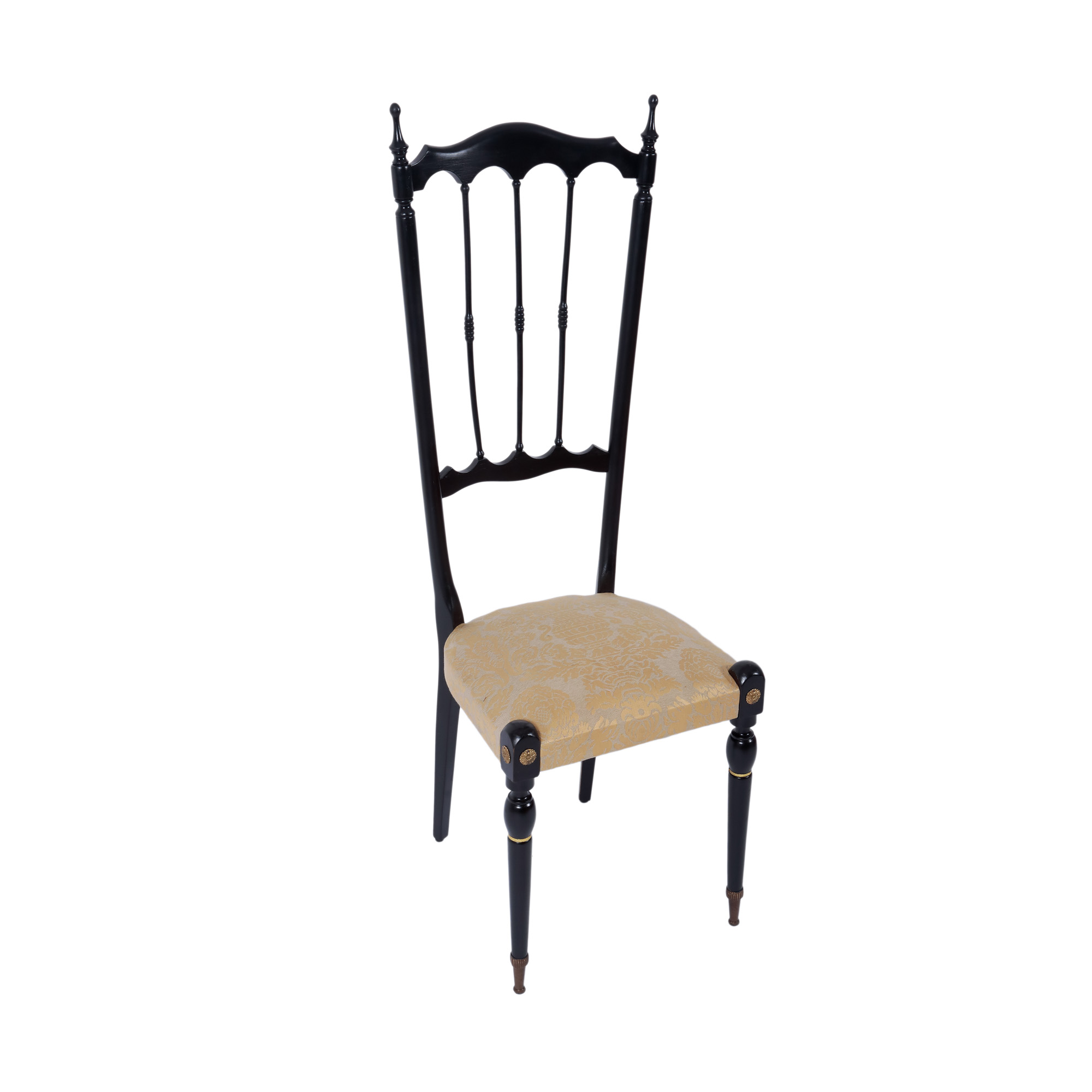 14. Pereche de scaune Chiavari, din lemn ebenizat, decorate cu elemente din bronz, mijlocul sec. XX