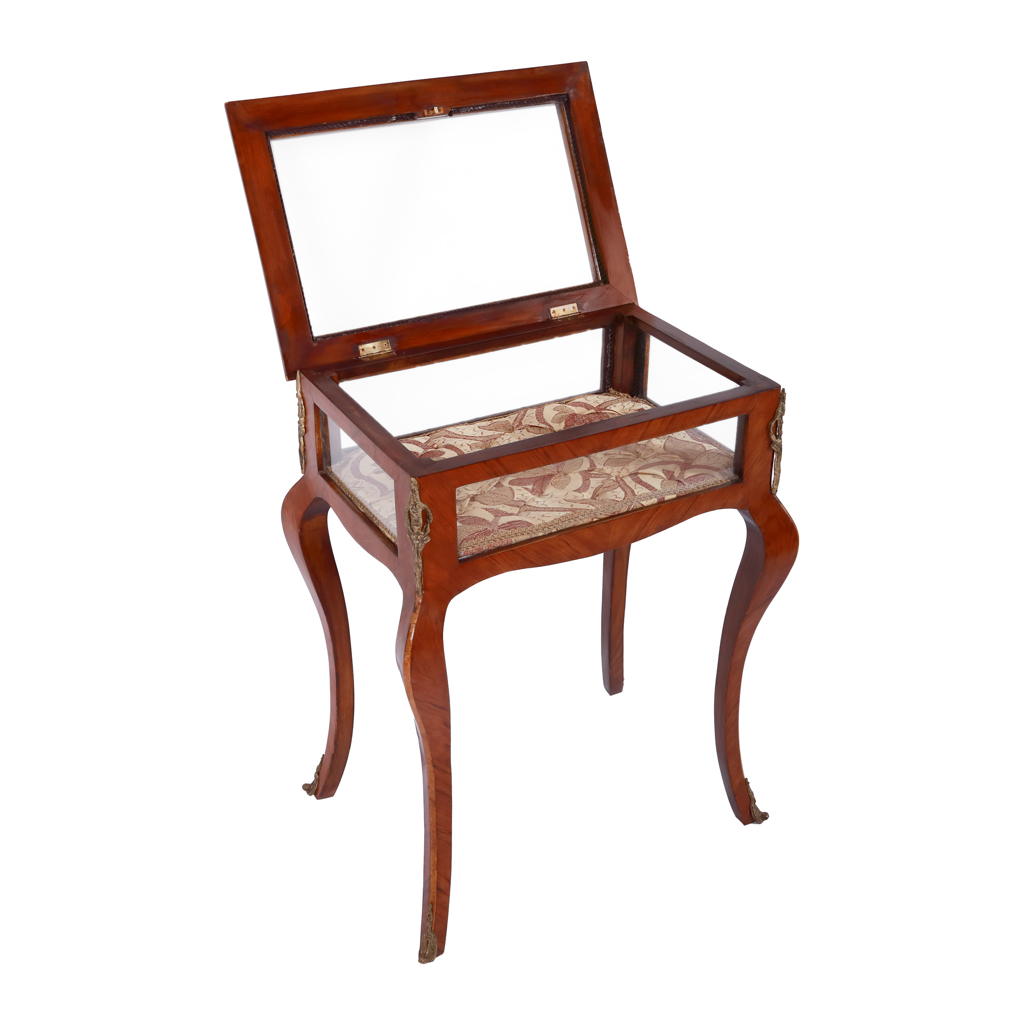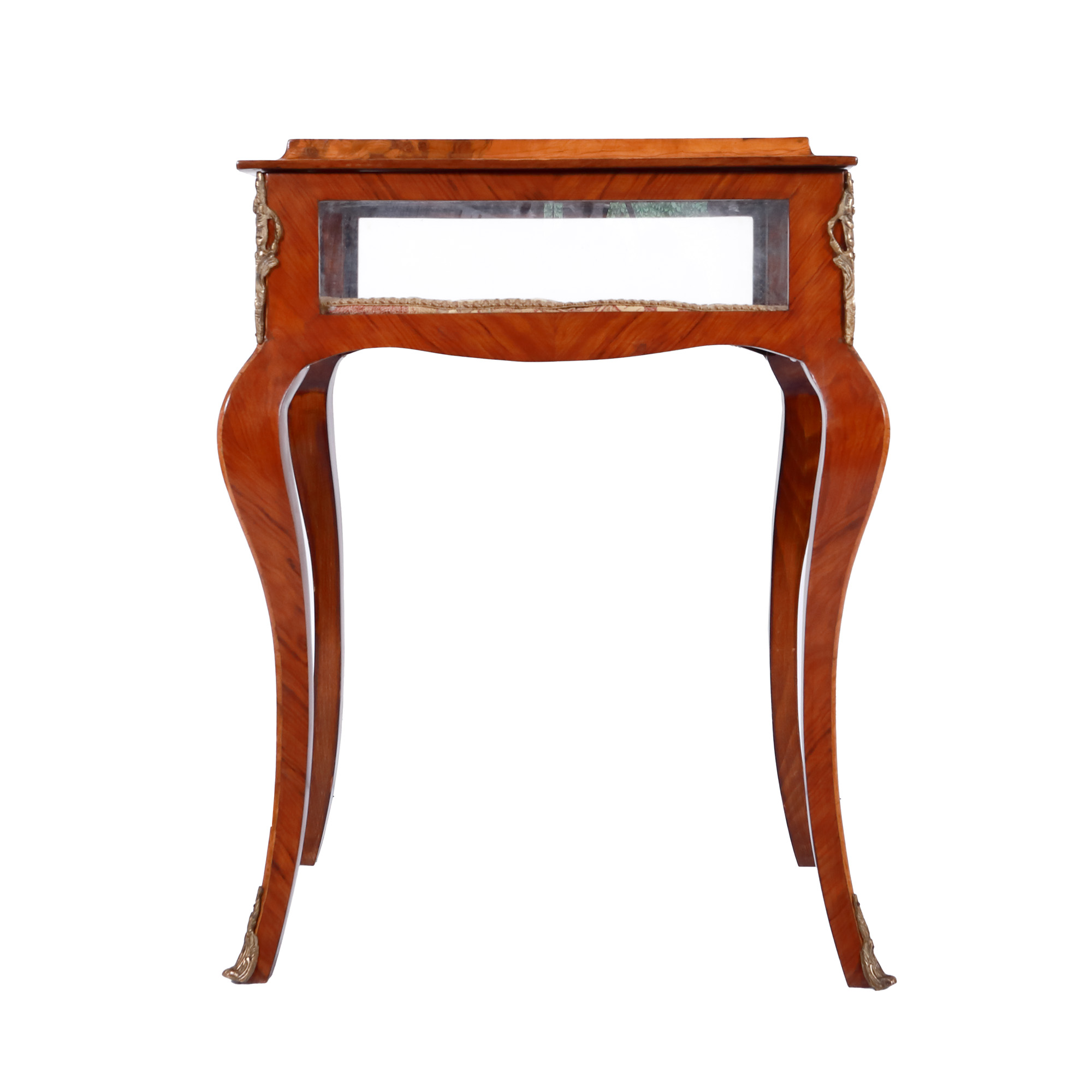 21. Vitrină în manieră Louis XV, pentru numismatică sau alte exponate, din lemn și cristal, începutul sec. XX