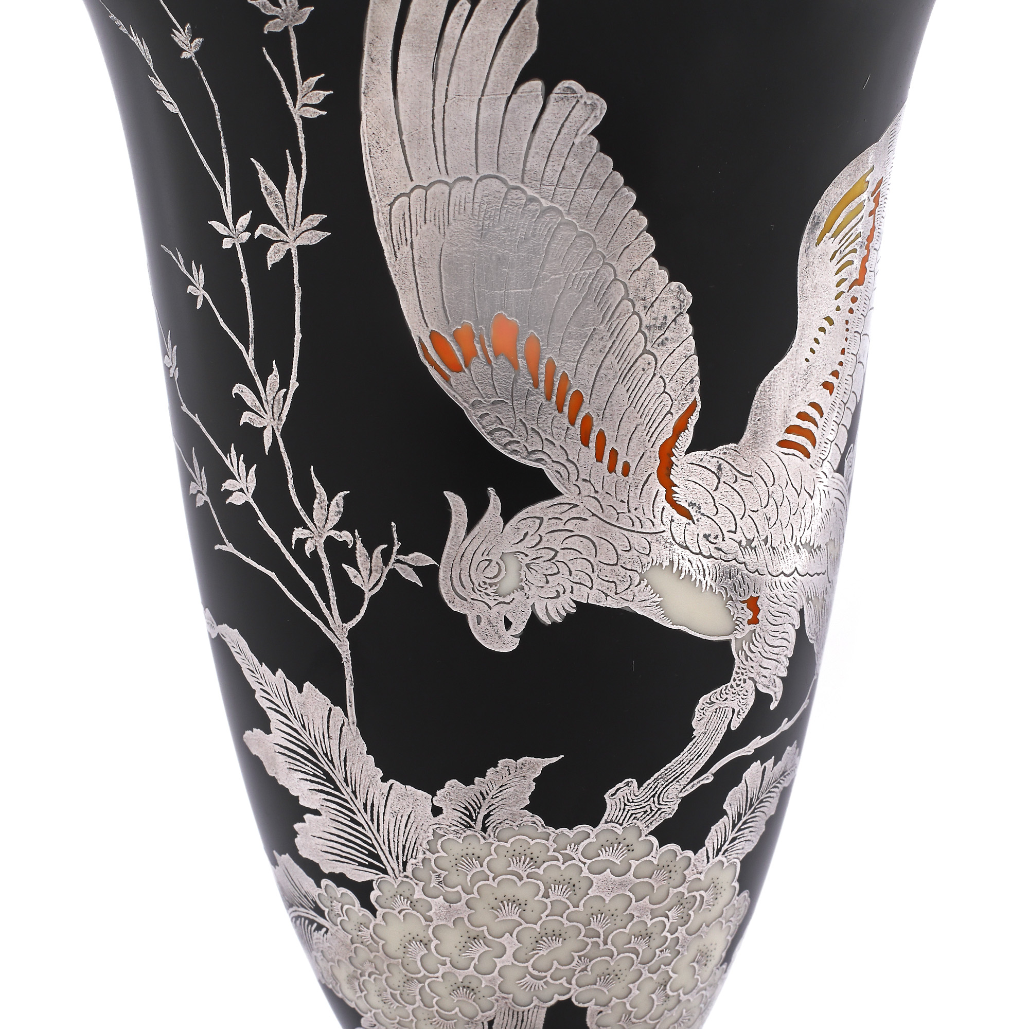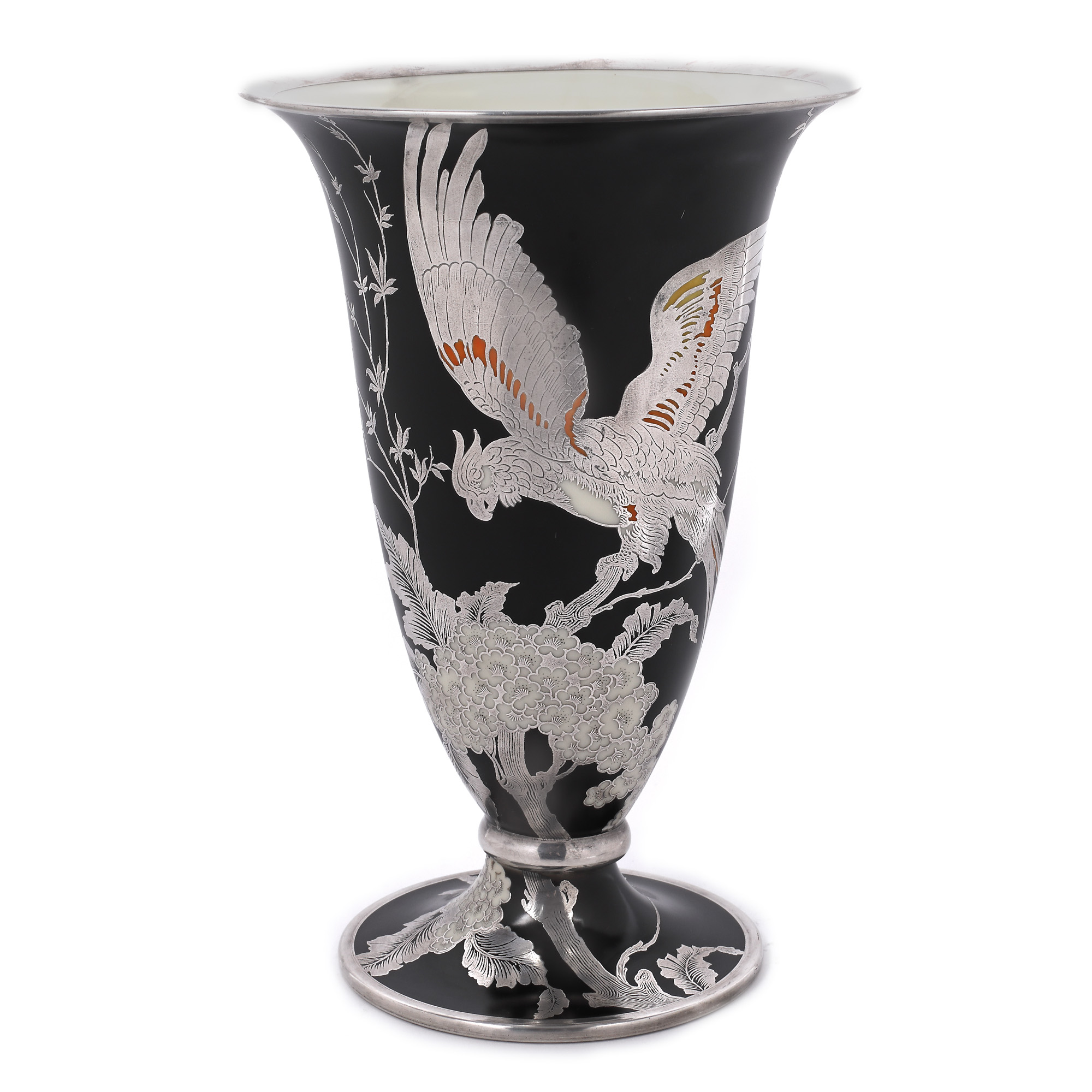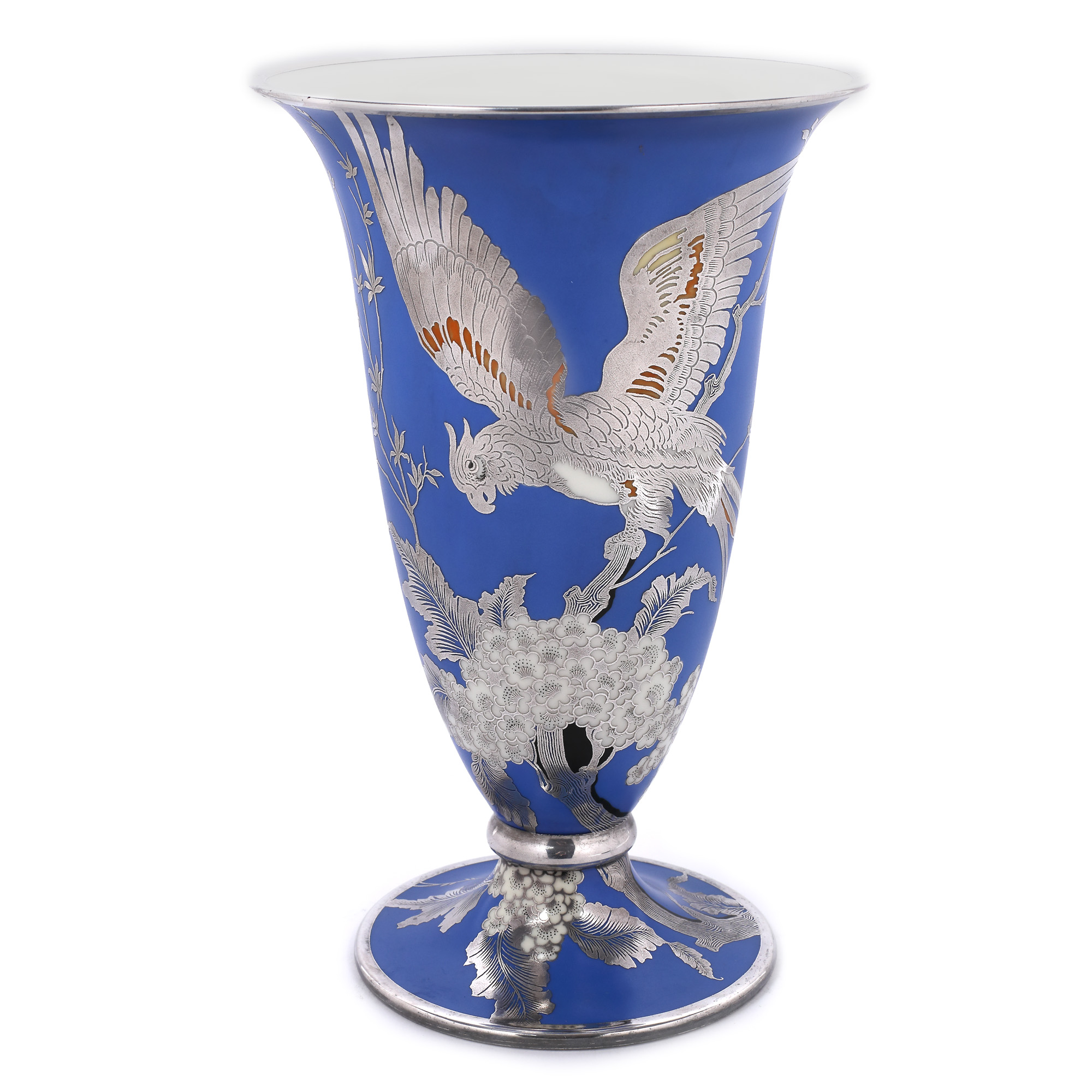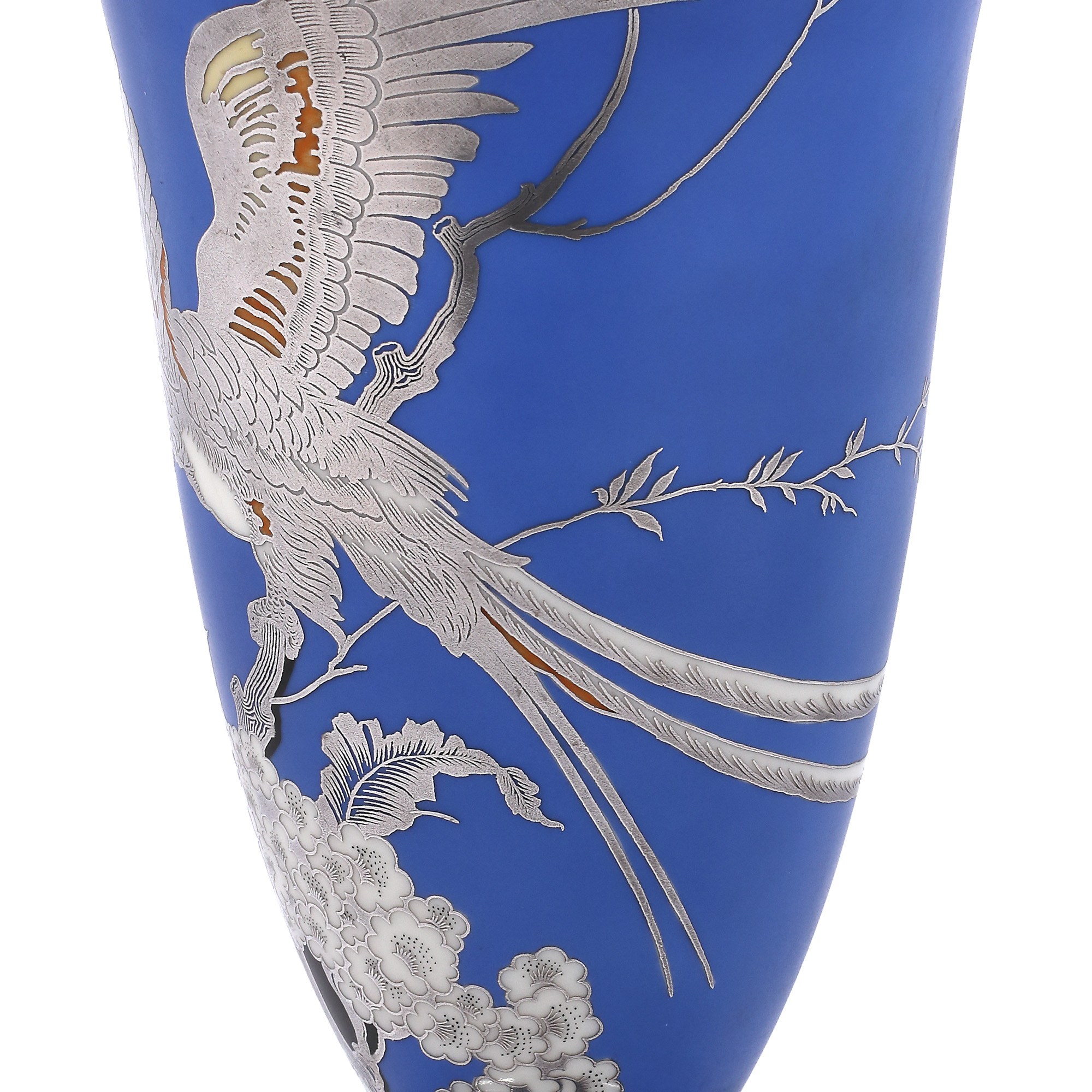 47. Pereche de vaze Rosenthal din porțelan, cu decor Japonaiserie, cu intarsii din argint, cca. 1938-1956