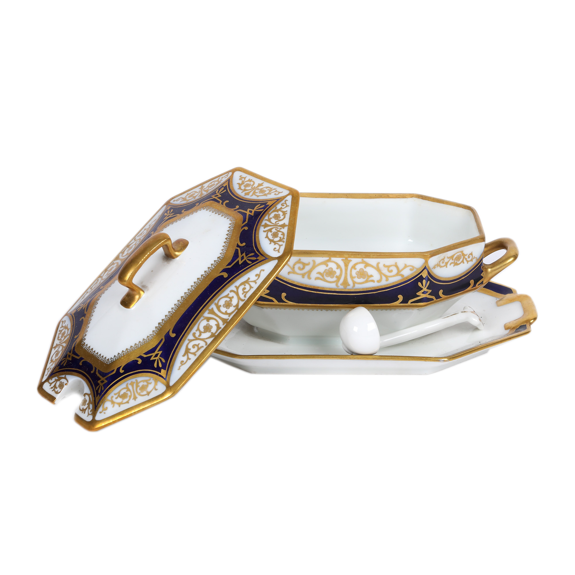 Setul este format din: supieră cu capac și polonic, sosieră cu capac și polonic, sosieră, pereche de platouri dreptunghiulare, pereche de platouri circulare și trei farfurii. Decorul parțial efasat.
