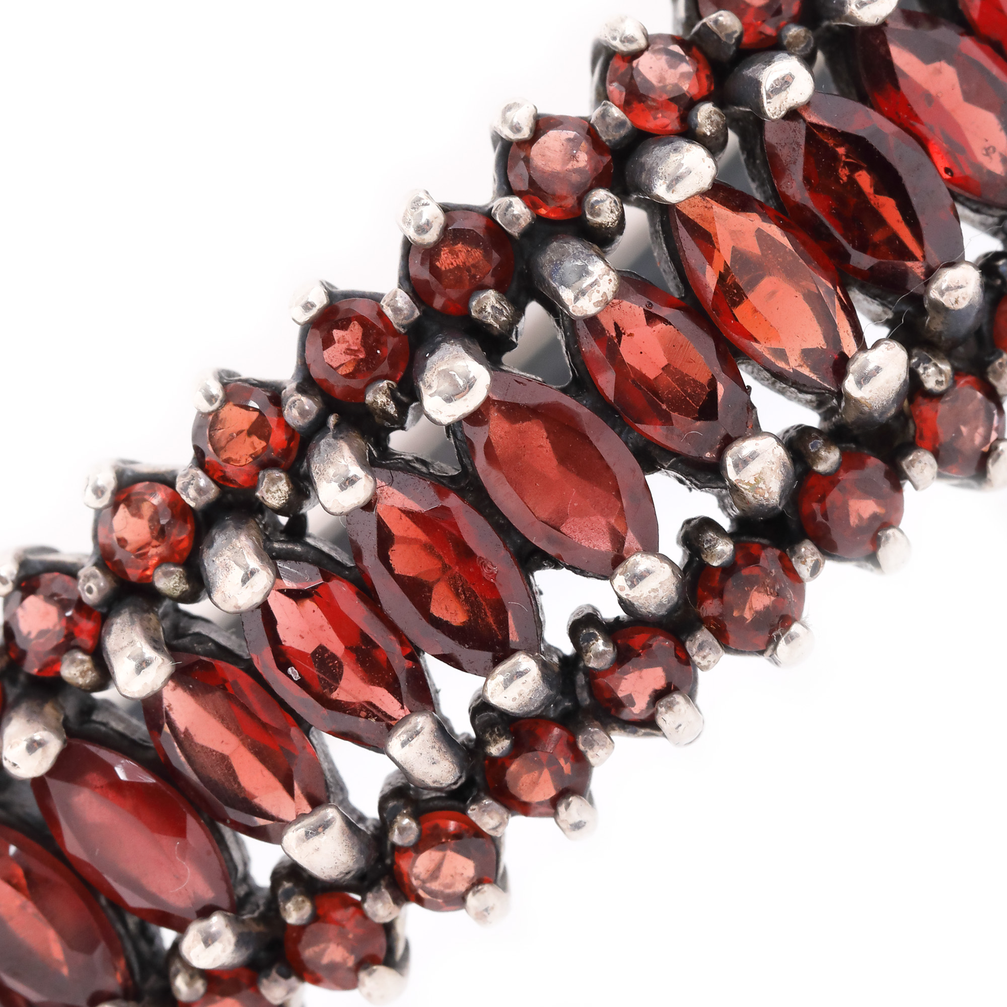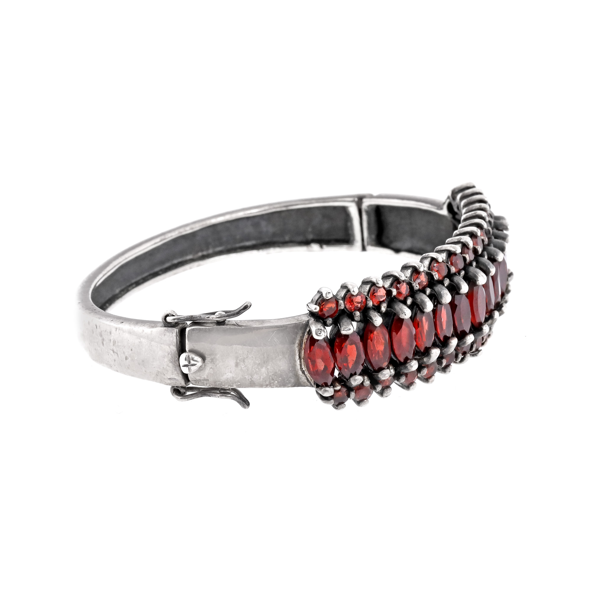 46 granate (16 marchize, 30 rotund fațetate), culoare roșu, claritate SI, cca. 15,50 ct.