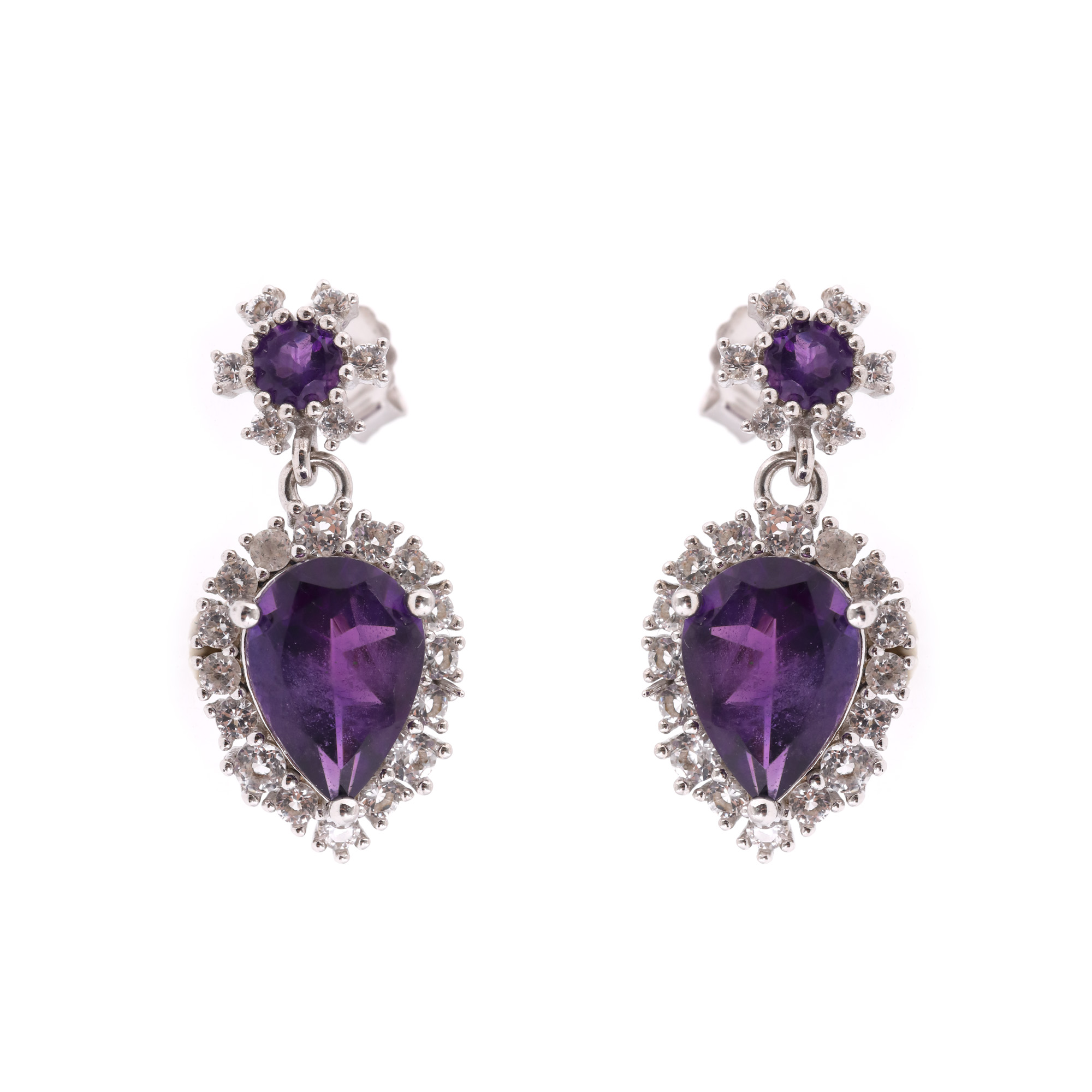 39. Pereche de cercei din argint, decorată cu ametiste și topaze