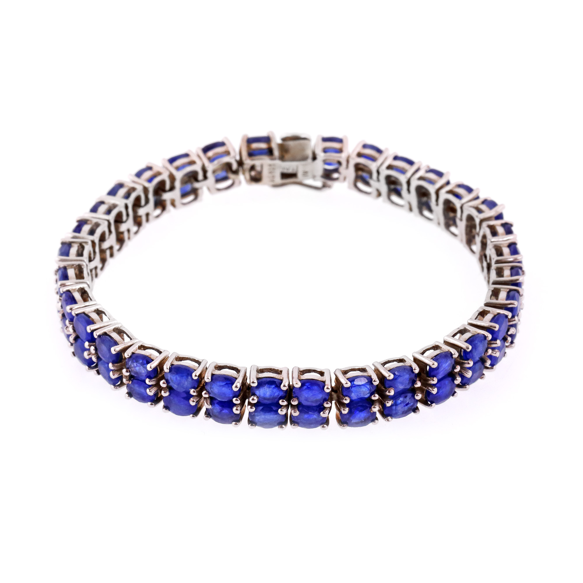 84 safire oval fațetate, culoare albastru, claritate SI-moderately included, cca. 15,12 ct.
