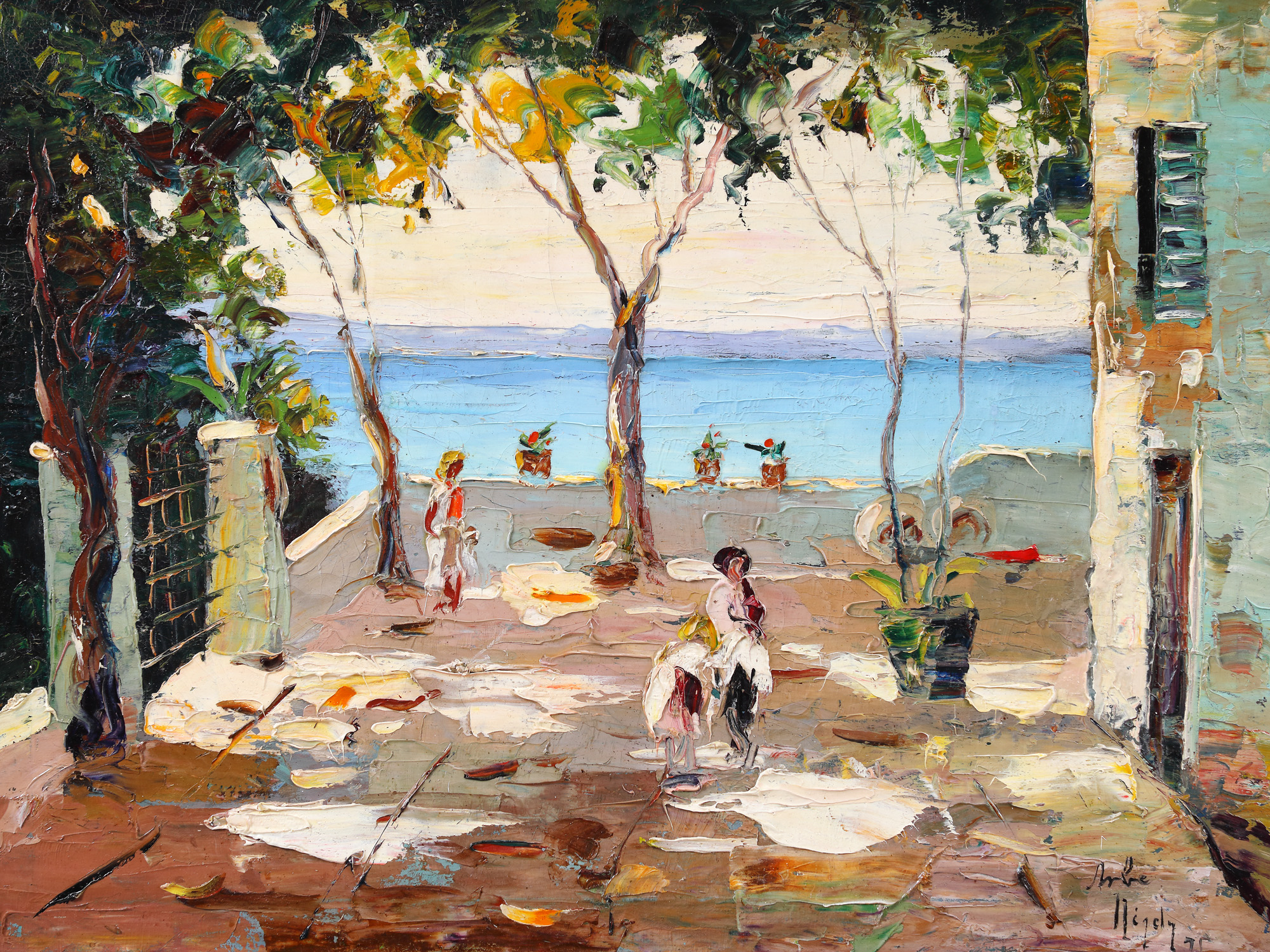 semnat și localizat, dreapta jos, cu negru, ”Negely, Arbe”