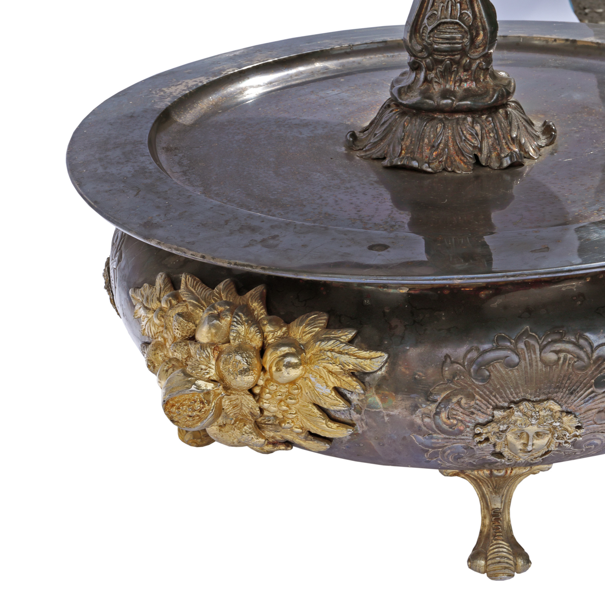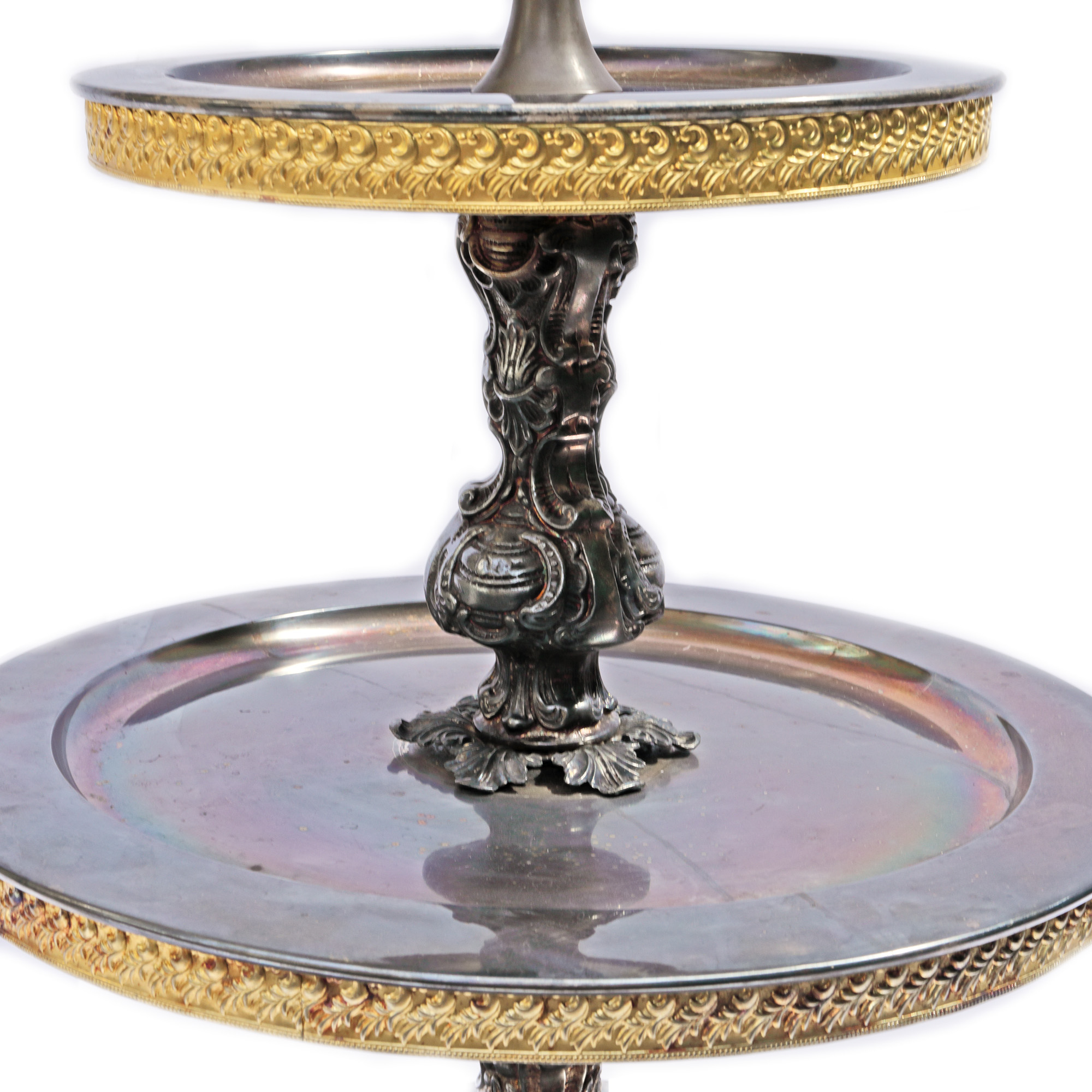 36. Etajeră în manieră Louis XVI, din alamă și fontă, decorată cu motive vegetale și fructe, prima jumătate a sec. XX