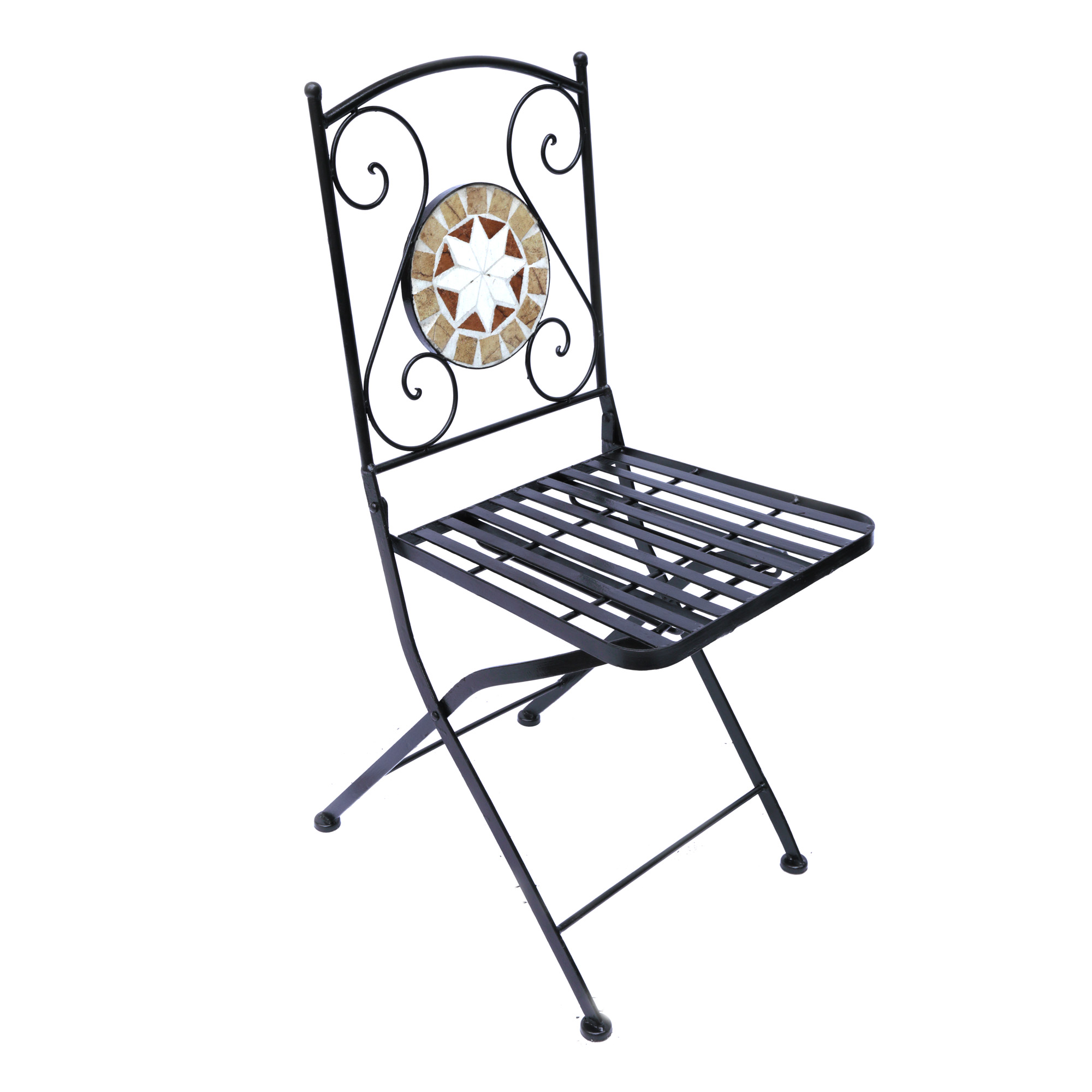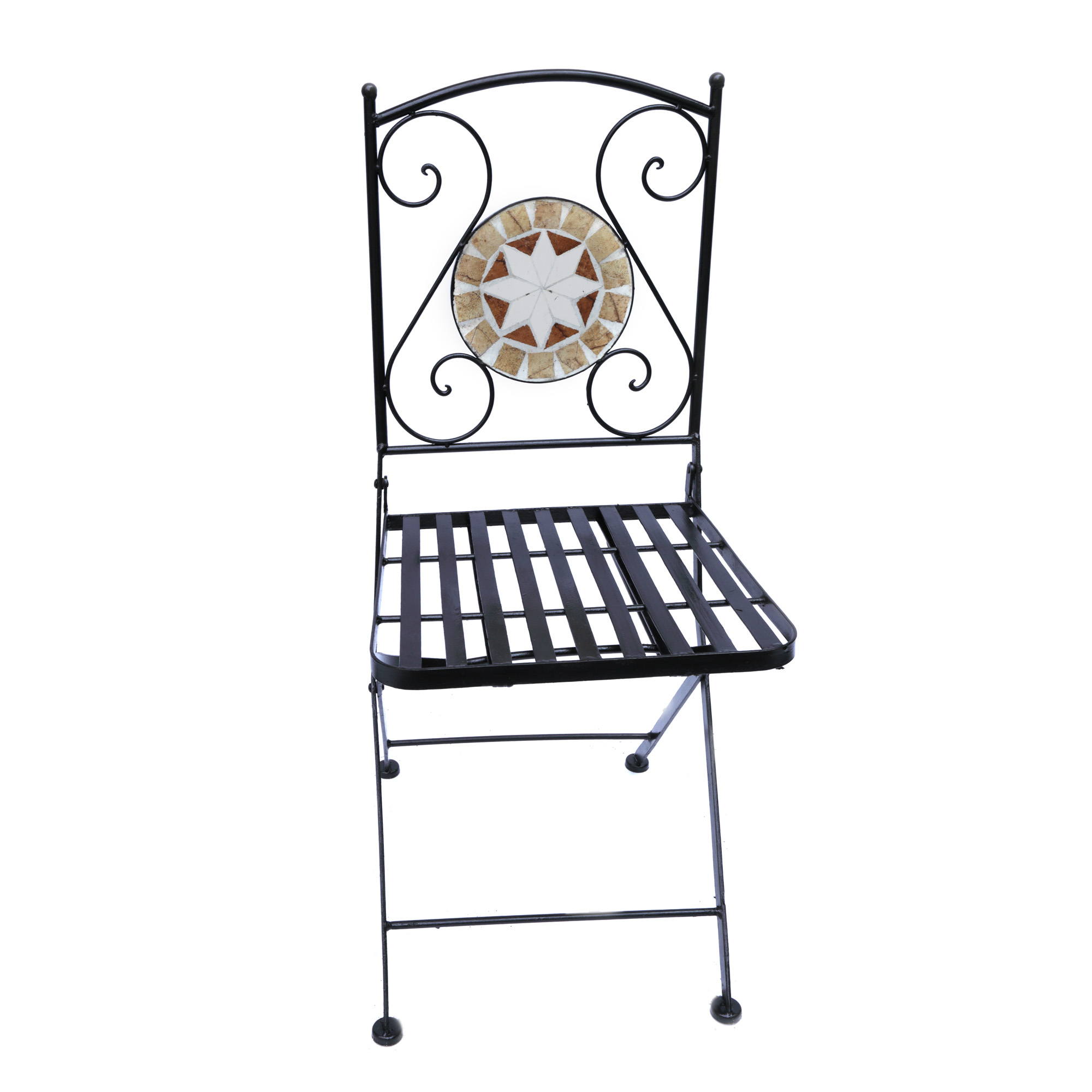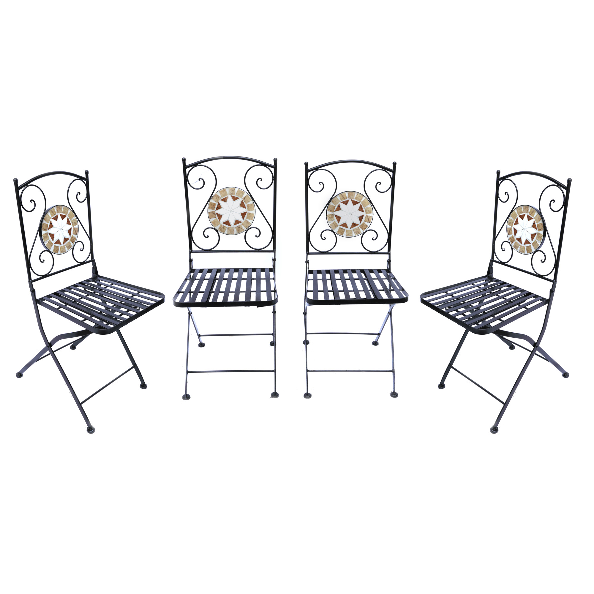 42. Lot format din patru scaune pliabile pentru terasă, ornate cu mozaic din piatră multicoloră [Sec. XXI]