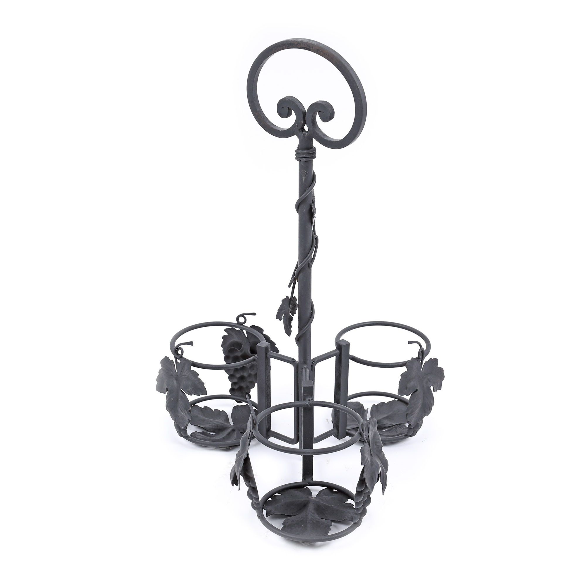 30. Lot format din trei suporturi din fier forjat, pentru sticle și pahare, decorat cu viță de vie și struguri [A doua jumătate a sec. XX]