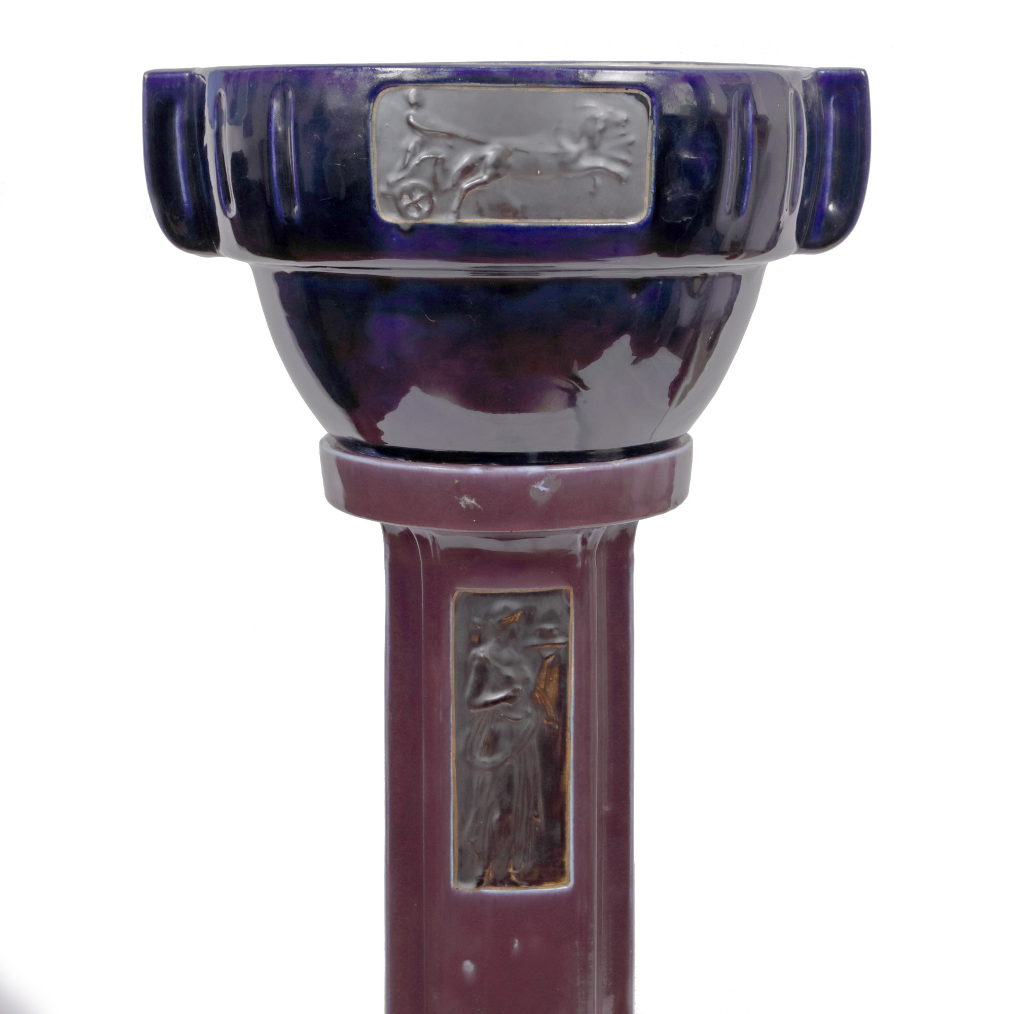 20. Piedestal cu cache-pot din majolica, în stil Secession, cca. 1900