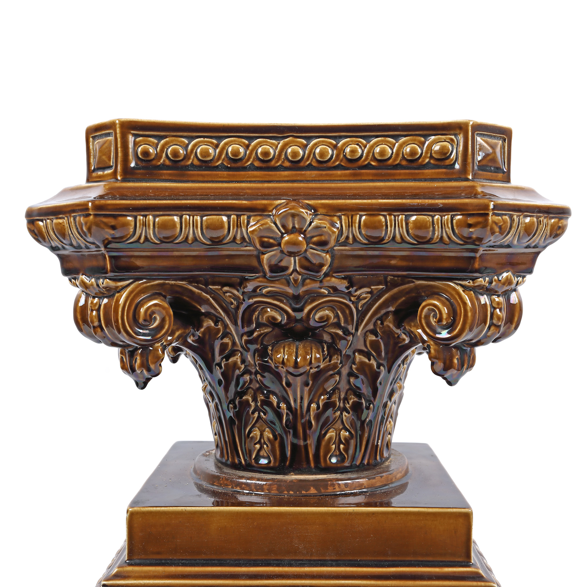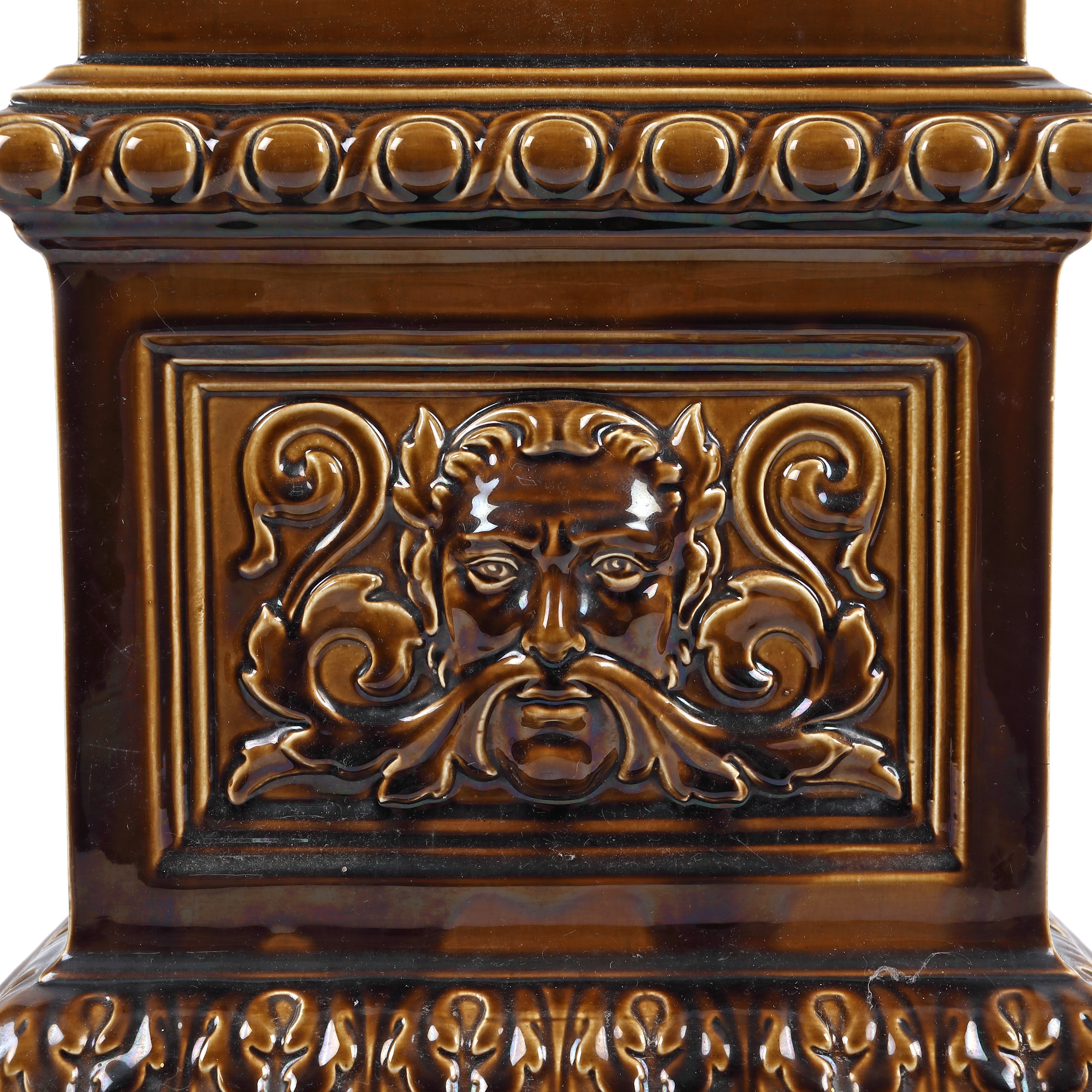 2. Piedestal Rörstrand din majolica, decorat în stil Neoclasic cu motive vegetale și cap de faun, prima jumătate a sec. XX