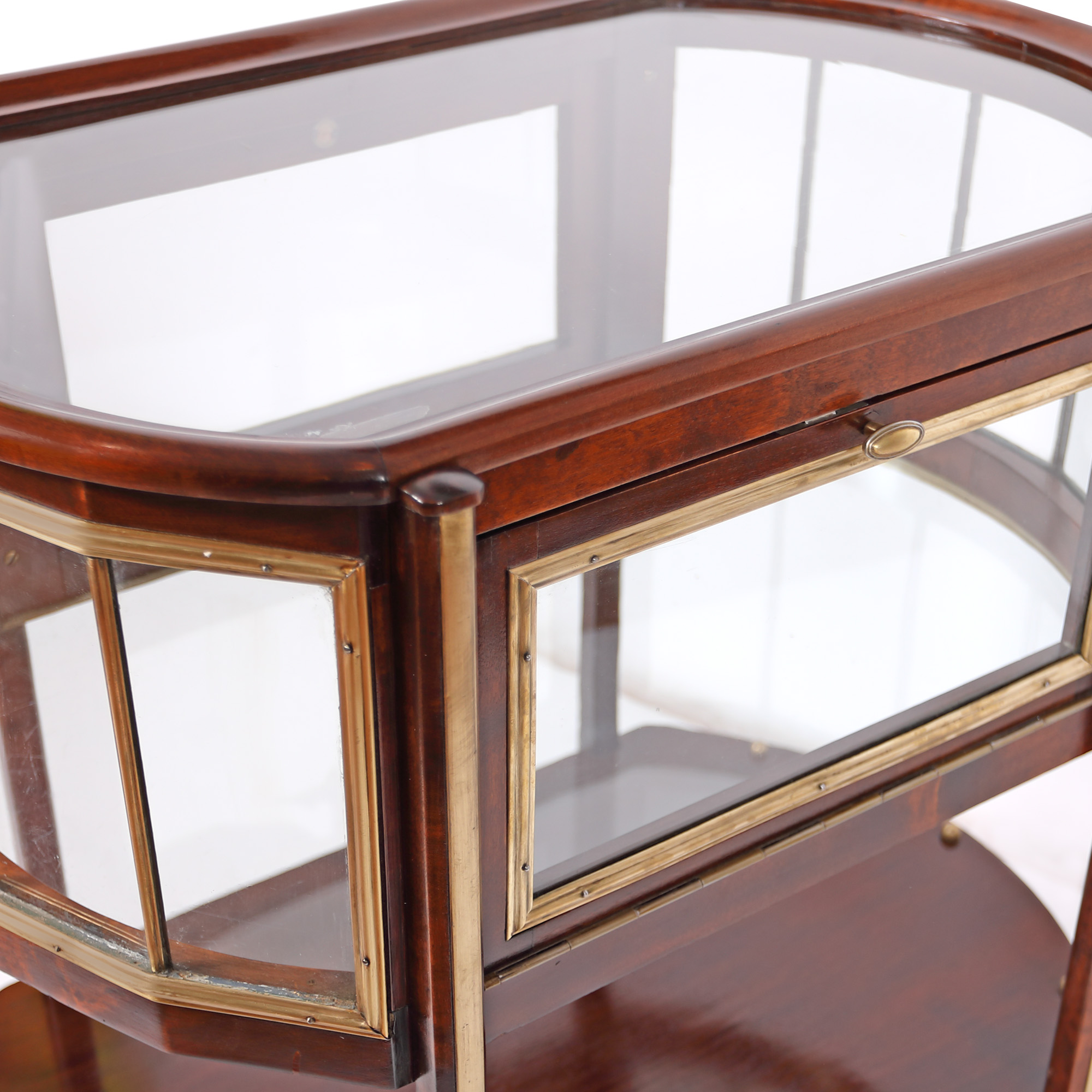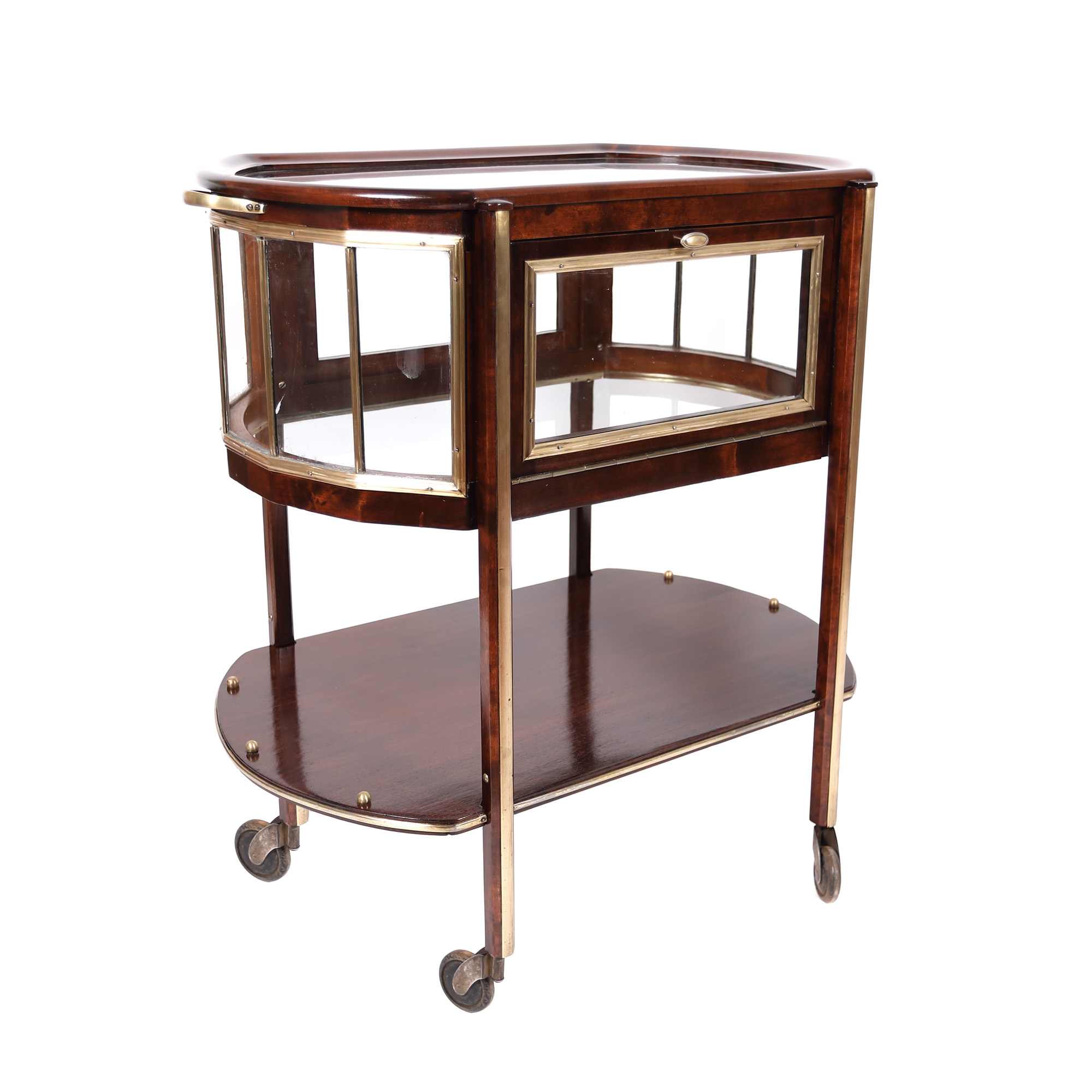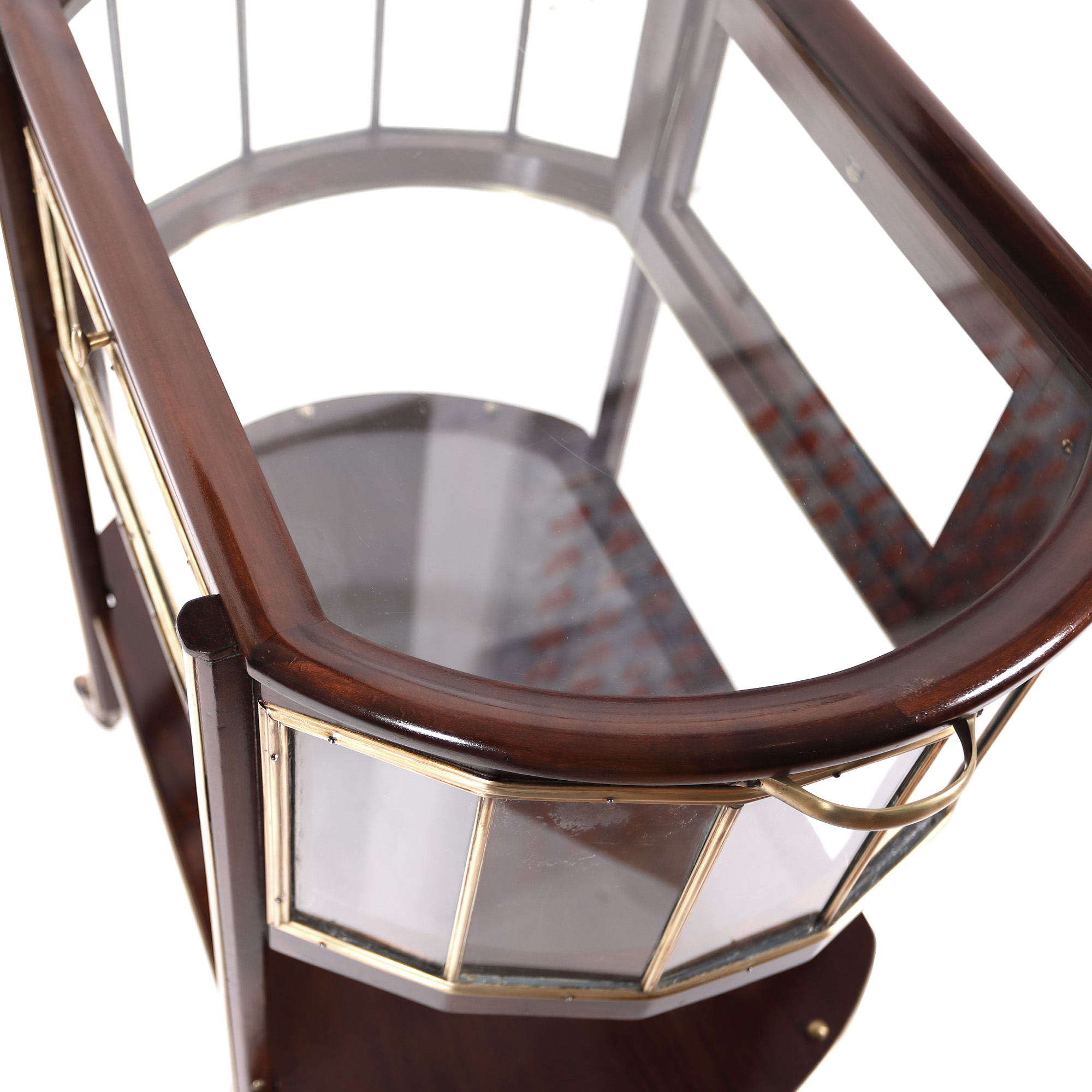 lemn furniruit, alamă, sticlă