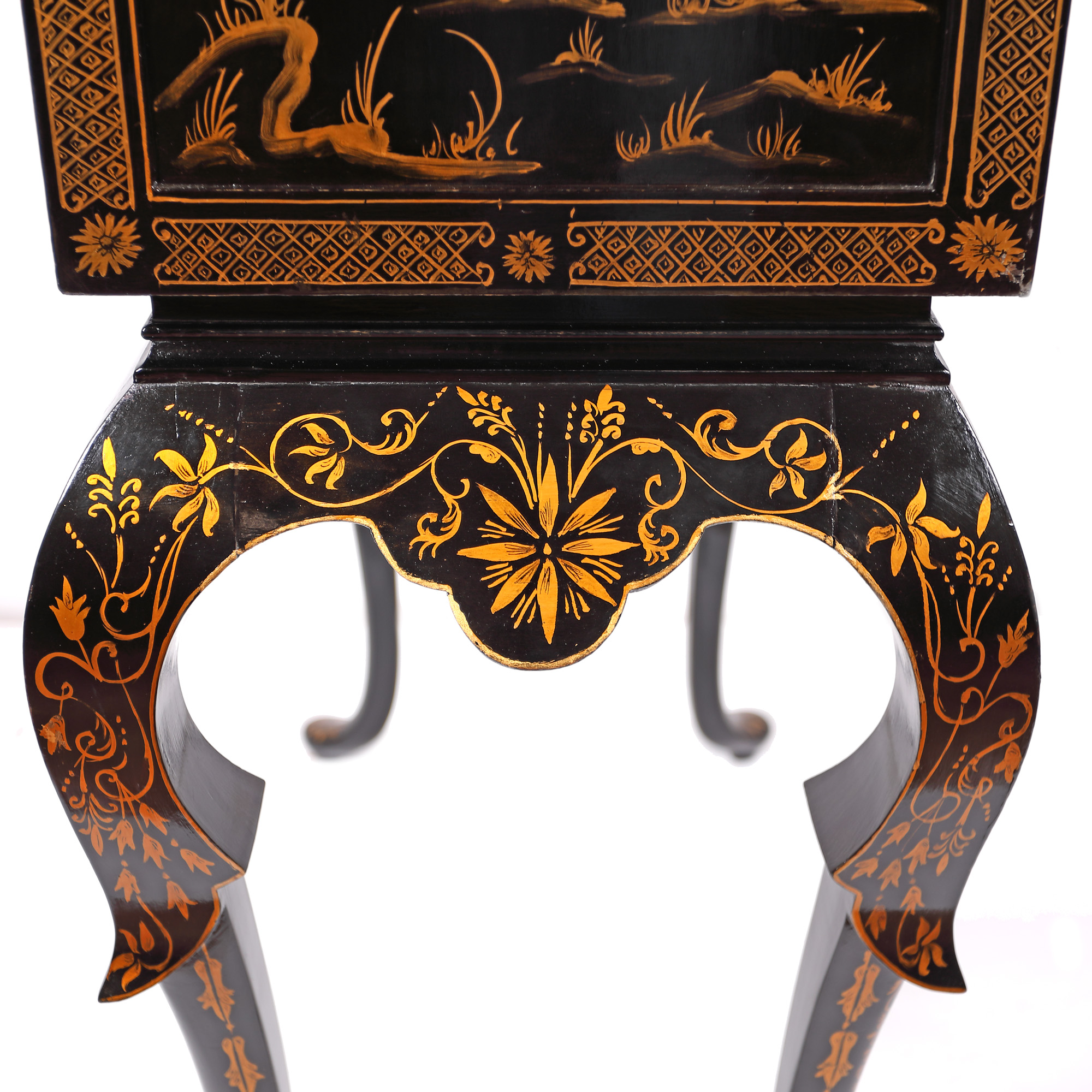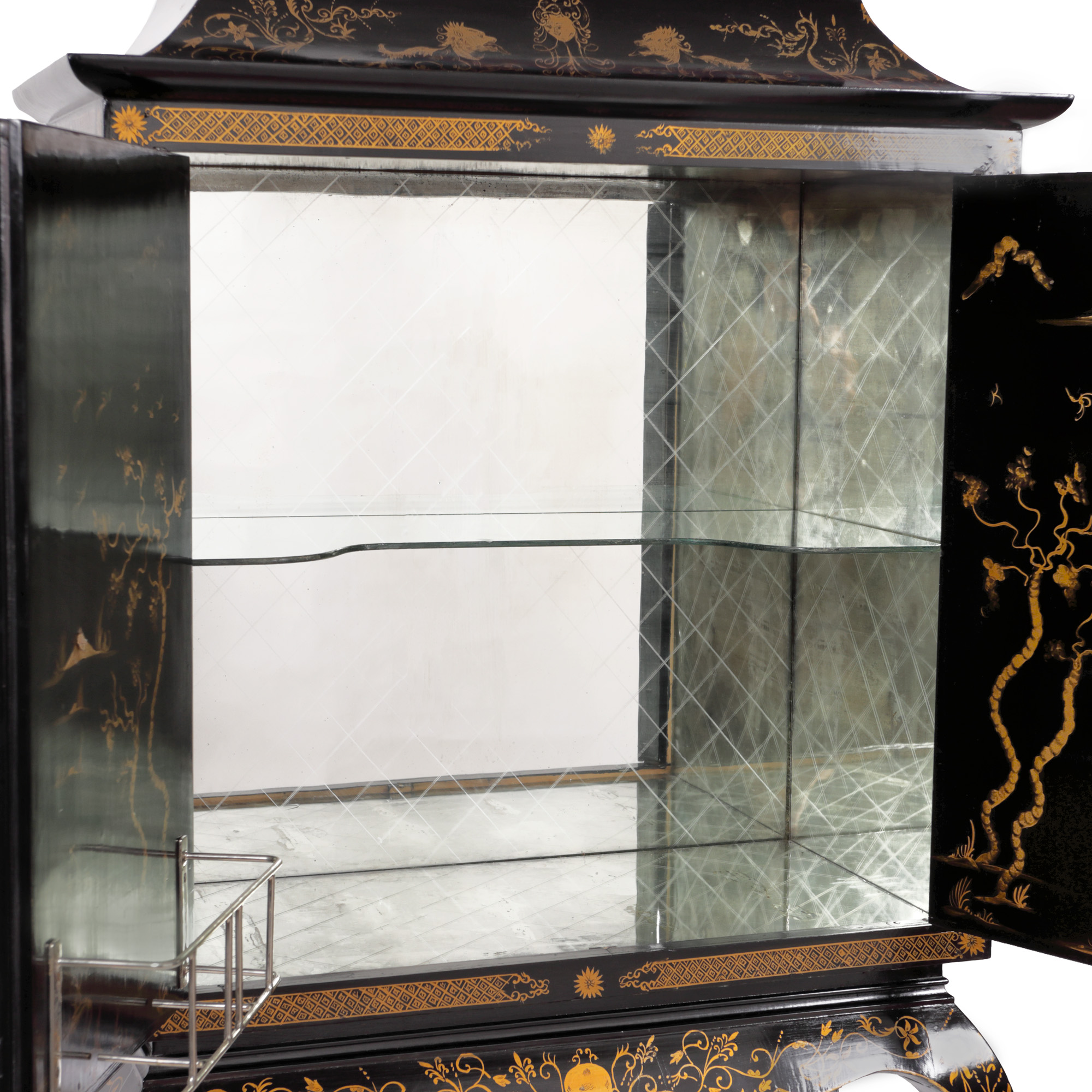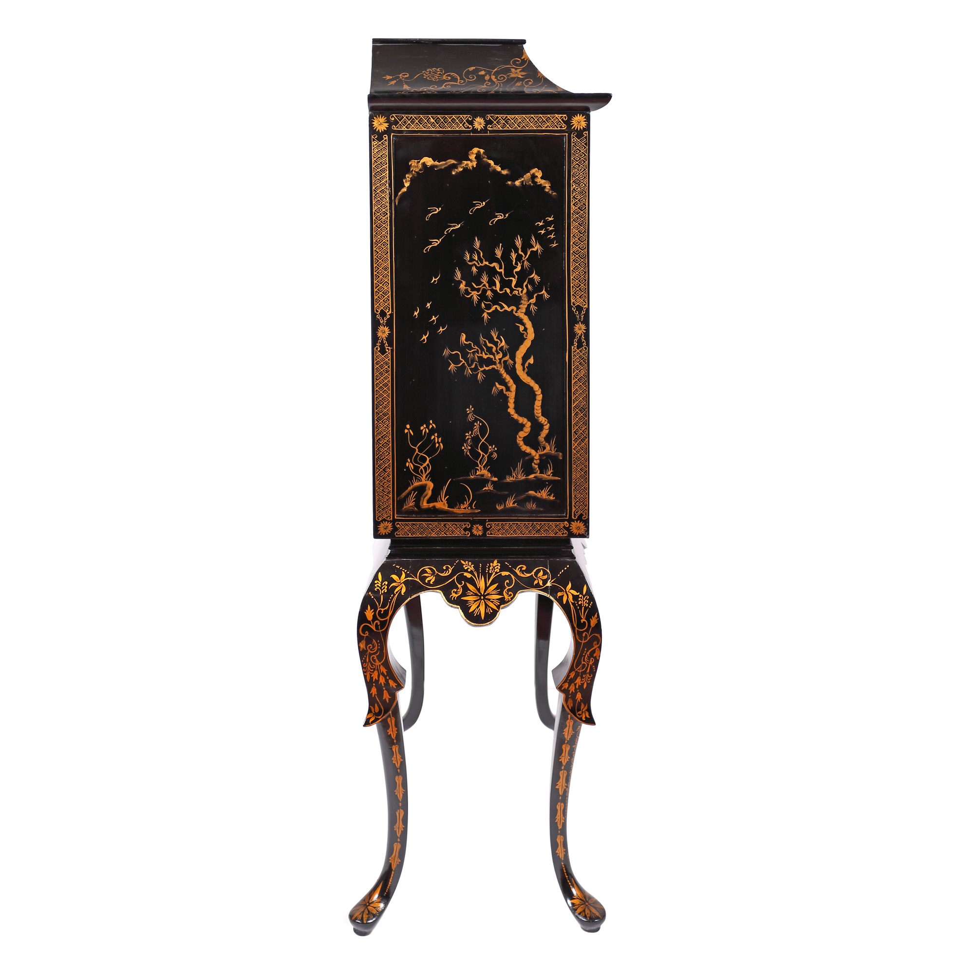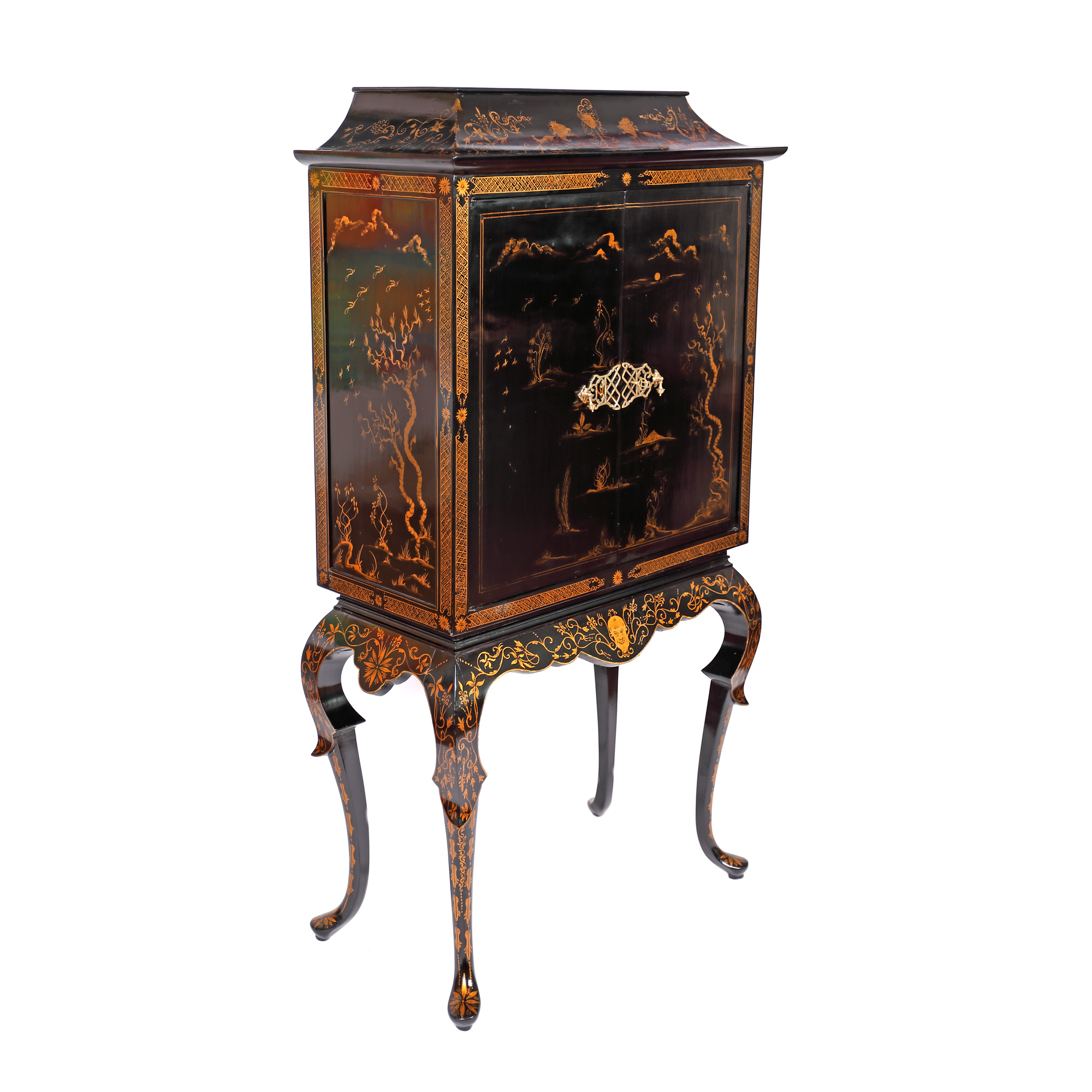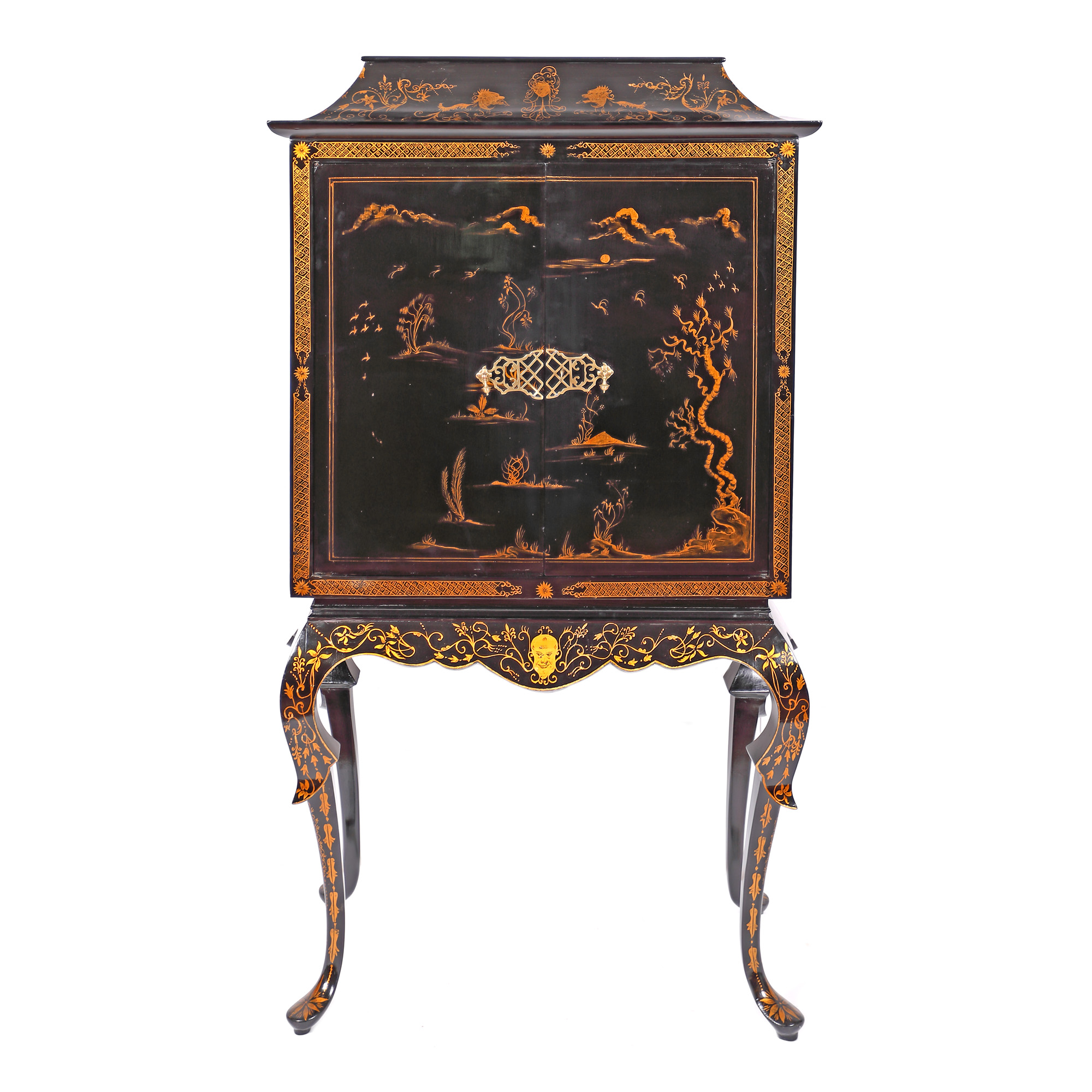 54. Cabinet-bar din lemn exotic, cu decor japonizant minuțios pictat cu aur, prima jumătate a sec. XX