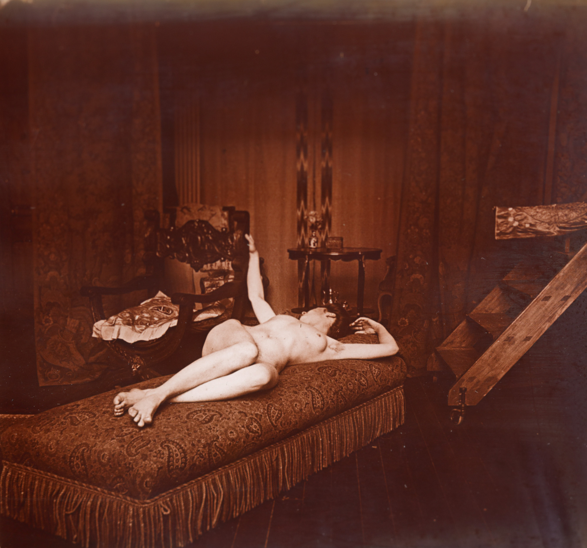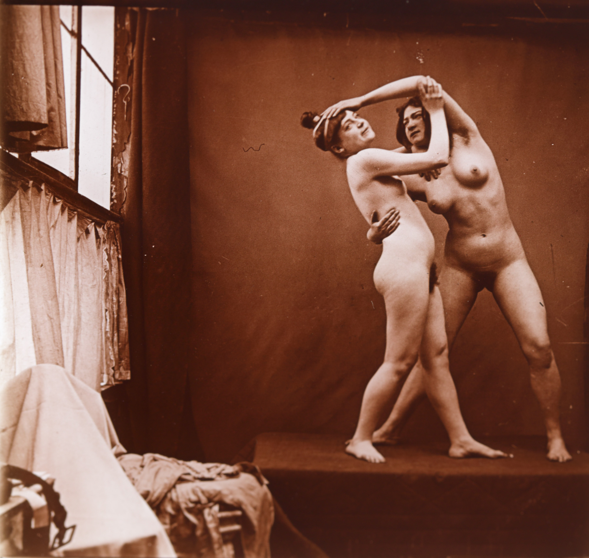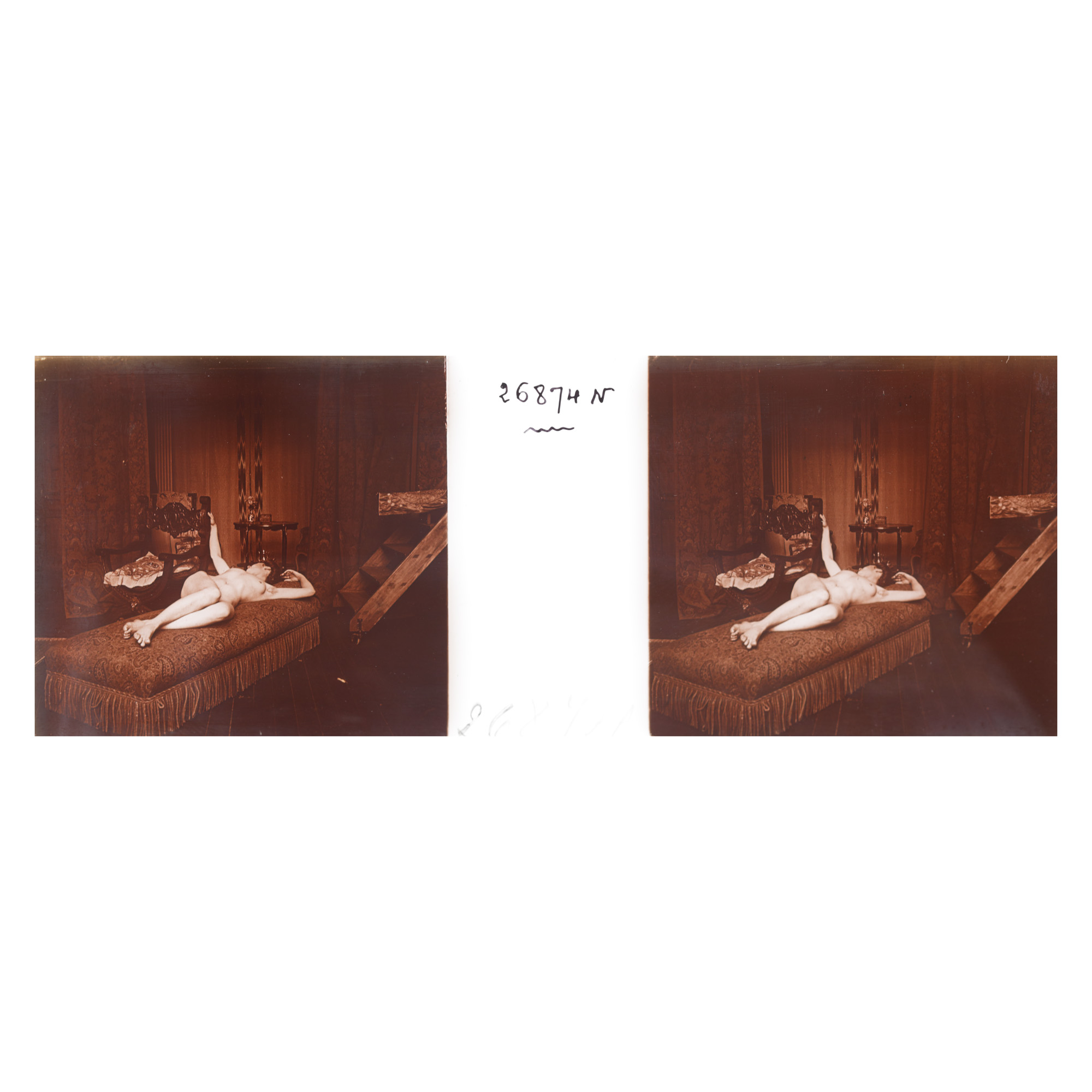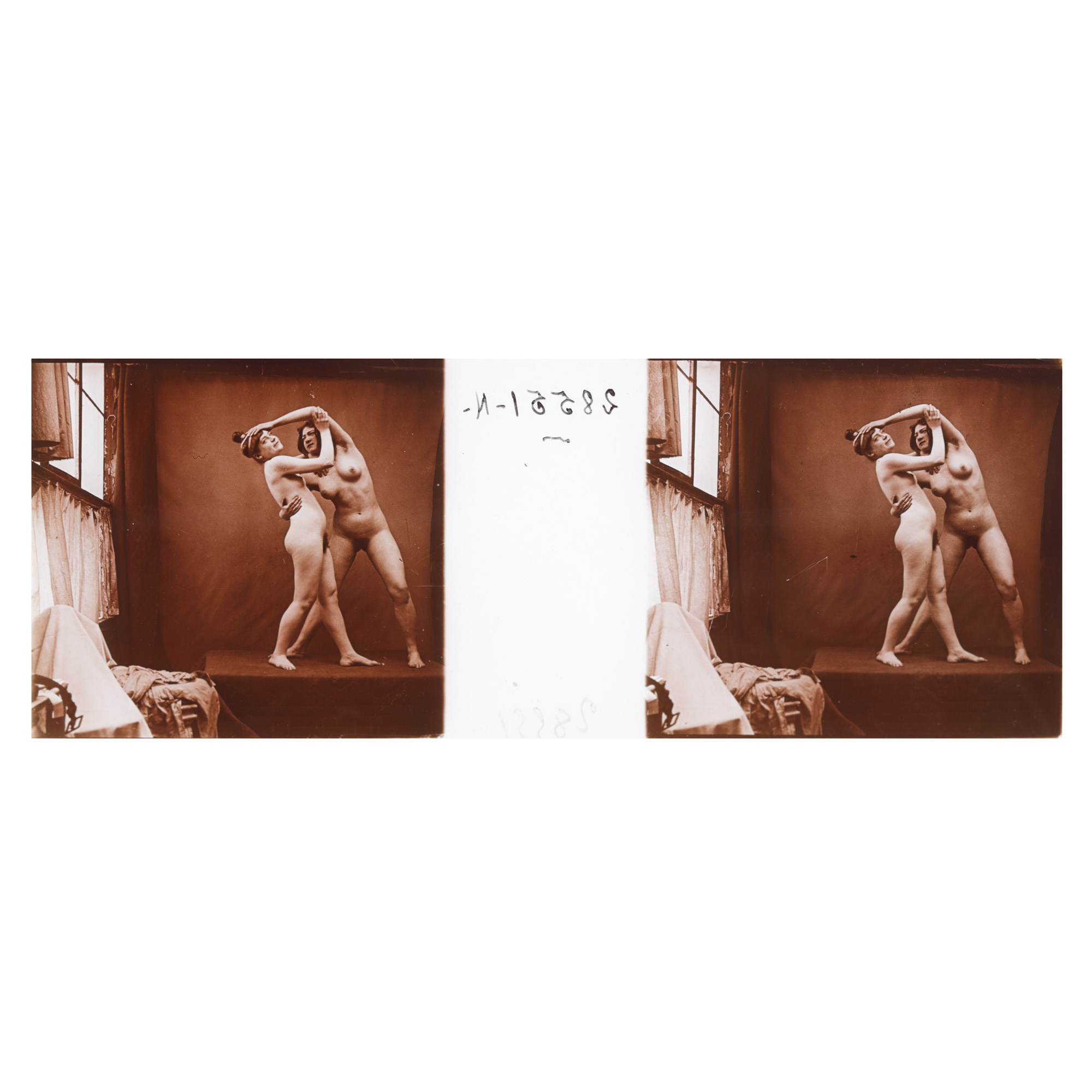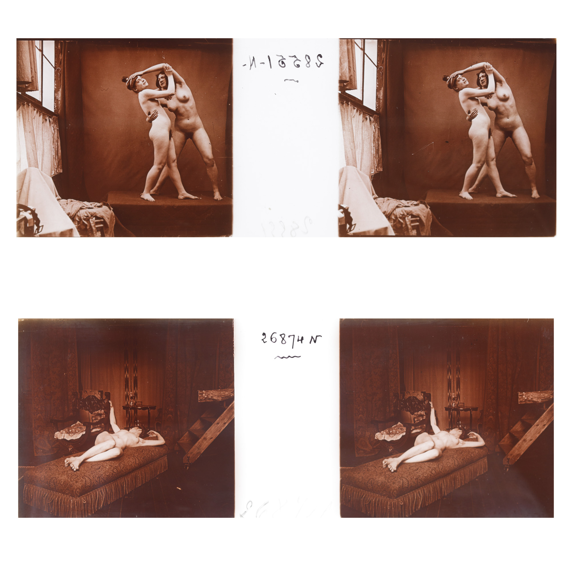 4. Lot format din două fotografii stereoscopice erotice, pe sticlă, Paris, cca. 1900, însoțite de diascop