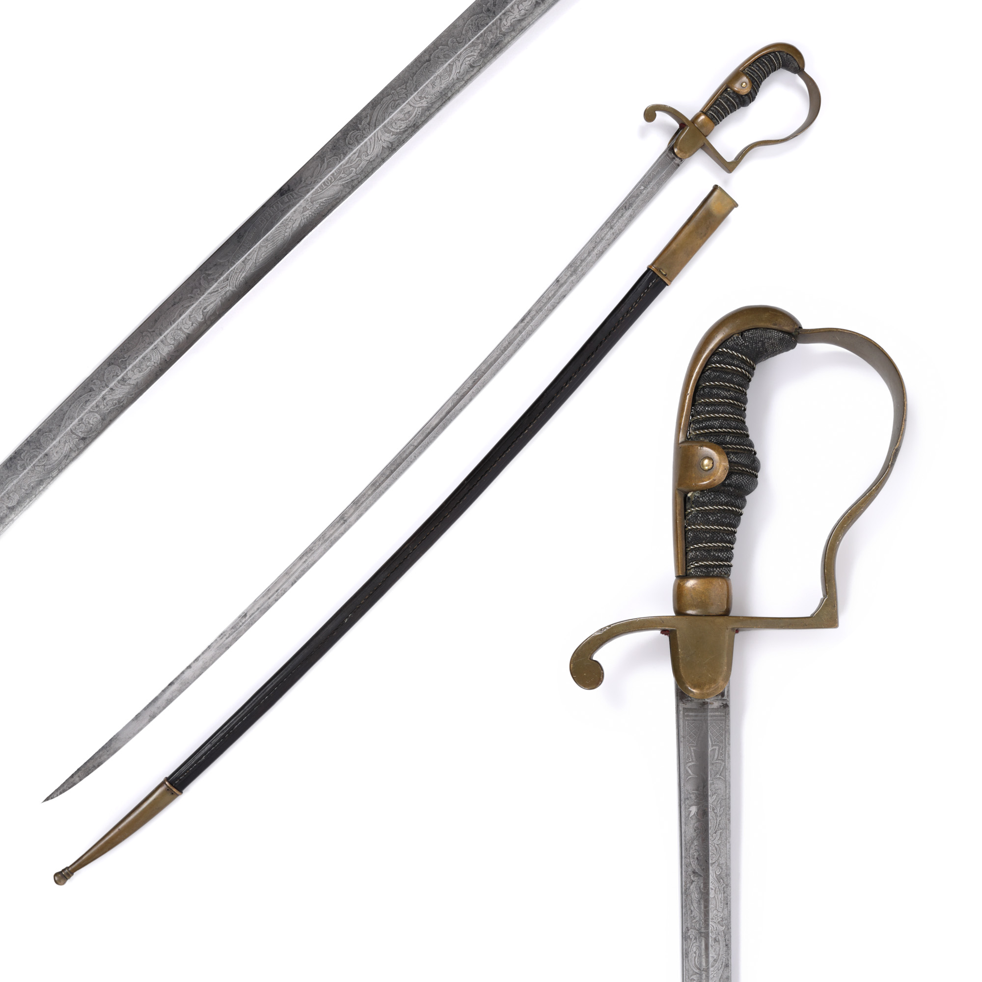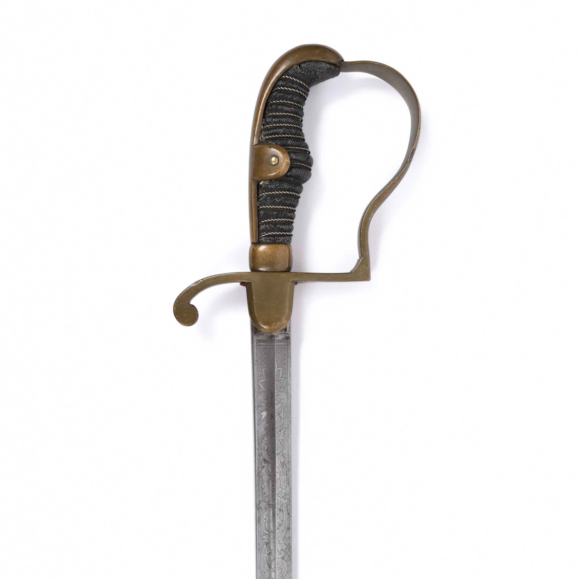 44. Sabie de ofițer prusac de artilerie, model 1873, cu teacă și lama gravată, sfârșitul sec. XIX