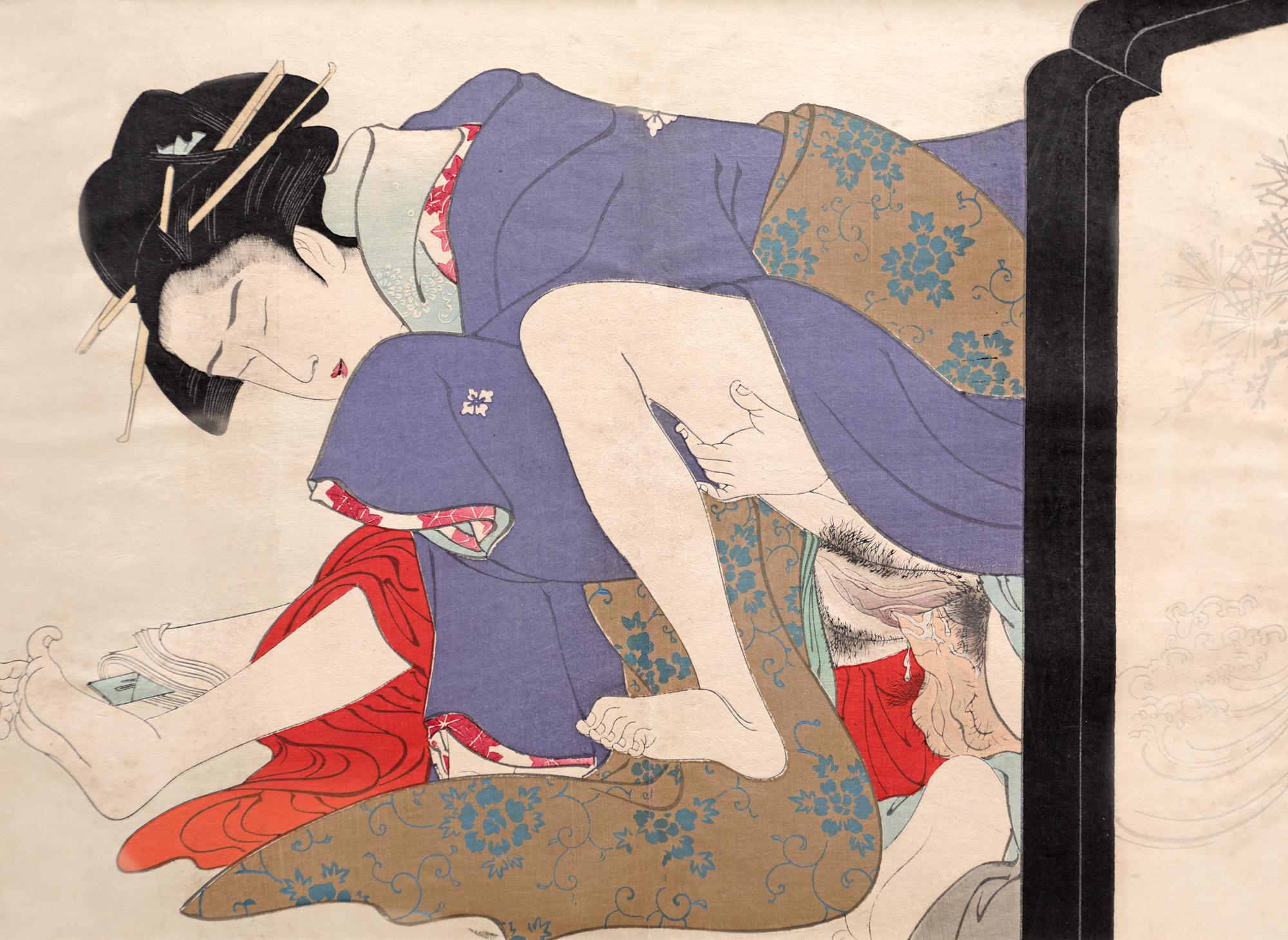 57. Shunga (scenă erotică), reprezentând o curtezană în timpul actului sexual [cca. 1900]