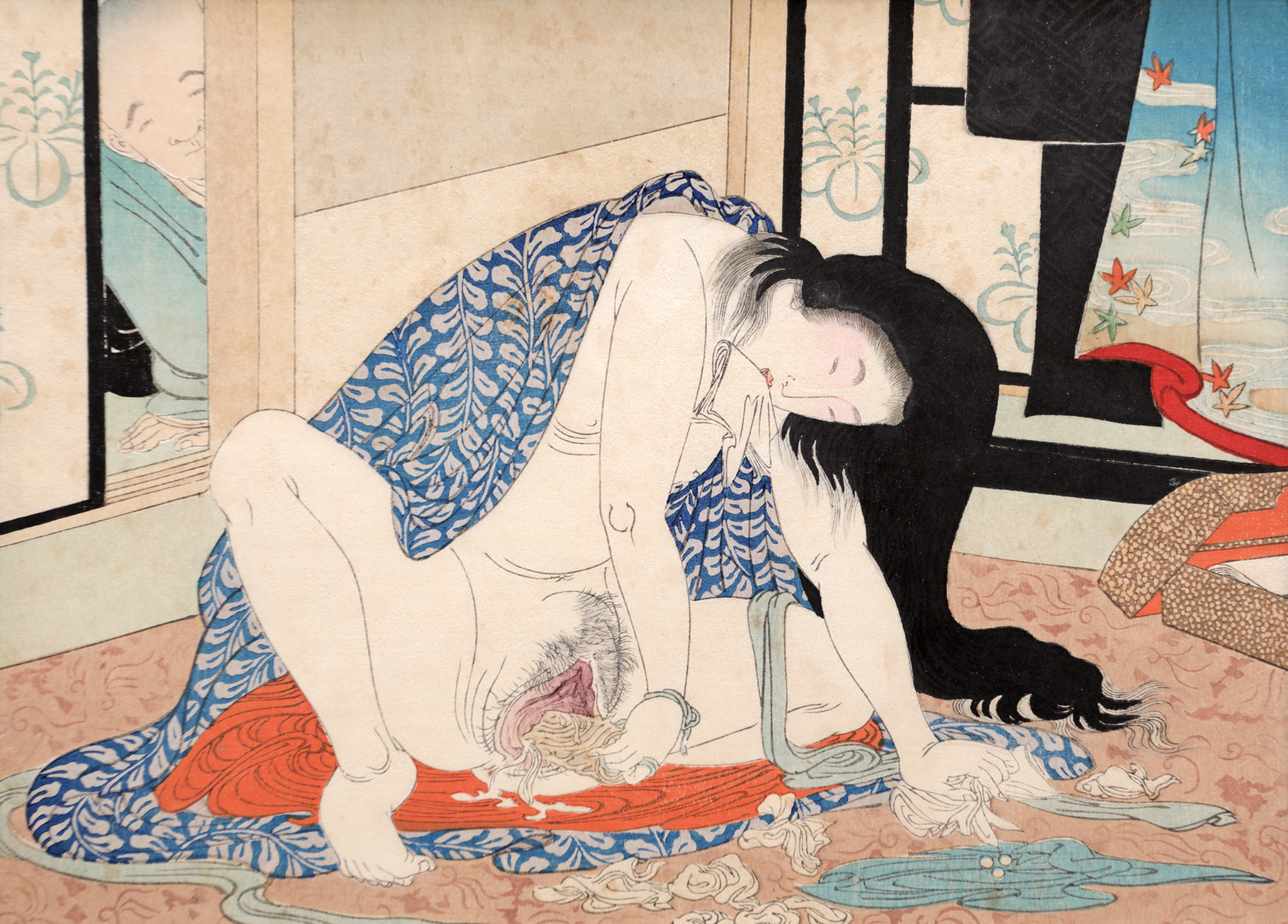 59. Shunga (scenă erotică), reprezentând o tânără experimentând cu o jucărie sexuală [cca. 1900]