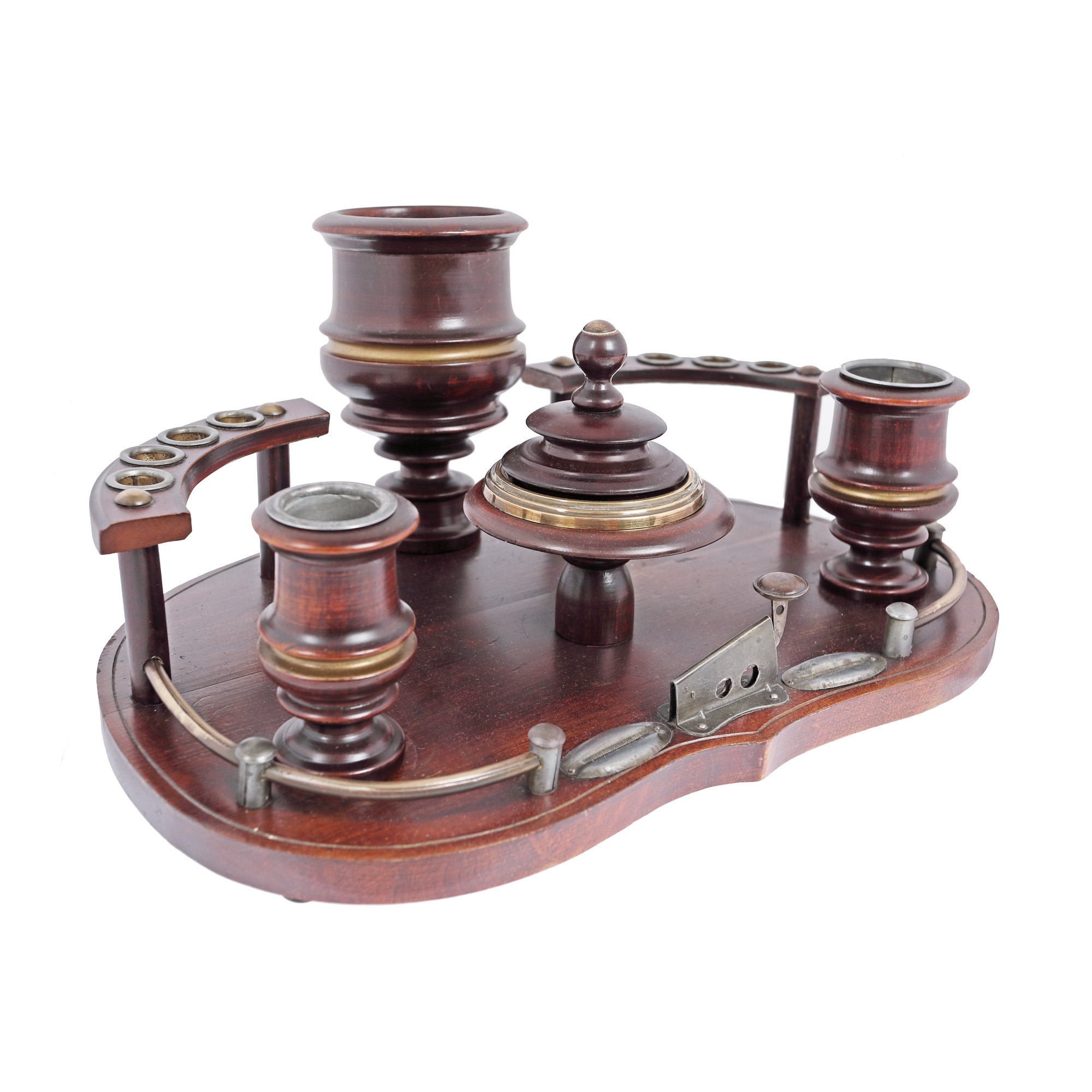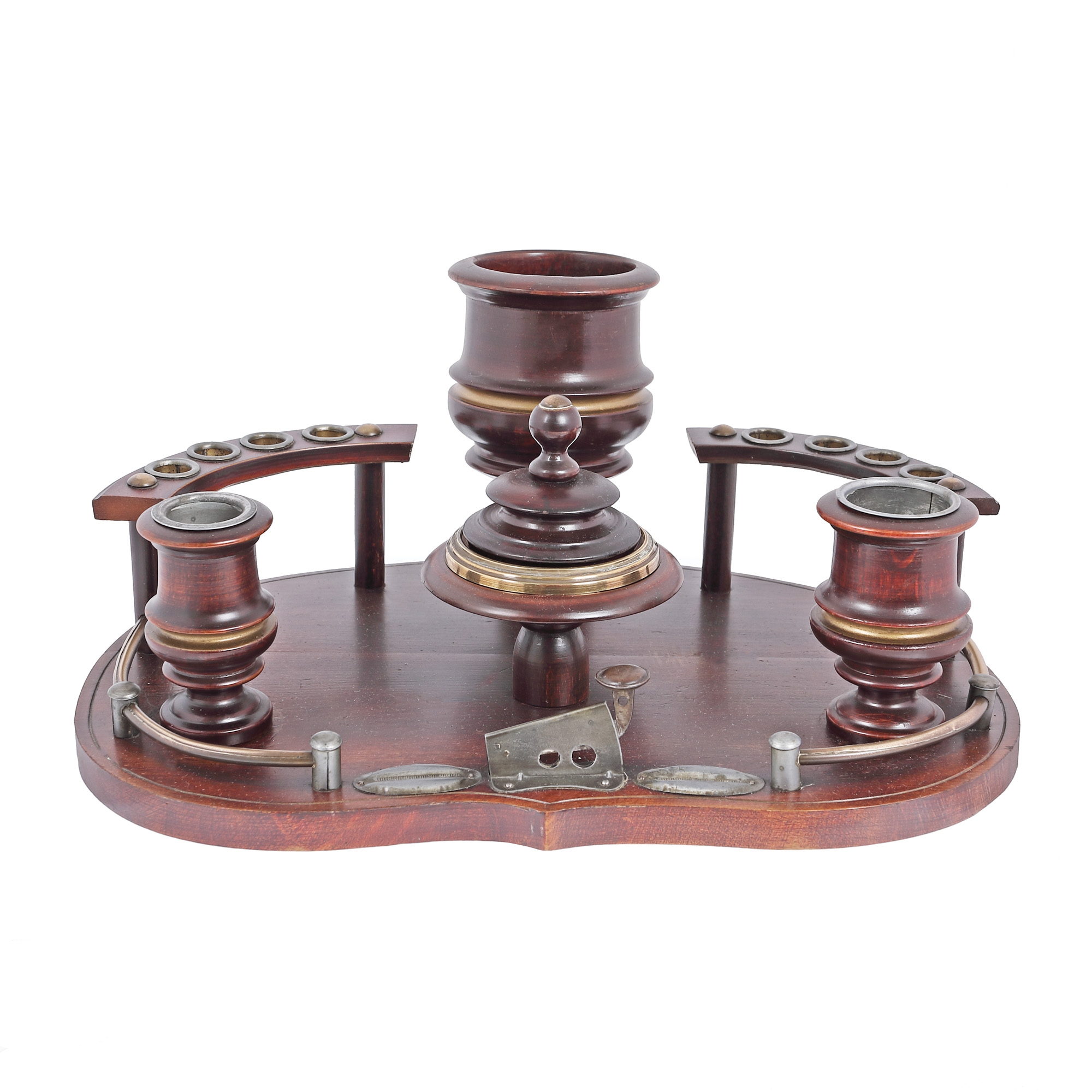 50. Suport din lemn pentru trabucuri, cu tăietor și scrumieră, mijlocul sec. XX