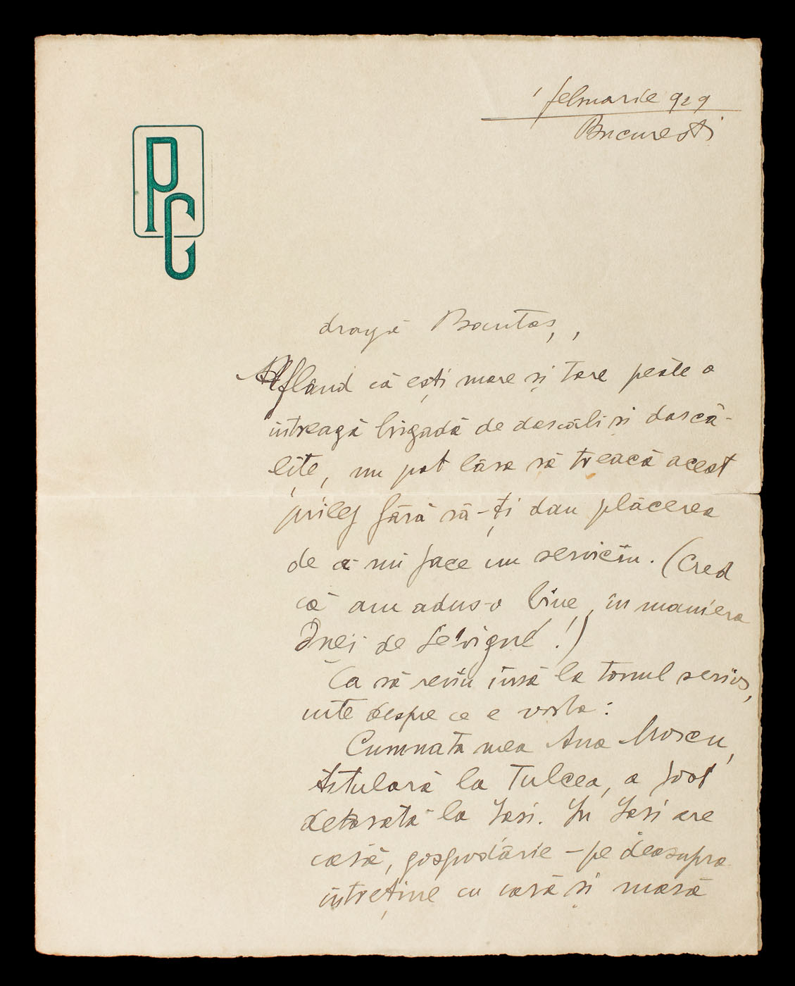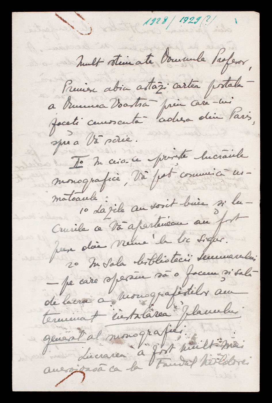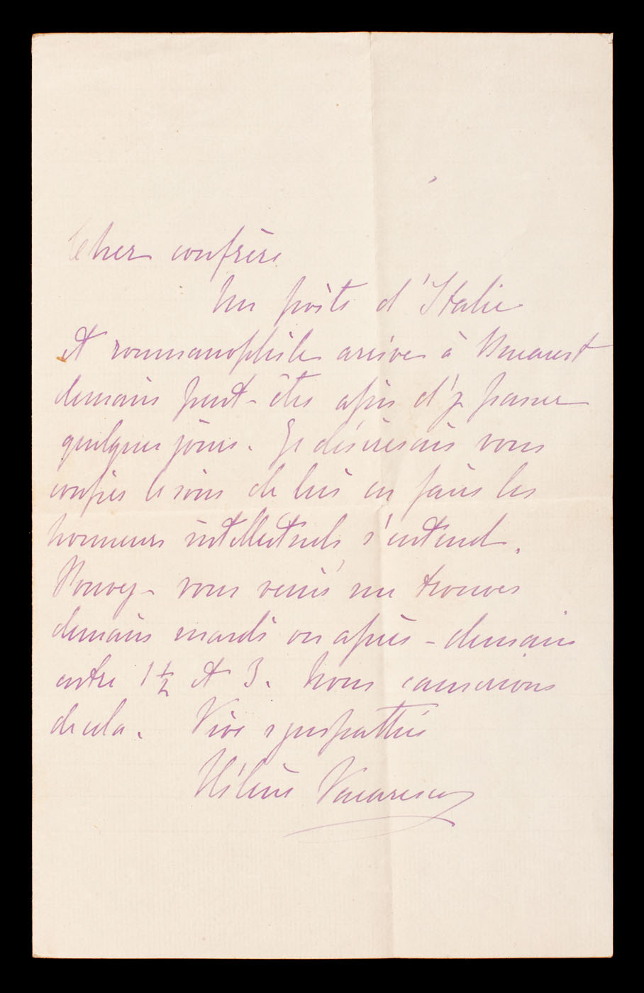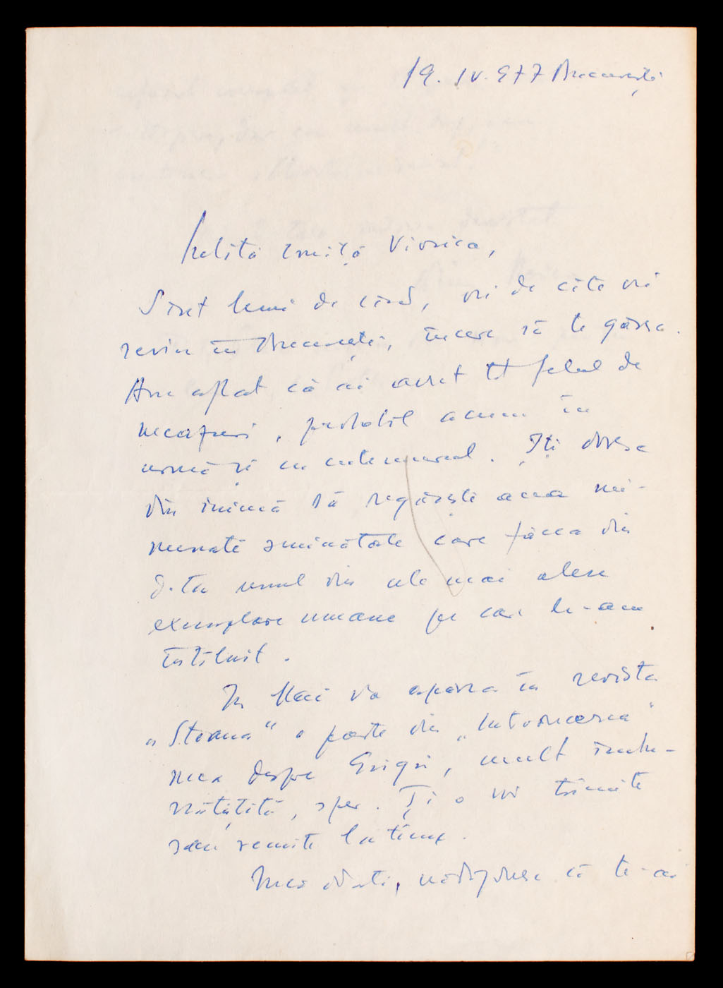 29. Scrisoare a Elenei Văcărescu, prin care anunţa că se întoarce în ţară, anii 1920 (2 file)