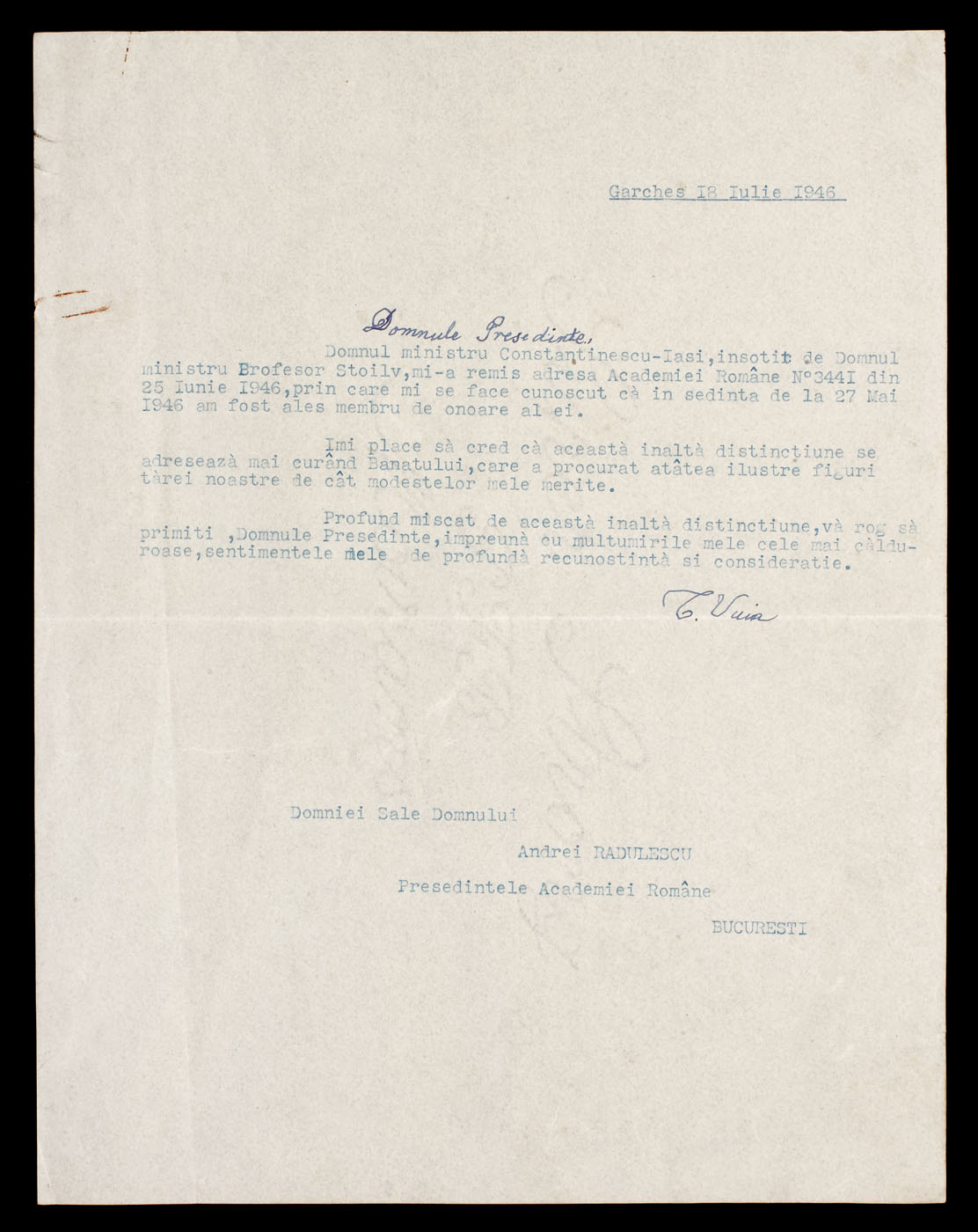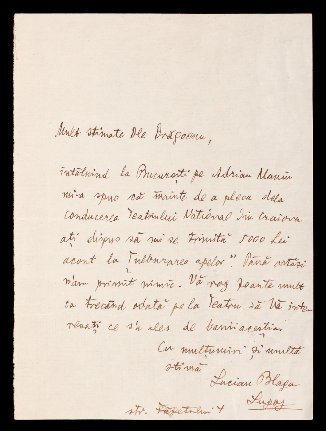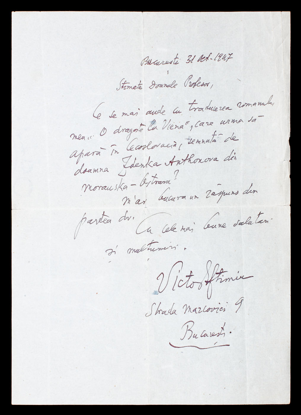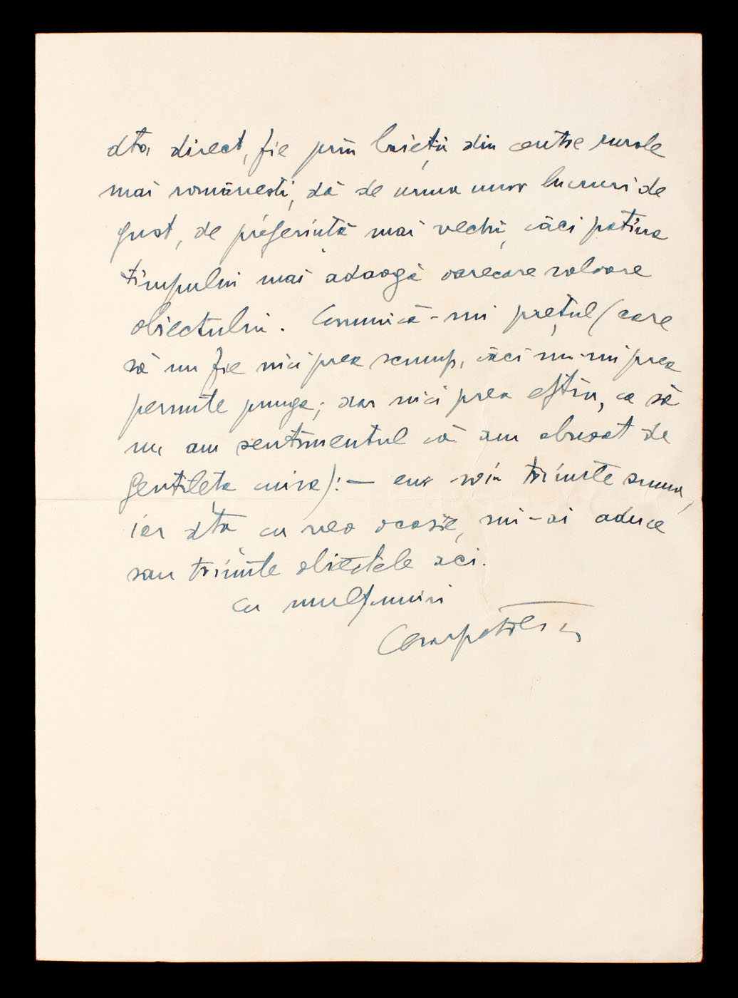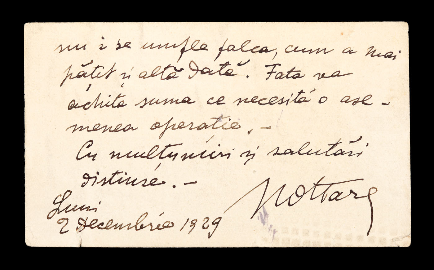 29. Scrisoare a Elenei Văcărescu, prin care anunţa că se întoarce în ţară, anii 1920 (2 file)