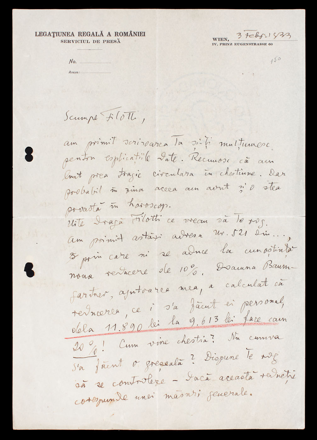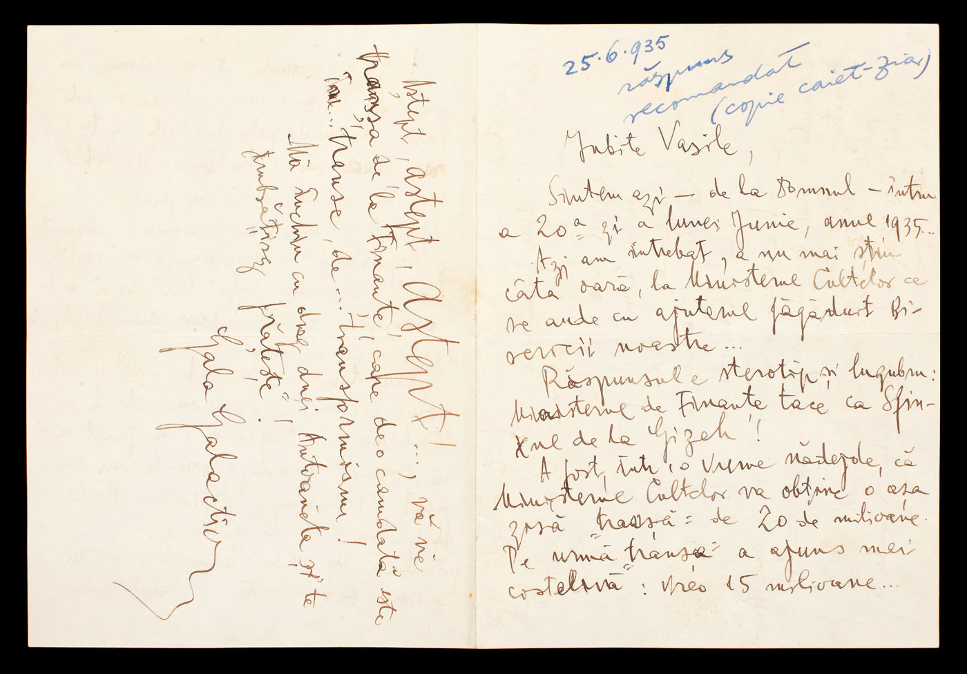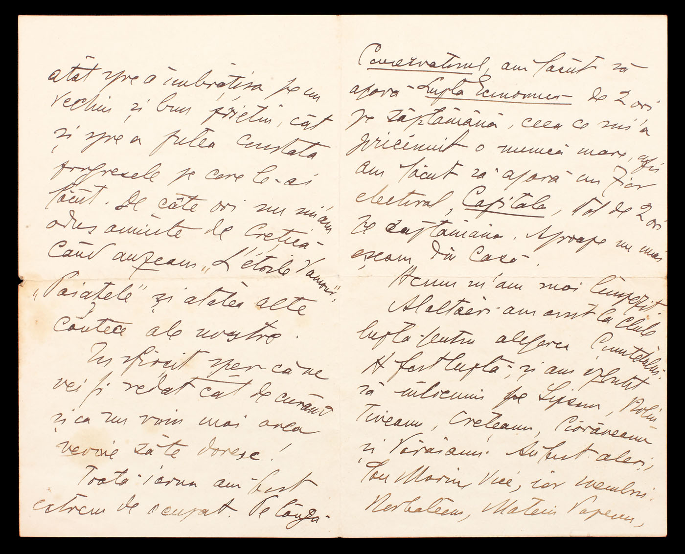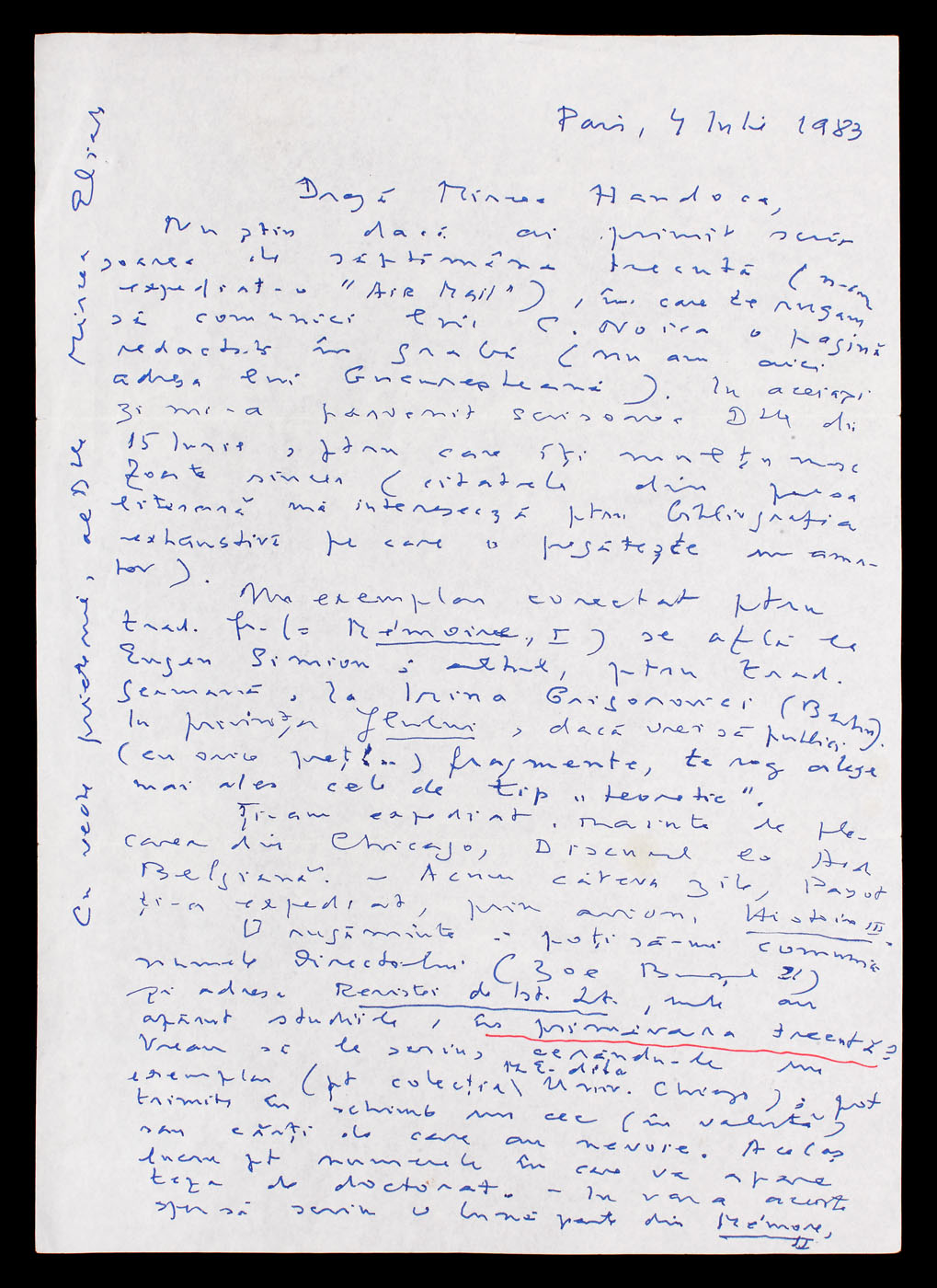 29. Scrisoare a Elenei Văcărescu, prin care anunţa că se întoarce în ţară, anii 1920 (2 file)