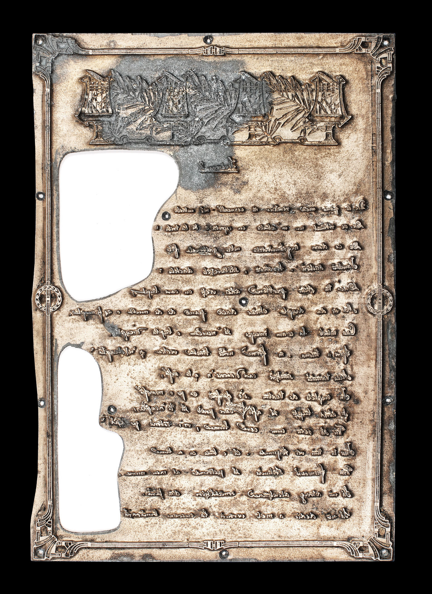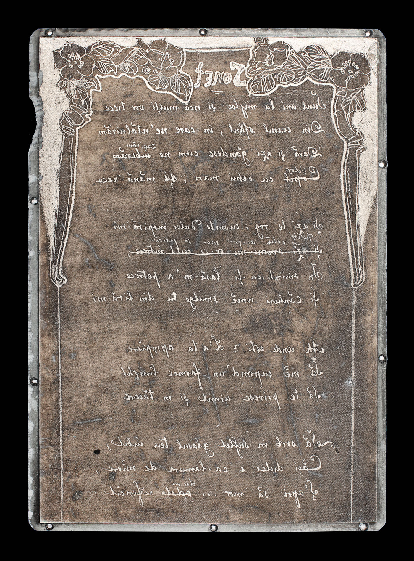 12. Placă de gravură după manuscrisul "Sonet" de Mihai Eminescu, provine din colecția Octav Minar