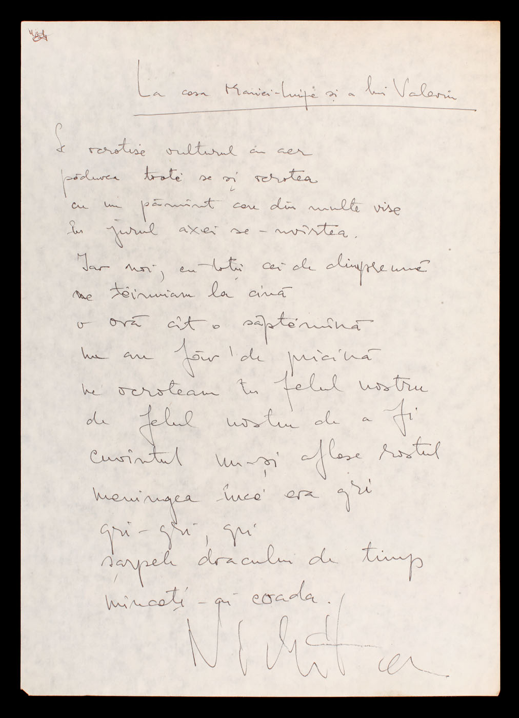 16. Poezie manuscris a lui Nichita Stănescu, semnată olograf
