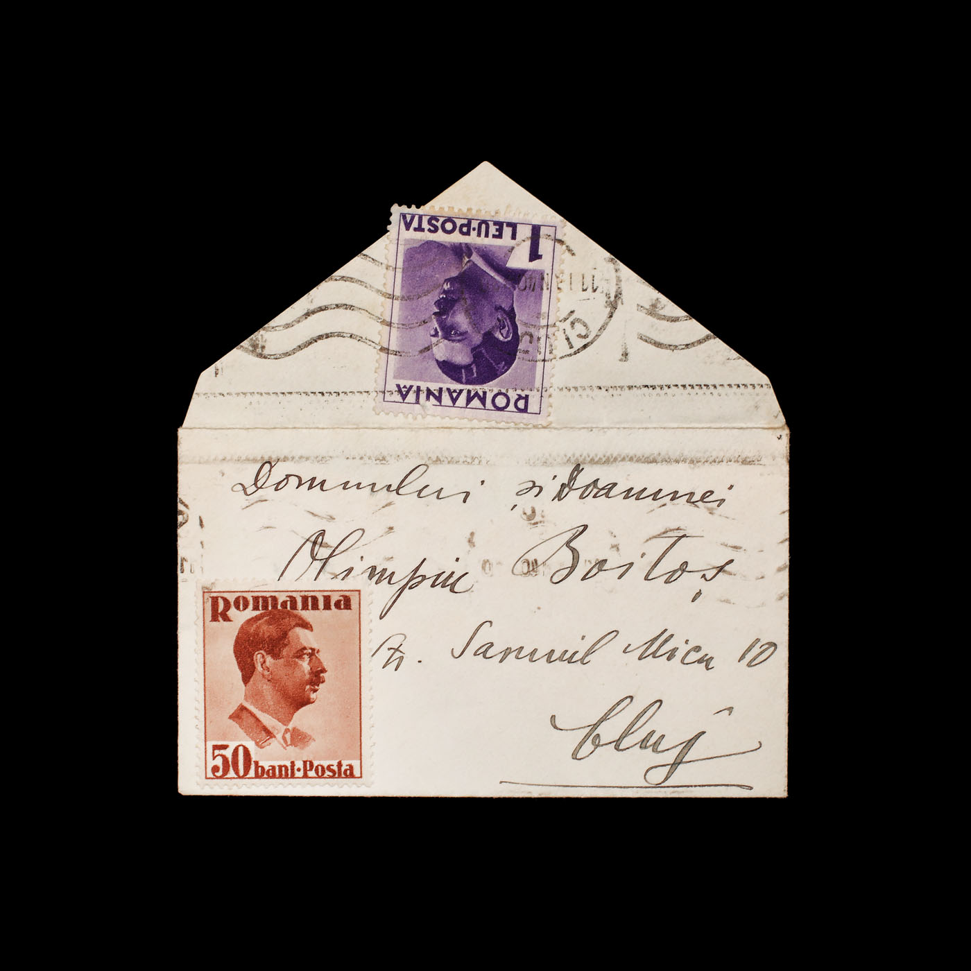2. Carte de vizită a lui Lucian Blaga, către istoricul literar Olimpiu Boitoș, cu adnotările poetului, Cluj, în plic original, cca. 1939