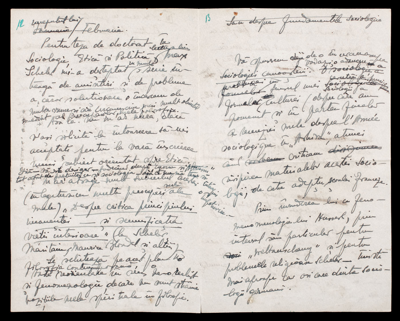 19. Scrisoare semnată de Mircea Vulcănescu, adresată lui Dimitrie Gusti, profesorul său, despre tezele sale de doctorat (8 file)