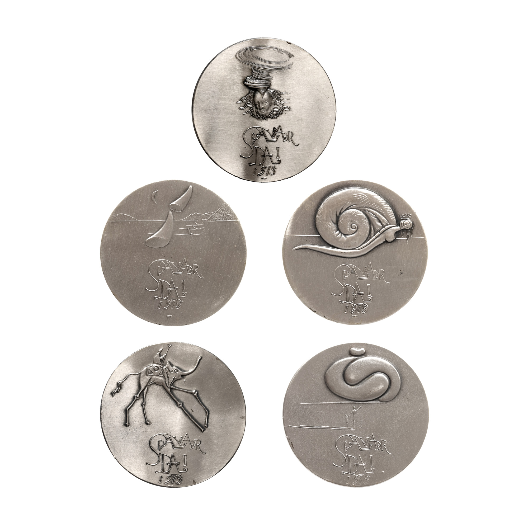 16. Lot format din cinci medalii din argint din seria ”Cele 10 porunci”, de Salvador Dali [1975]