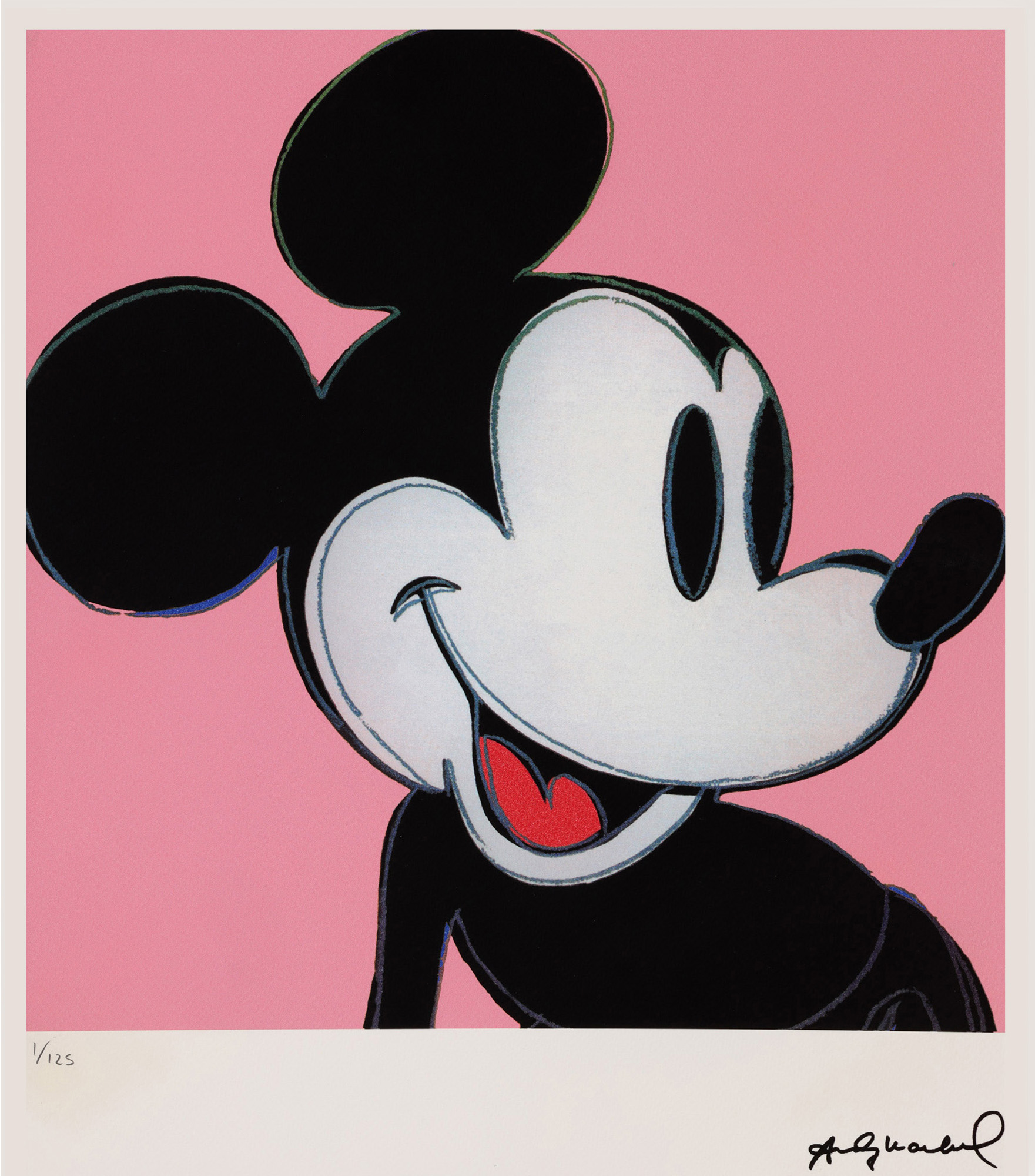 semnat dreapta jos, sub cadru, ”Andy Warhol”; numerotat stânga jos, sub cadru, în creion, ”1/125; pe verso, ștampila editurii, ”Andy Warhol”