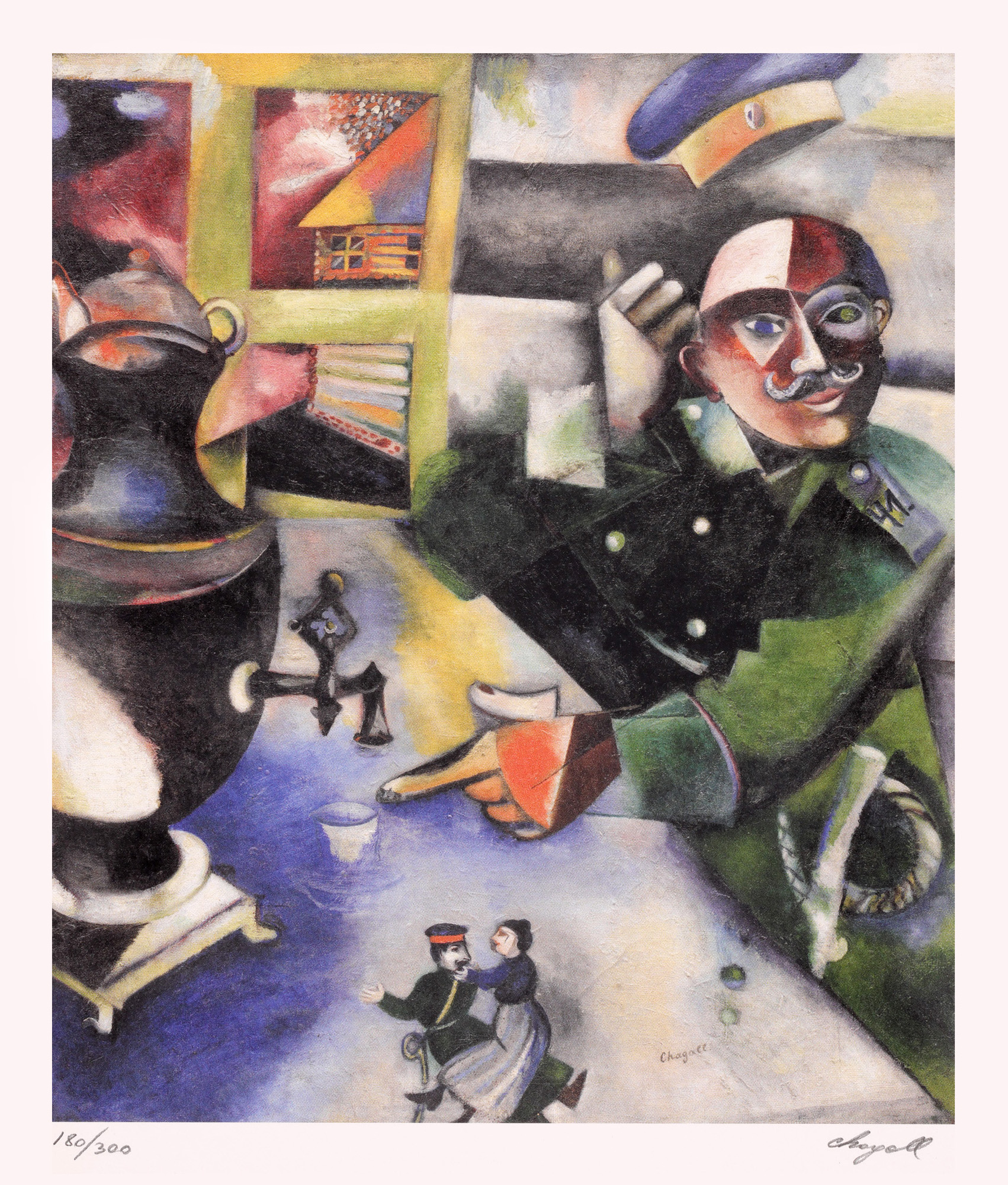 semnat dreapta jos, sub cadru, în creion, ”chagall”; numerotat stânga jos, sub cadru, în creion, ”180/300”