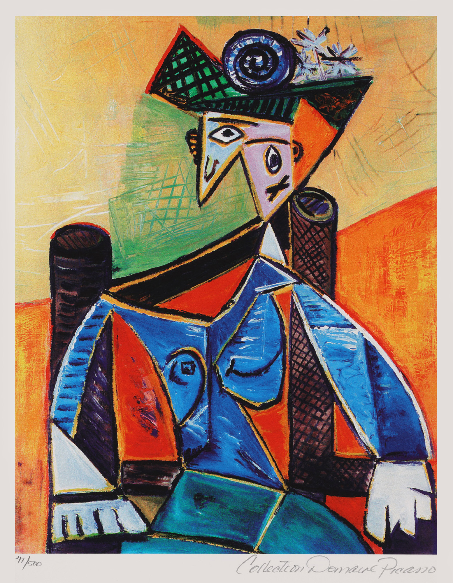 notat dreapta jos, sub cadru, cu negru, ”Collection Domaine Picasso”; numerotat stânga jos, sub cadru, în creion, ”41/500”