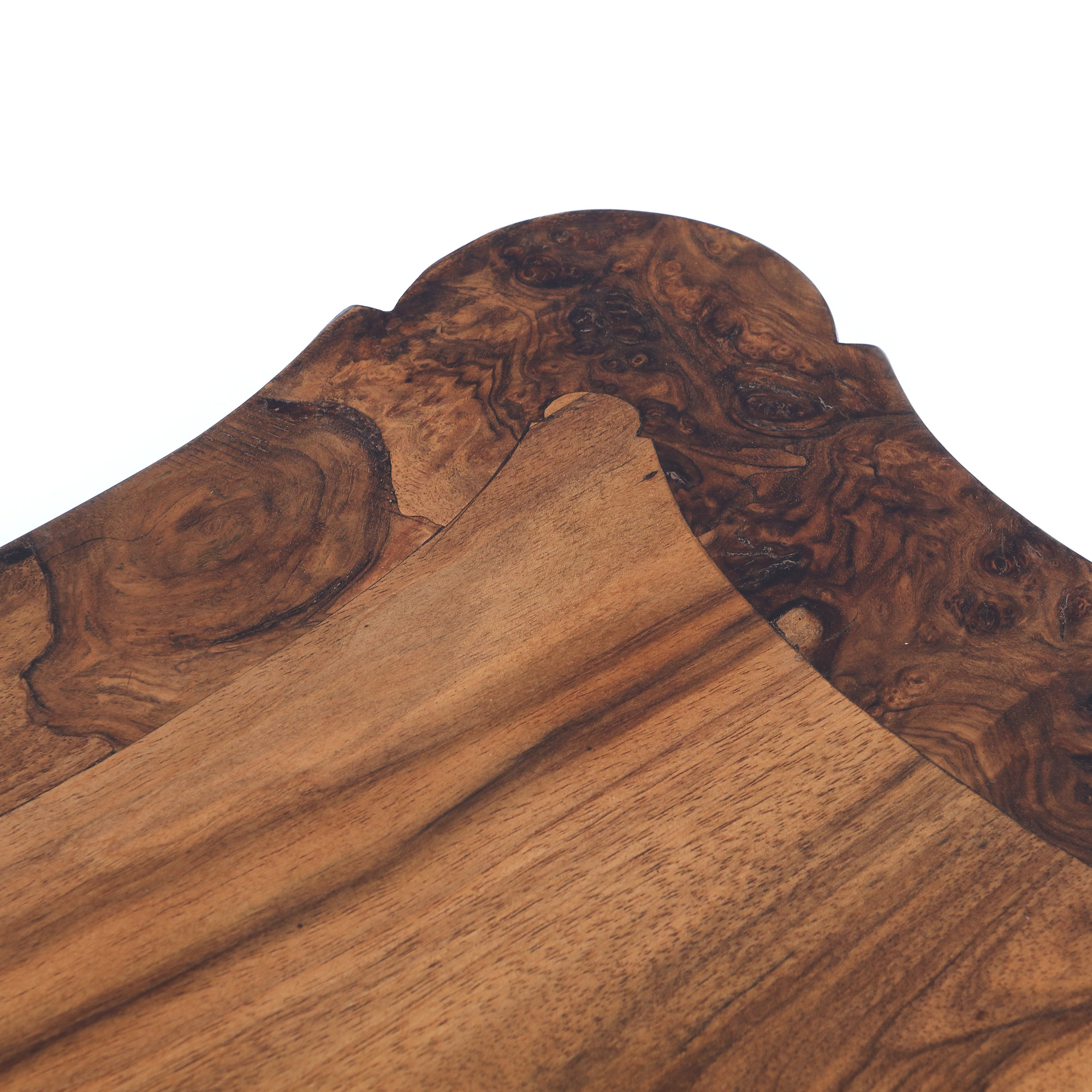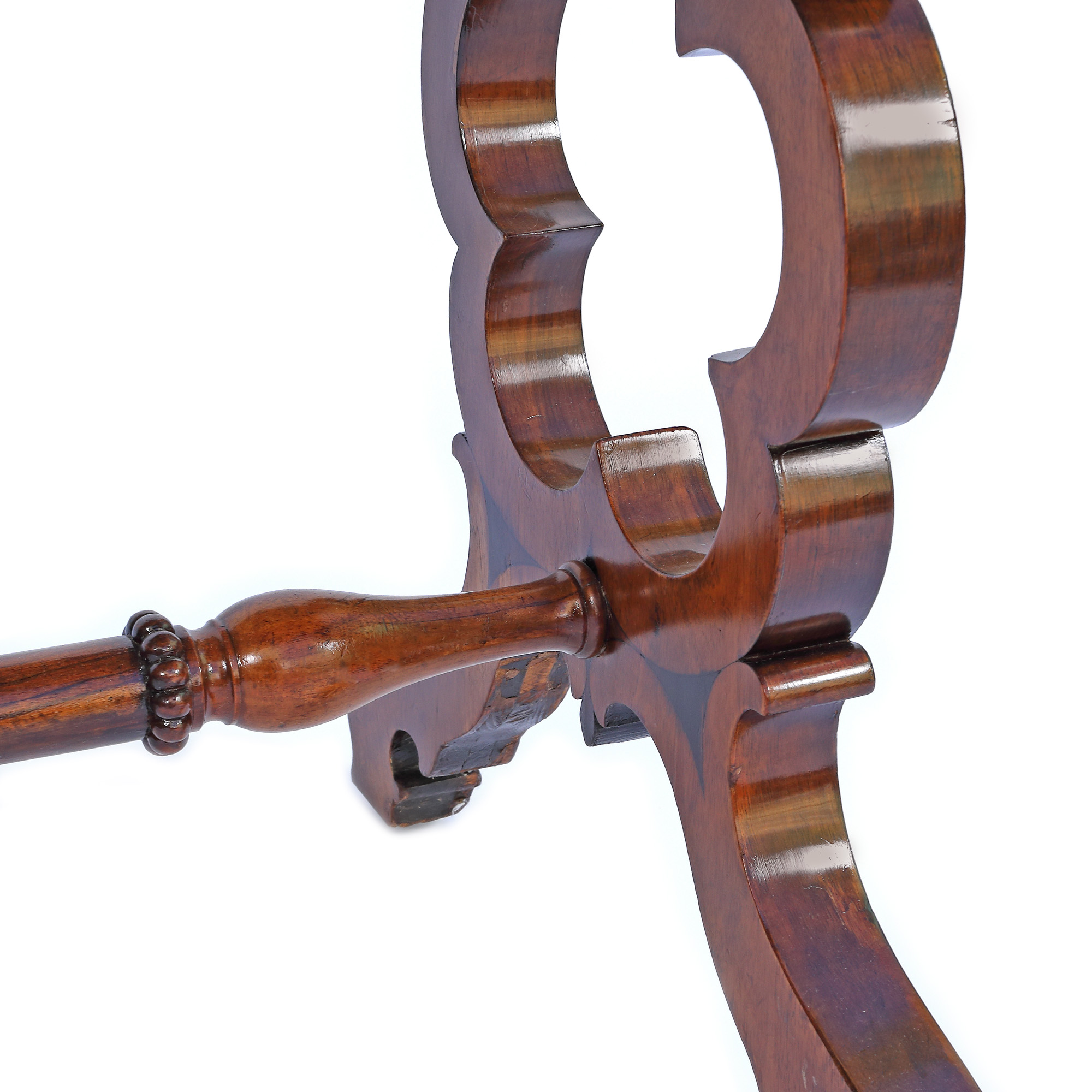 Elegantă masă Biedermeier din lemn de esență moale, decorată cu furnir de nuc și finisaj lustruit. Picioare sculptate cu motive geometrice organice, păstrând idealurile simplității stilului. Masa se află în stare de conservare bună, cu ușoare urme de uzură datorate vechimii. Piesa a fost restaurată, lustruită cu șelac.