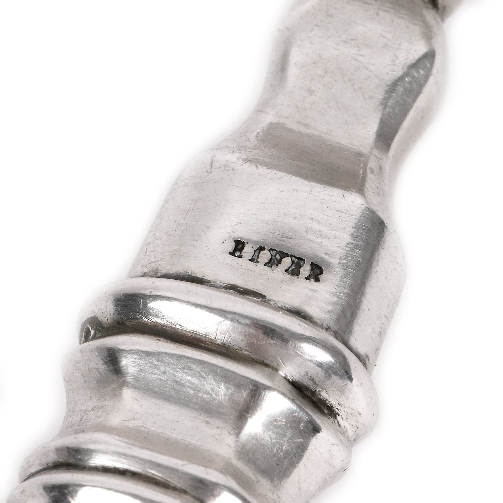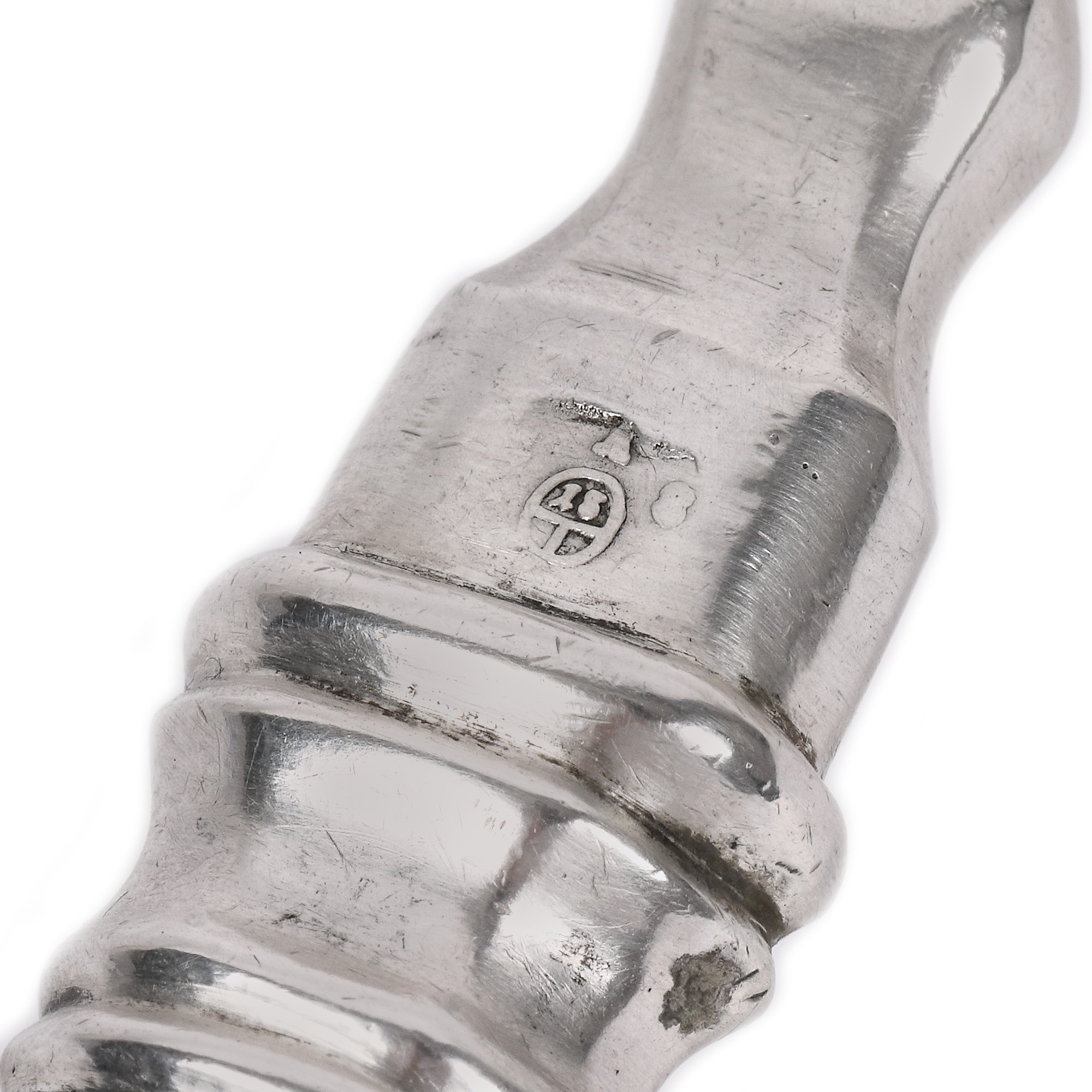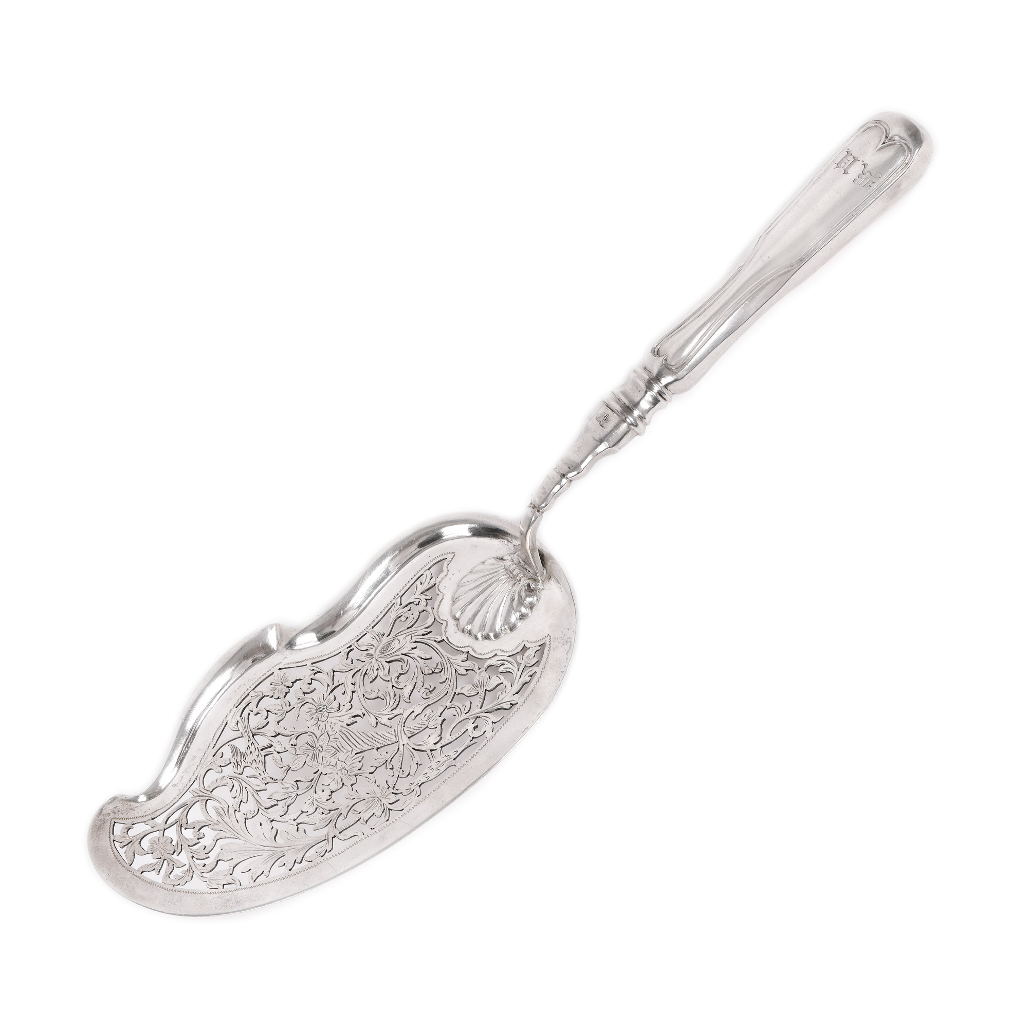 38. Paletă Biedermeier din argint, pentru tort, posibil meșter Josef Reiner, decorată cu model traforat și gravat flori, cornul abundentei și păsari, cca. 1840, provine din colecția Garabet Avachian