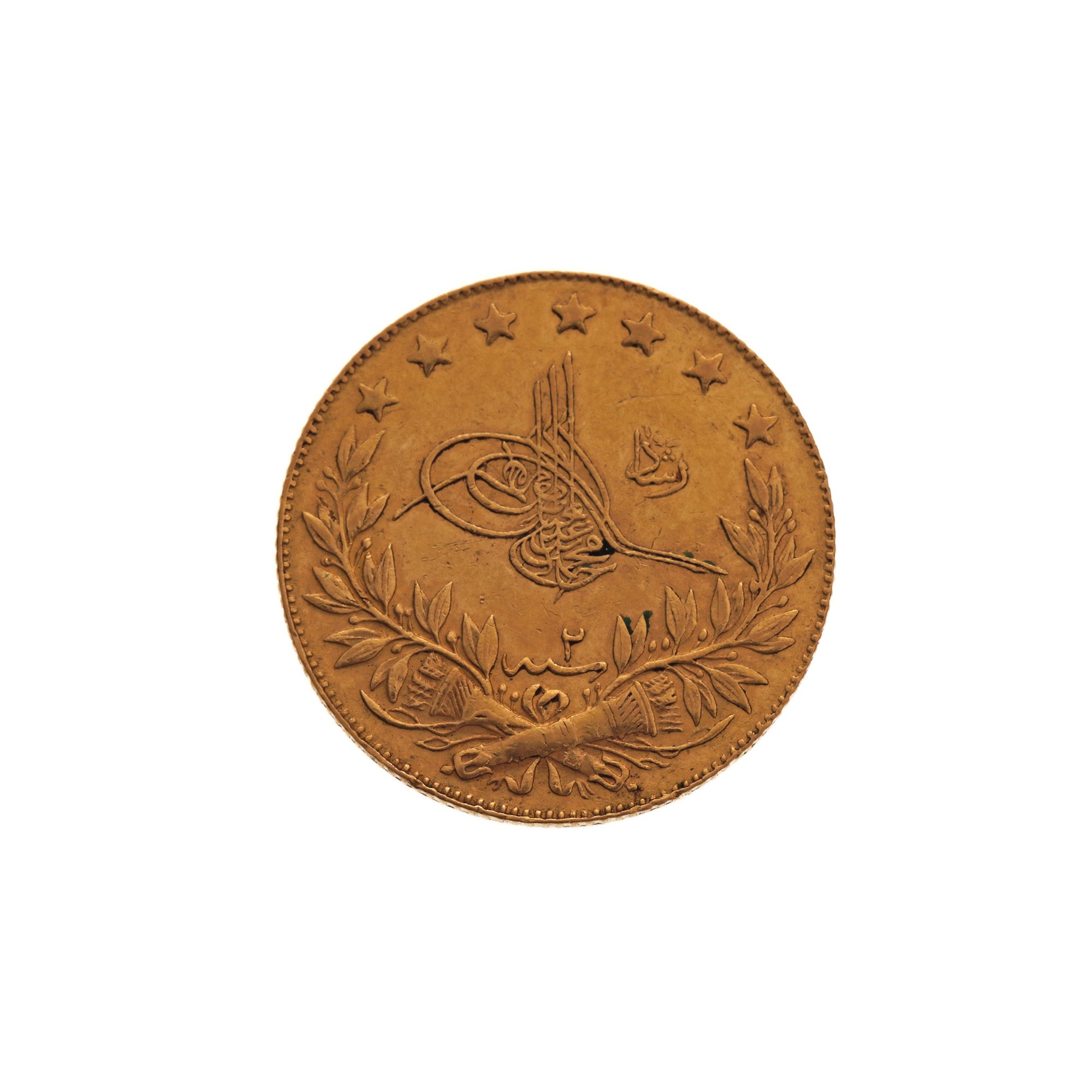 20. Monedă 100 Kuruși, Sultanul Mehmed V, 1327 (1909), aur