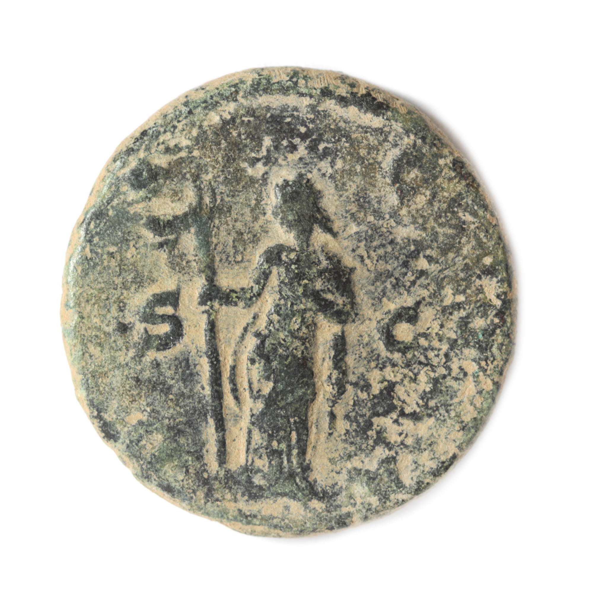 38C. Monedă As, Traian Decius, tip Dacia, emisă în urma victoriilor asupra dacilor liberi pe Dunăre, 249-251 e.n., piesă rară