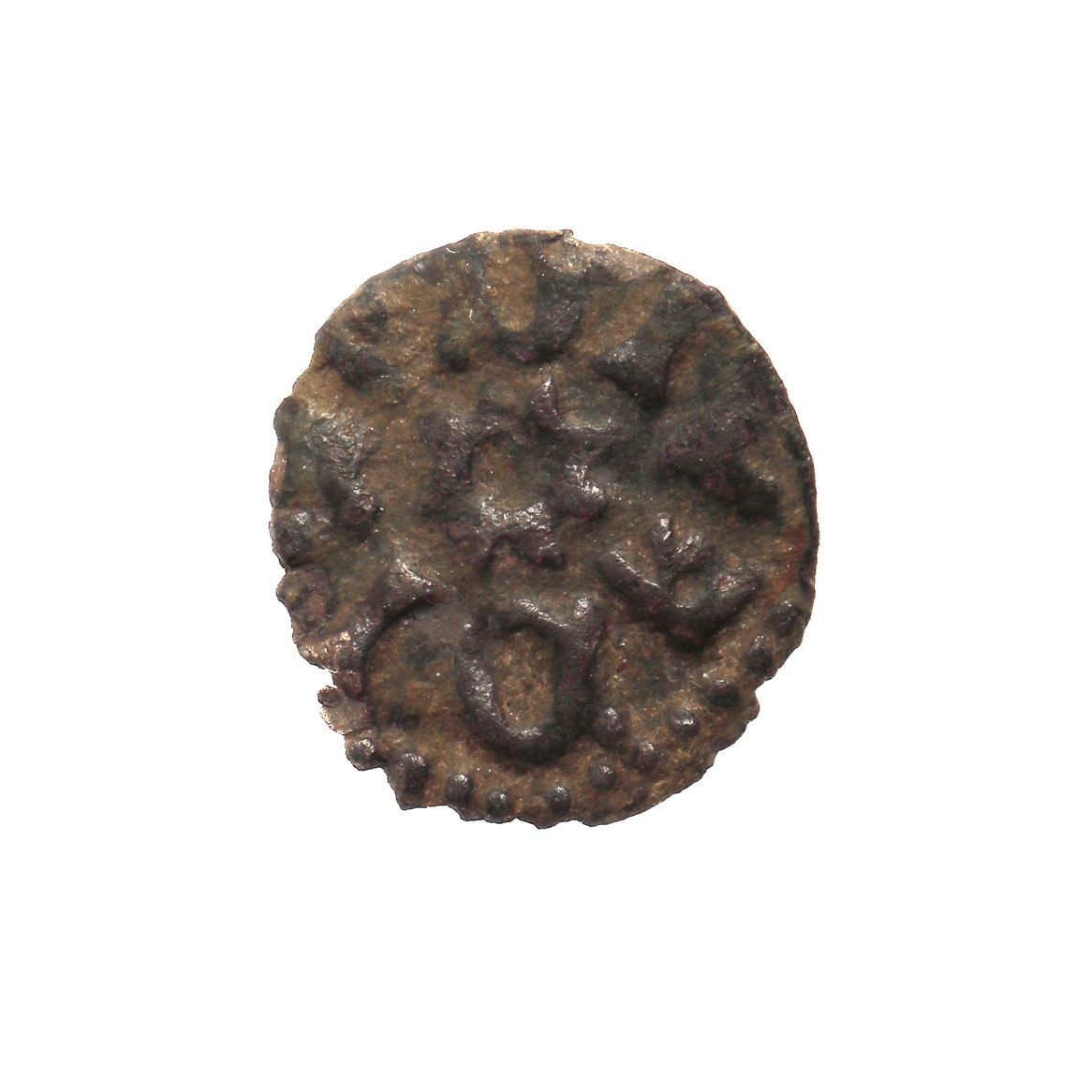 Moneda a fost bătută de Radu I (1377 - 1383), frate al faimosului Vladislav (Vlaicu) (1363 - 1377) şi tată al gloriosului Mircea cel Bătrîn. Acest domn este primul care a dobândit, pentru el şi descendenţii săi, titlul de Mare Voievod (apărând inclusiv pe monede). Ca tipologie, această monedă muntenească este cunoscută în numismatica românească sub numele de ban. Banul muntean era egal cu jumătate de dinar şi corespundea unui obol din sistemului monetar al Regatul Ungar vecin. Piesa din este atipică deoarece dinarii banali bătuţi de către banii Slavoniei erau piese de argint şi piesele bătute după modelul lor ar fi trebuit să fie de asemenea de argint, dar aceasta este din aliajul inferior numit bilon.