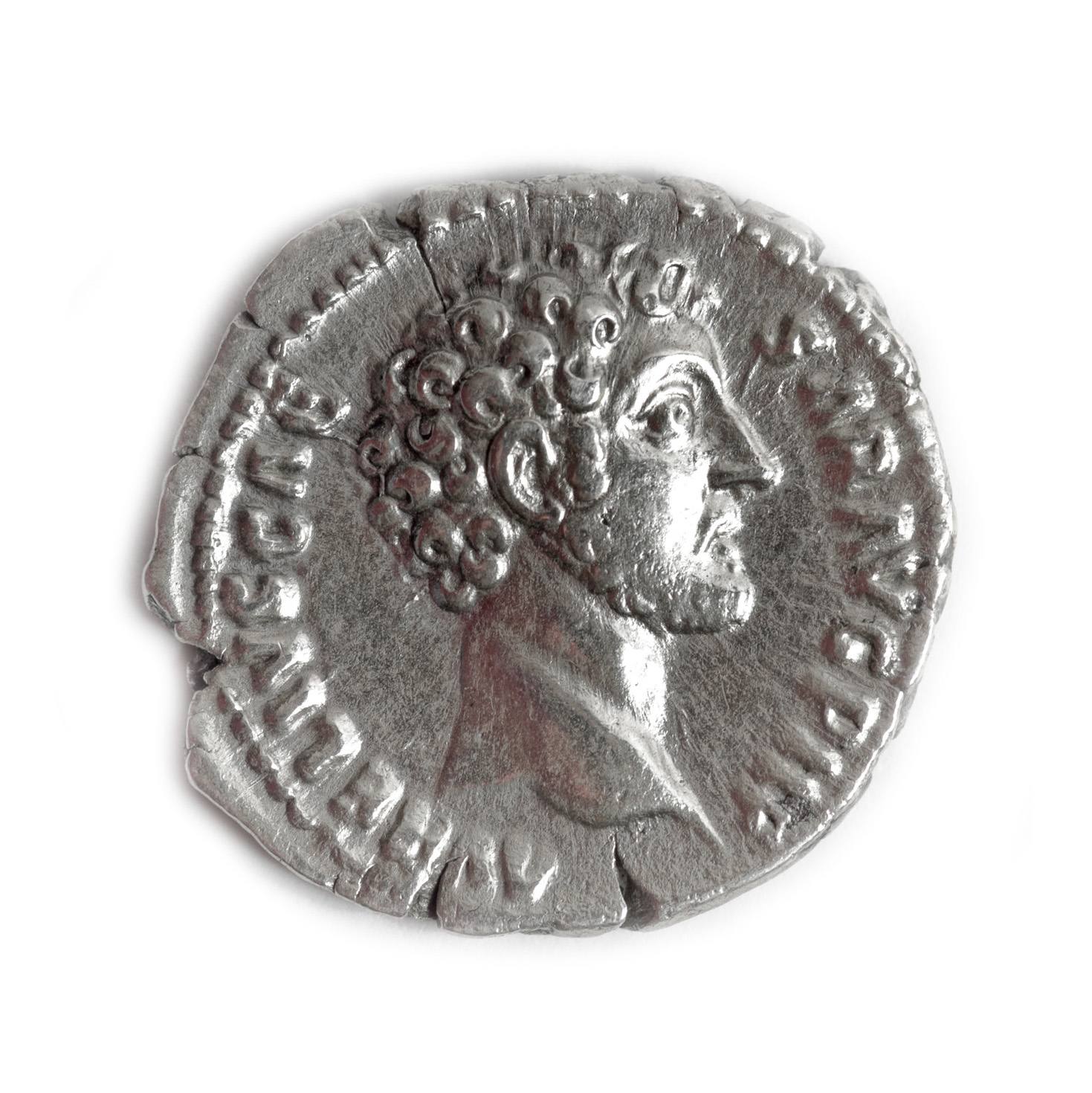 Legendă avers: ”M ANTONINVS AVG PM PARTH MAX” Legendă revers: ”TR P XXII IMP IIII COS III” Ultimul dintre cei ”5 împărați buni”, Marcus Aurelius a fost împăratul filosof (stoic), sub care Imperiul Roman a cunoscut cea mai mare bunăstare și expansiune.