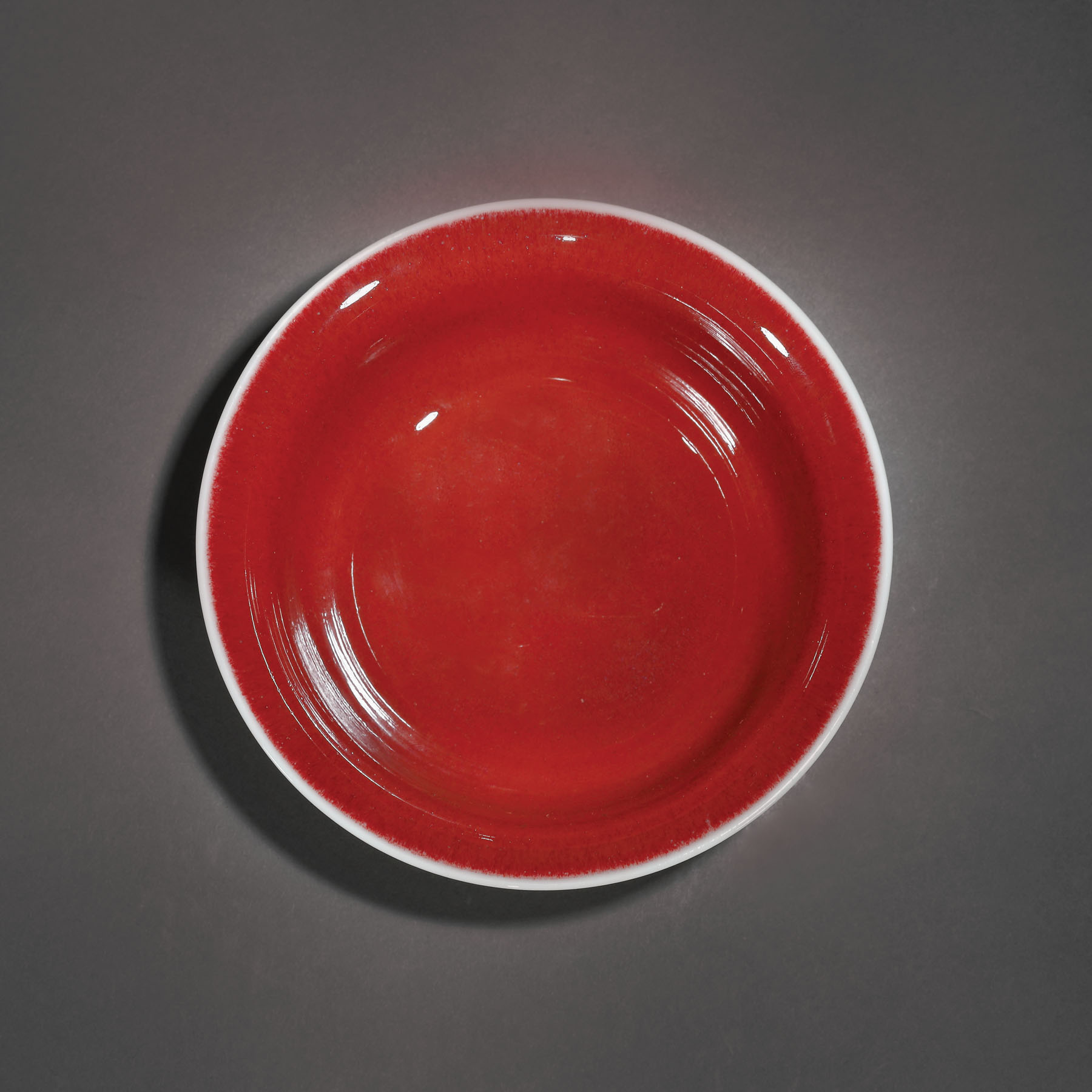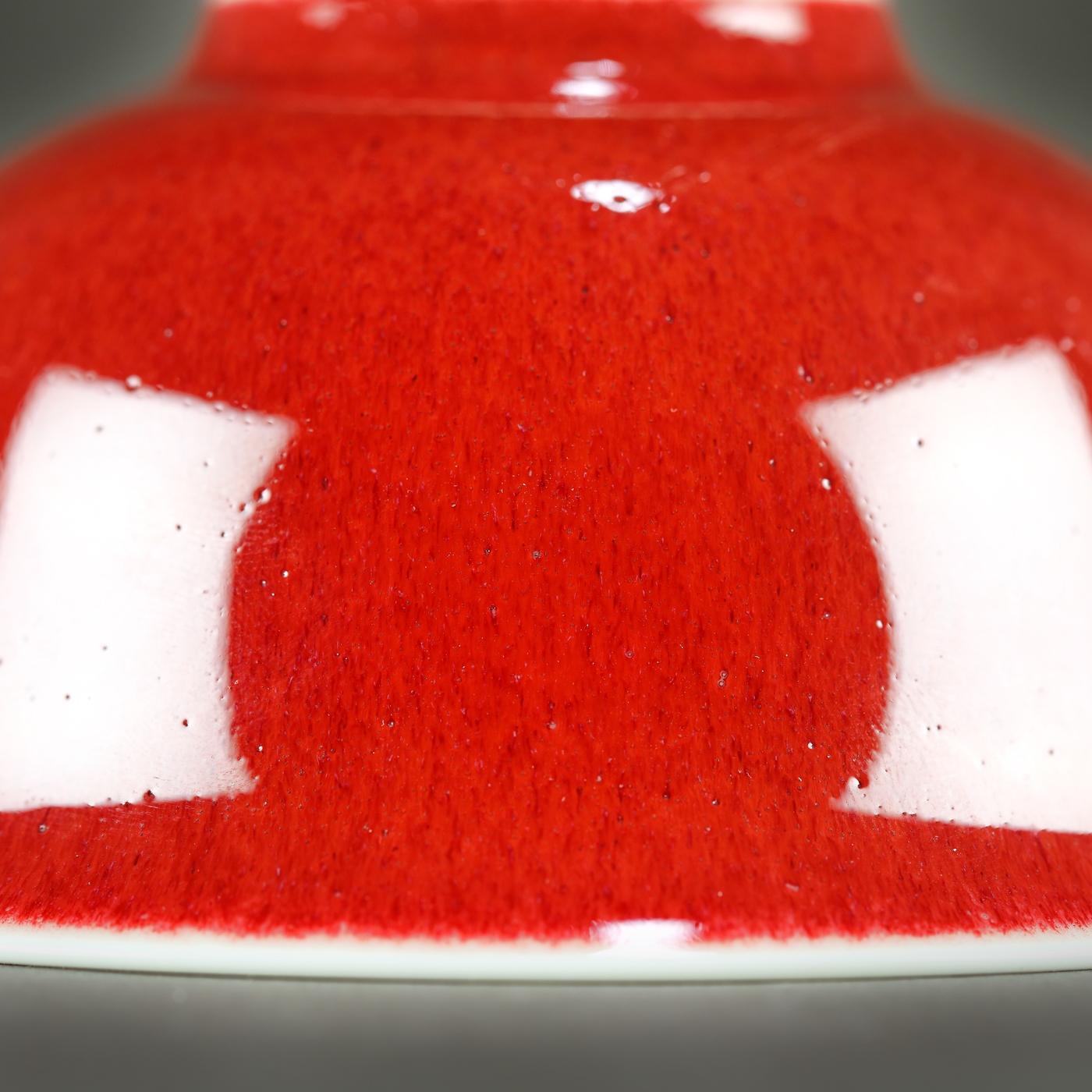Glazurile strălucitoare din cupru au fost de-a lungul istoriei porțelanului chinezesc, oarecum, dintre cele mai căutate și, în același timp, cele mai dificil de realizat. De-a lungul timpului, diferitele glazuri roșii au fost inventate și reinventate - toate cu nume diferite, în ciuda diferențelor superficiale. Ceea ce reunește toate aceste tipuri de glazură sub denominația principală ”langyao” este faptul că acestea conțin cupru. Cele mai vechi exemplare de vase cu glazură roșie apar în cuptoarele din provincia Shaanxi, în timpul dinastiei Tang. Cuptoarele din dinastia Song încep să utilizeze în mod obișnuit acest tip de glazură. Un vas asemănător a fost estimat la Christie’s între $4,000 - $6,000 și s-a adjudecat cu suma de $22,500, în mai 2016.