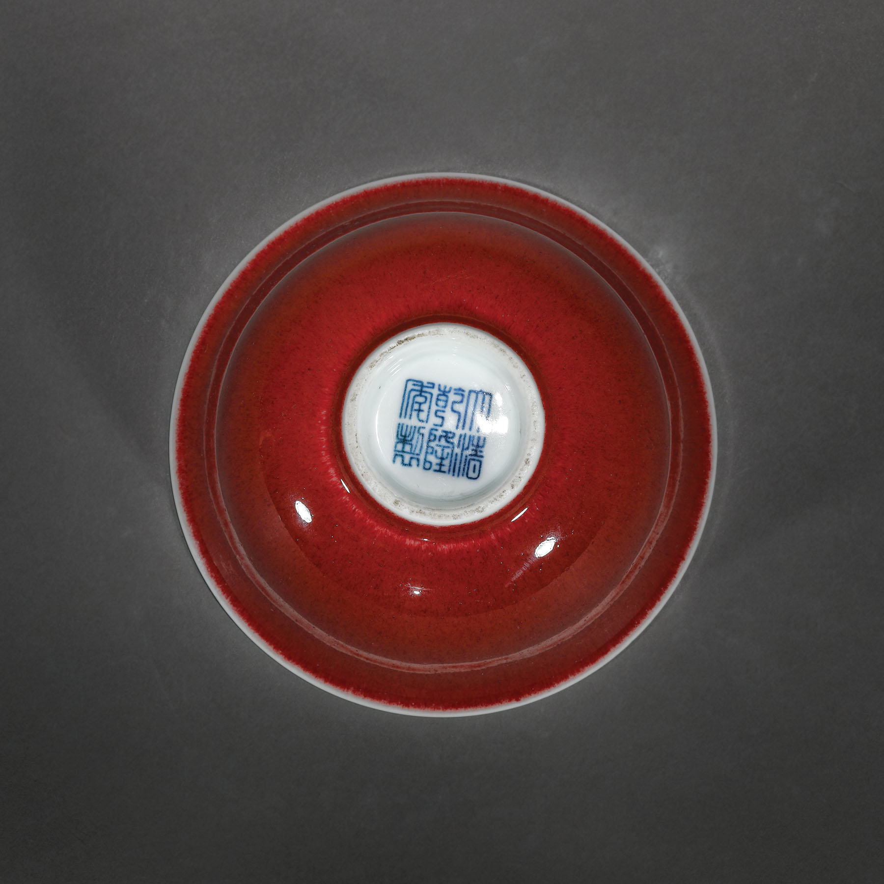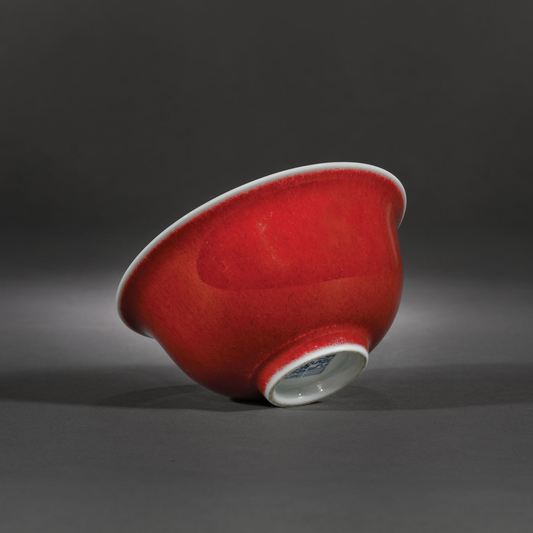 39. Bol din porțelan tip ”langyao”, cu glazură ”copper-red”, marcat Qianlong, perioada Qianlong, China, cca. 1736-1795