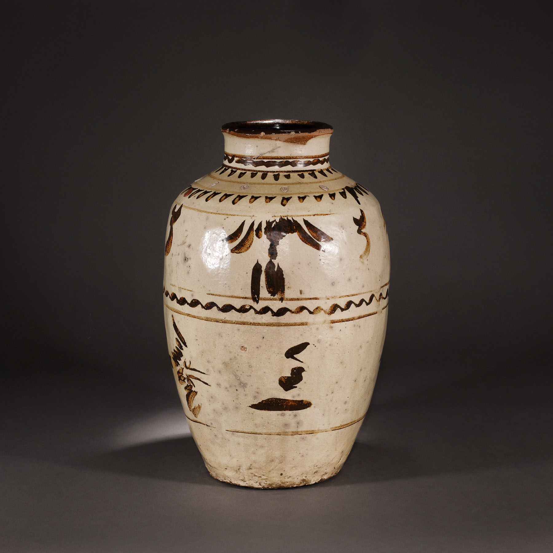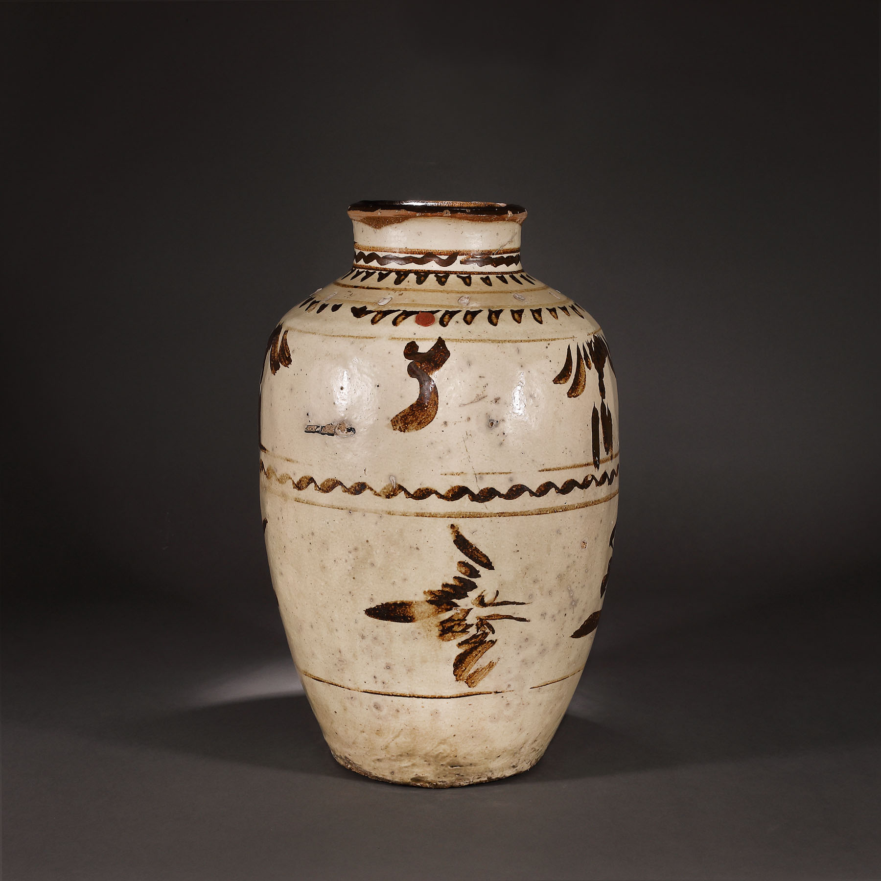 37. Impresionant vas pentru vin, din ceramică glazurată, tip Cizhou, sfârșitul perioadei Yuan, China, mijlocul sec. XIV